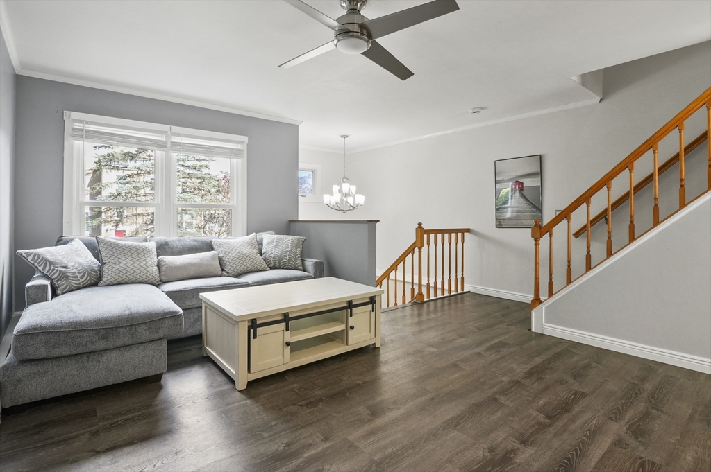Welcome to Moreland Hill! This townhouse offers 3 levels of sun-filled living with a smart and spacious layout. The foyer opens to a large living room with a great accent wall. The large kitchen is light and bright and flows into a beautiful dining area with sliders to a private balcony. There is plenty of storage with an oversized pantry closet. A convenient half bath completes the main level. Upstairs, you’ll find the primary bedroom with direct access to the full bath, plus a second bedroom. The finished lower level features a generous bonus room with walk out, a separate laundry room and direct entry to the attached garage. With additional driveway parking, this home combines comfort, convenience, and space in a great Worcester location.