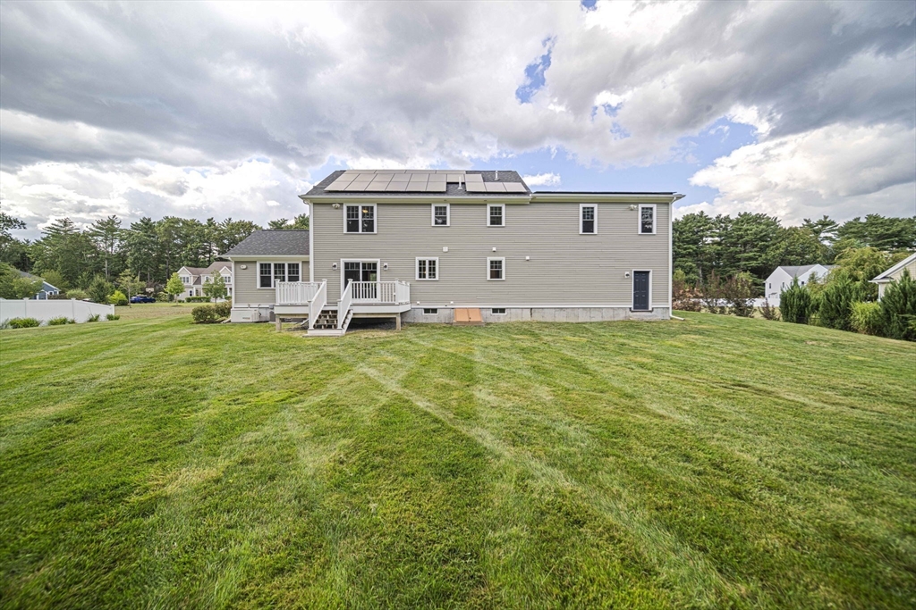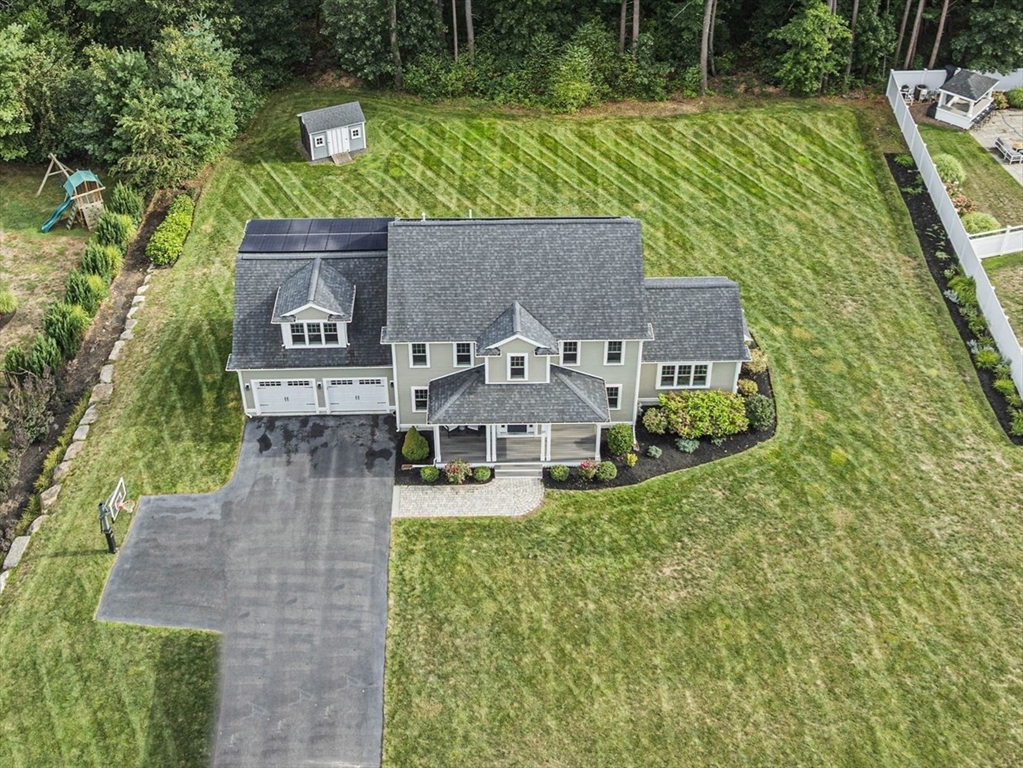 Welcome to 10 Wood Hollow Way, a stunning young colonial built in 2018 on a quiet Hanover cul-de-sac of newer homes. This 9-room, 4-bed, 2.5-bath home offers an ideal floor plan for live / work /play! The 1st flr is filled w sun & a large open kitchen w/ an island, gas cooking, & a dining area overlooking the huge backyard. The family room with/ gas fireplace is perfect for gathering everyone together. Additionally, dining, home office, & laundry. Upstairs, the primary has his & hers closets & an ensuite w/ tiled shower & double vanity. 3 additional spacious bedrooms & a full bath w/ double vanity complete the 2nd floor. The basement is finished w/ the Owens Corning system and offers an amazing, flexible living space w/ pool table included. Seller-owned solar panels mean almost no electric bills! Natural gas heat, modern design, and a prime cul-de-sac location make this move-in-ready home a rare find in Hanover. Bonus: Generac generator, irrigation, paid solar, Hardi siding, composite.