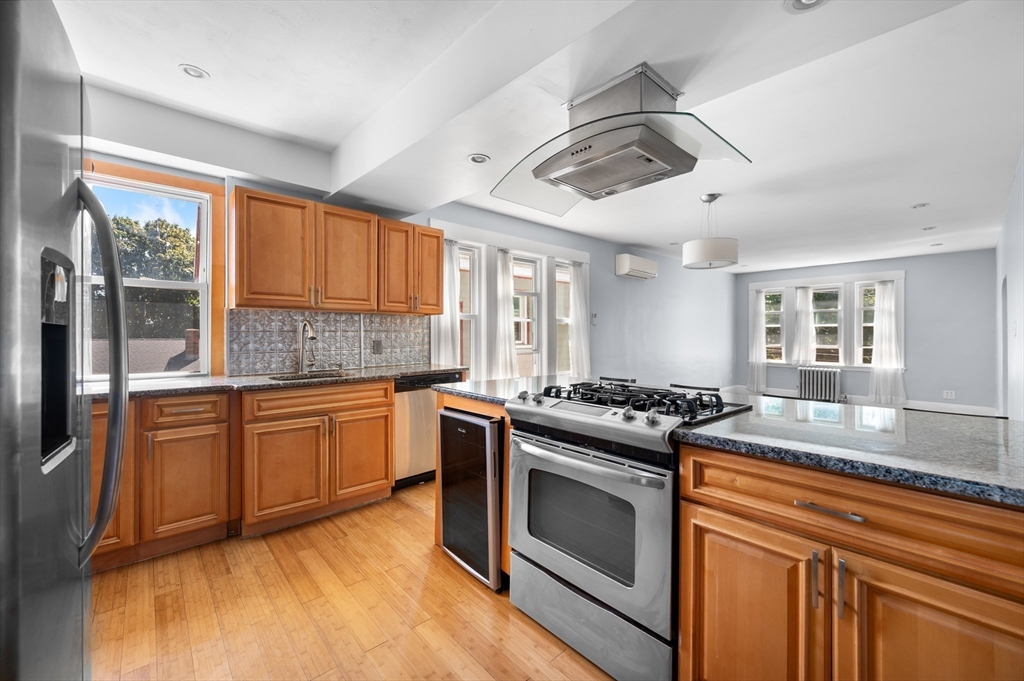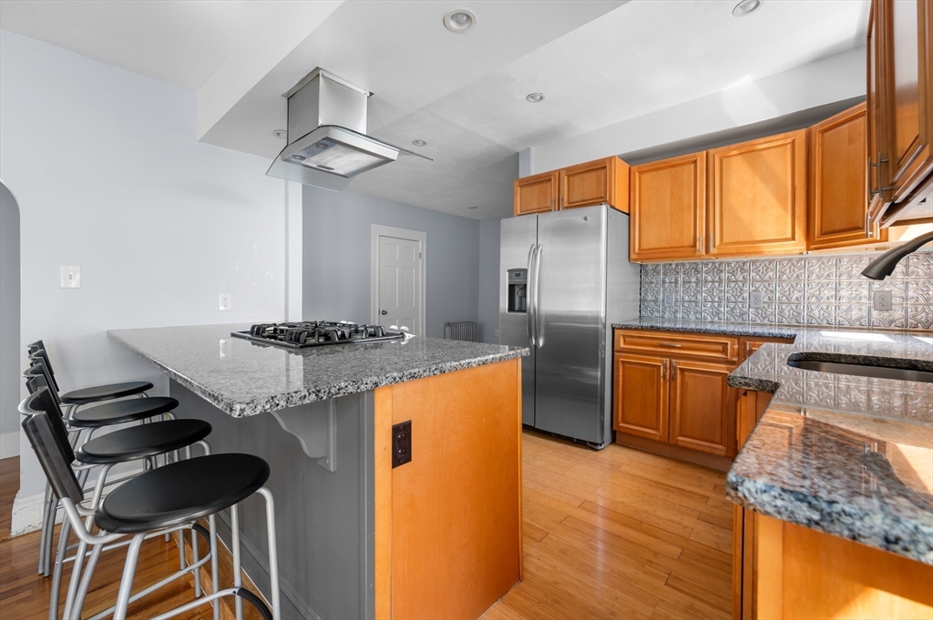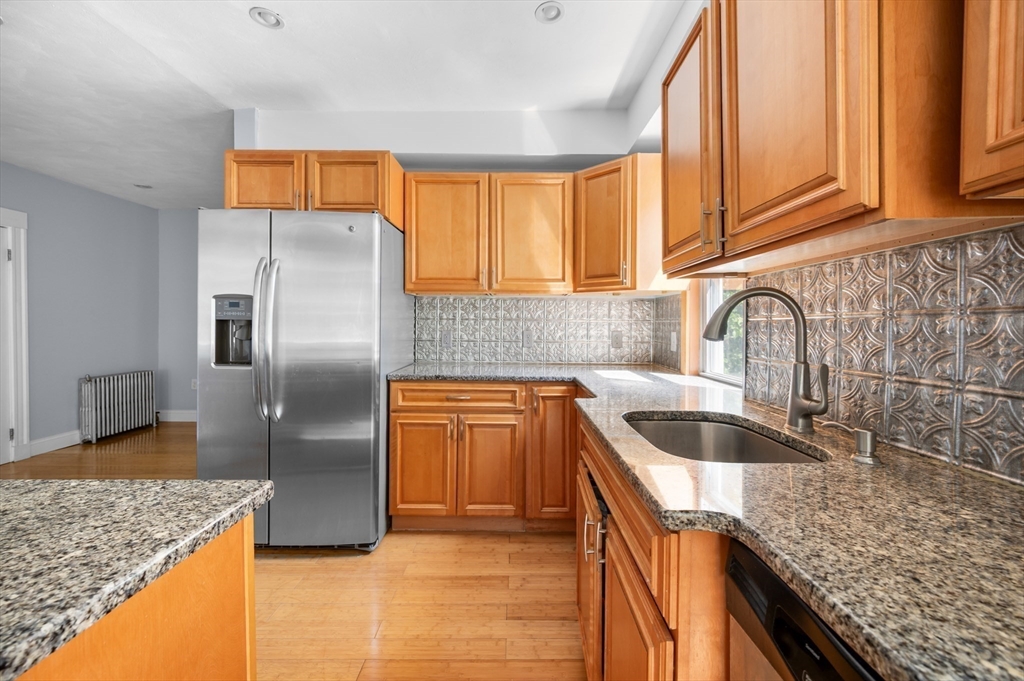 Welcome to this beautifully updated top-floor condo offering nearly 1,400 sq. ft. of bright and open living space in one of Chelsea’s most convenient locations. Step inside and enjoy the open-concept kitchen, dining, and living area, designed for today’s lifestyle and perfect for entertaining. The modern kitchen features granite countertops, custom cabinetry, a gas cooktop, wine cooler, and recessed lighting for a sleek, contemporary feel. This home boasts four generously sized bedrooms and a spacious living room with high ceilings and hardwood floors throughout, creating a warm and inviting atmosphere. Oversized windows flood the space with natural light,. Additional highlights include in-unit laundry hookups, two deeded parking spaces, a recently painted interior, newer roof, and hot water tank making this property move-in ready. Enjoy a decent-sized backyard perfect for entertaining or relaxing outdoors. Located just minutes from Downtown Boston, Logan Airport, and major highways.