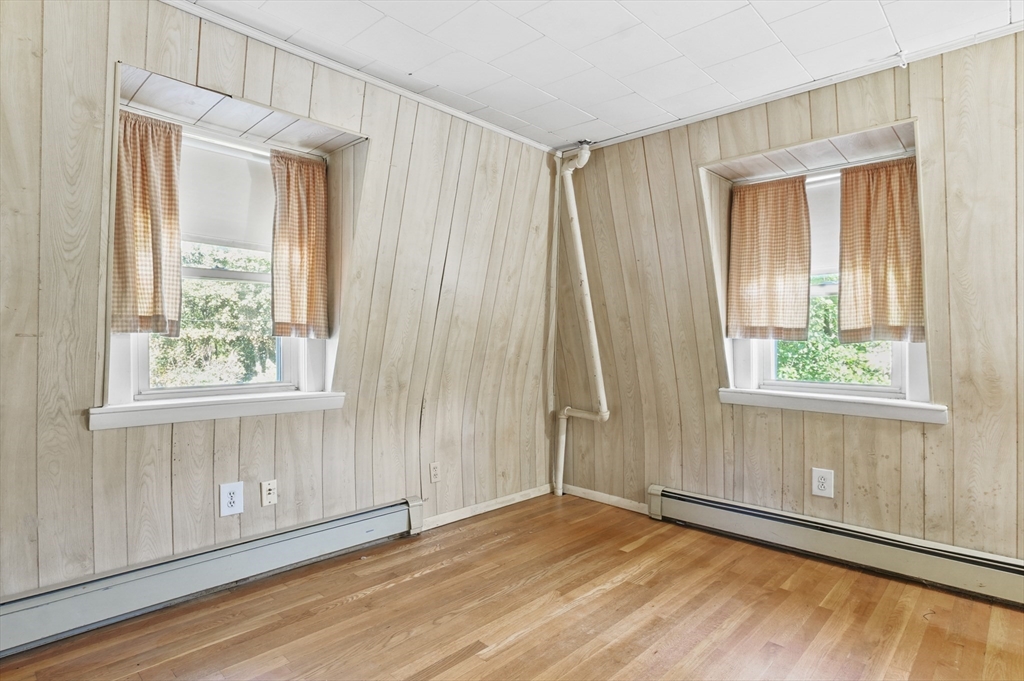 Charming Colonial in Woburn! Step inside this beautifully renovated home and fall in love with its blend of character and modern updates! This 3-bedroom (potential 4), 2 bath gem welcomes you with an enclosed front porch - the perfect spot for morning coffee or winding down at the end of the day. Inside, you’ll find gorgeous high ceilings and sun-drenched spaces throughout. The kitchen offers ample cabinet space, a gas range, and a cozy eat-in area, while the formal dining room is made for gatherings (or convert back to 4th BR) The bright and airy living room, highlighted by a bay window, makes the perfect entertaining space. A half bath completes the first level. Upstairs, discover three spacious bedrooms with hardwood floors and generous closets, plus a full bath with a tub/shower and linen closet. The lower level offers laundry and extra storage. Outside, enjoy a corner lot with the convenience of a carport. This adorable home is just minutes to shops, restaurants, and major routes