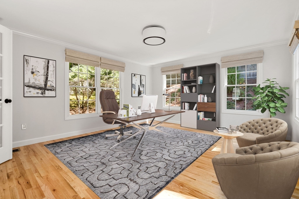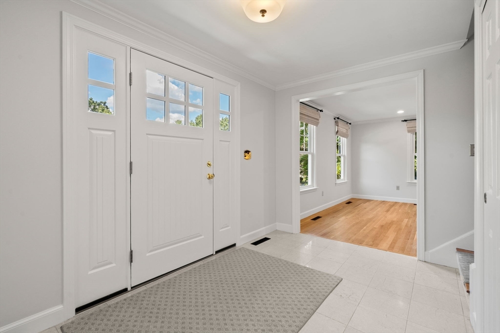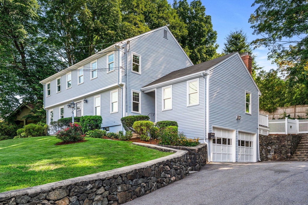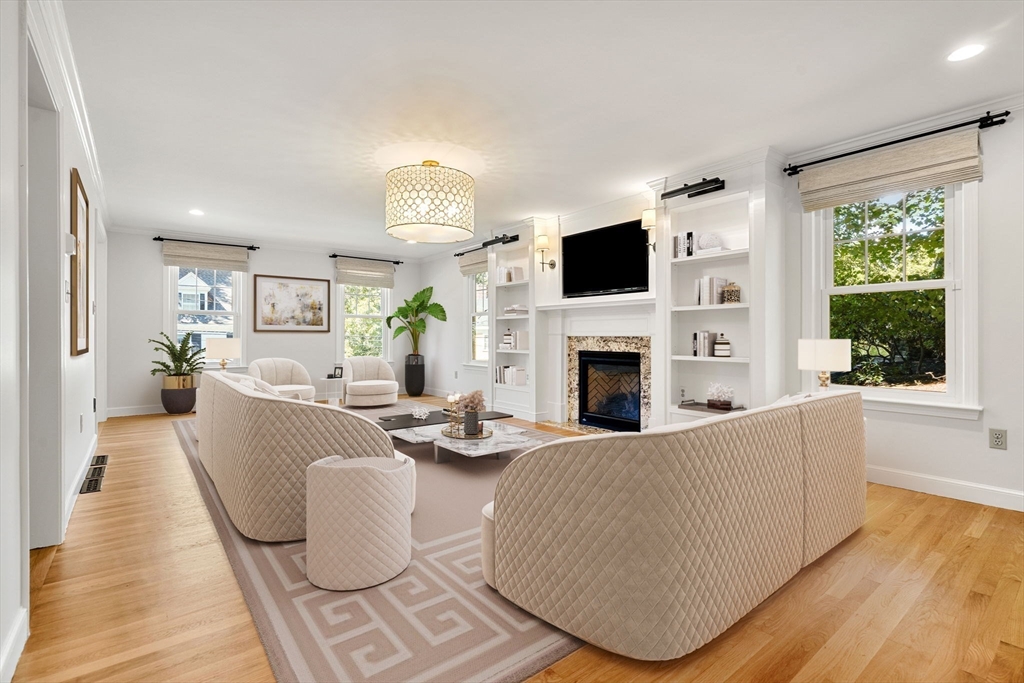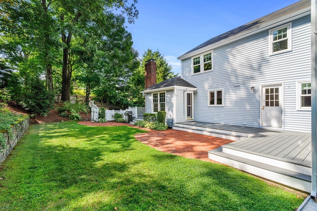 Just steps from Lexington Center, this beautifully updated Colonial blends timeless charm with modern comfort. The sun-filled living room features custom built-ins and a gas fireplace, while French doors open to a spacious study with private access to a fenced yard, Beacon Hill–style brick patio, and deck—your own garden retreat. The eat-in kitchen flows seamlessly to a vaulted, fireplaced family room and formal dining room, ideal for everyday living and entertaining. Upstairs, the serene primary suite offers a reading nook, walk-in closet, and marble bath, joined by three additional bedrooms. The lower level includes a fifth bedroom, full bath, and exercise room, plus direct entry to a two-car garage with EV charger. Fresh paint, gleaming hardwoods, and a sought-after Merriam Hill location make this home the best of Lexington living.