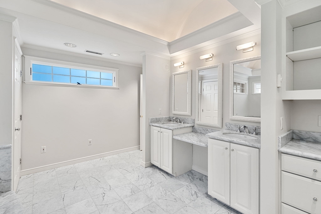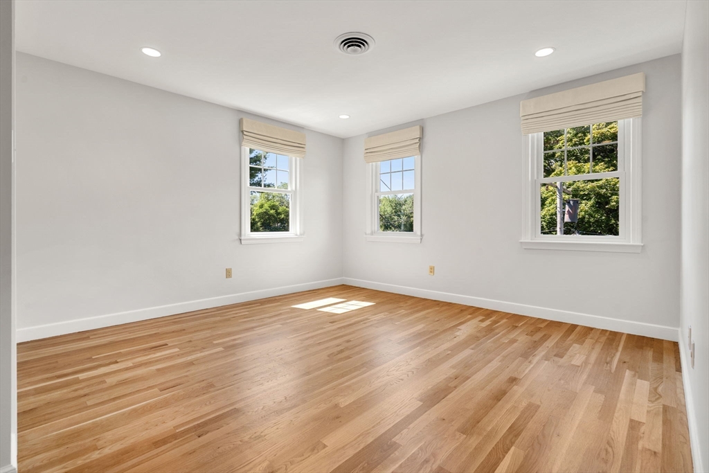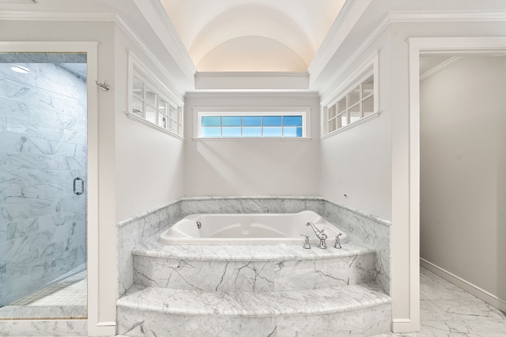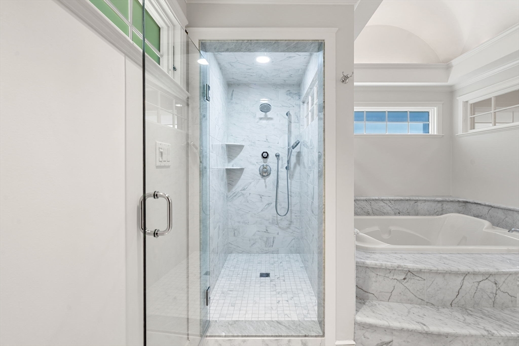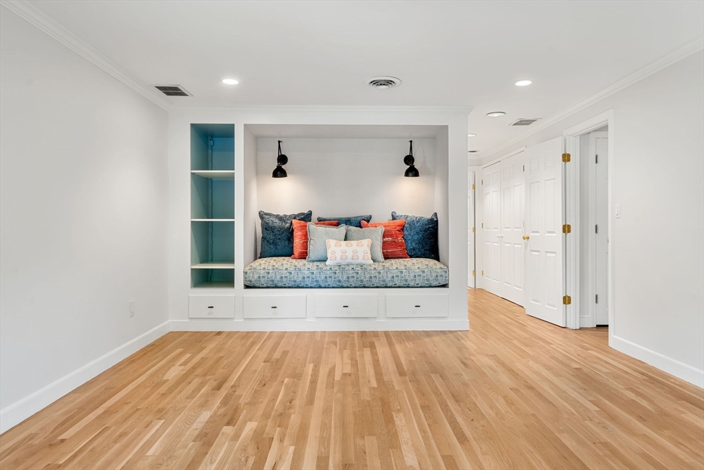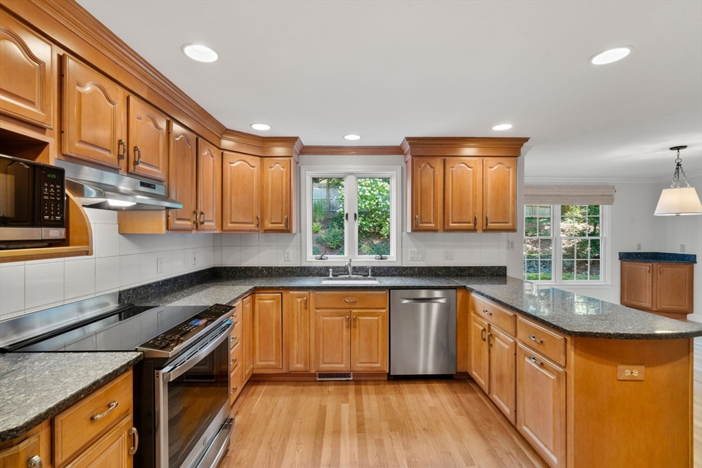 Just steps from Lexington Center, this beautifully updated Colonial blends timeless charm with modern comfort. The sun-filled living room features custom built-ins and a gas fireplace, while French doors open to a spacious study with private access to a fenced yard, Beacon Hill–style brick patio, and deck—your own garden retreat. The eat-in kitchen flows seamlessly to a vaulted, fireplaced family room and formal dining room, ideal for everyday living and entertaining. Upstairs, the serene primary suite offers a reading nook, walk-in closet, and marble bath, joined by three additional bedrooms. The lower level includes a fifth bedroom, full bath, and exercise room, plus direct entry to a two-car garage with EV charger. Fresh paint, gleaming hardwoods, and a sought-after Merriam Hill location make this home the best of Lexington living.
