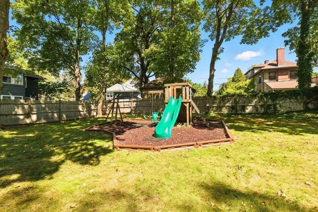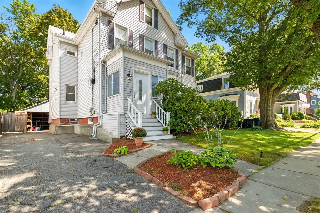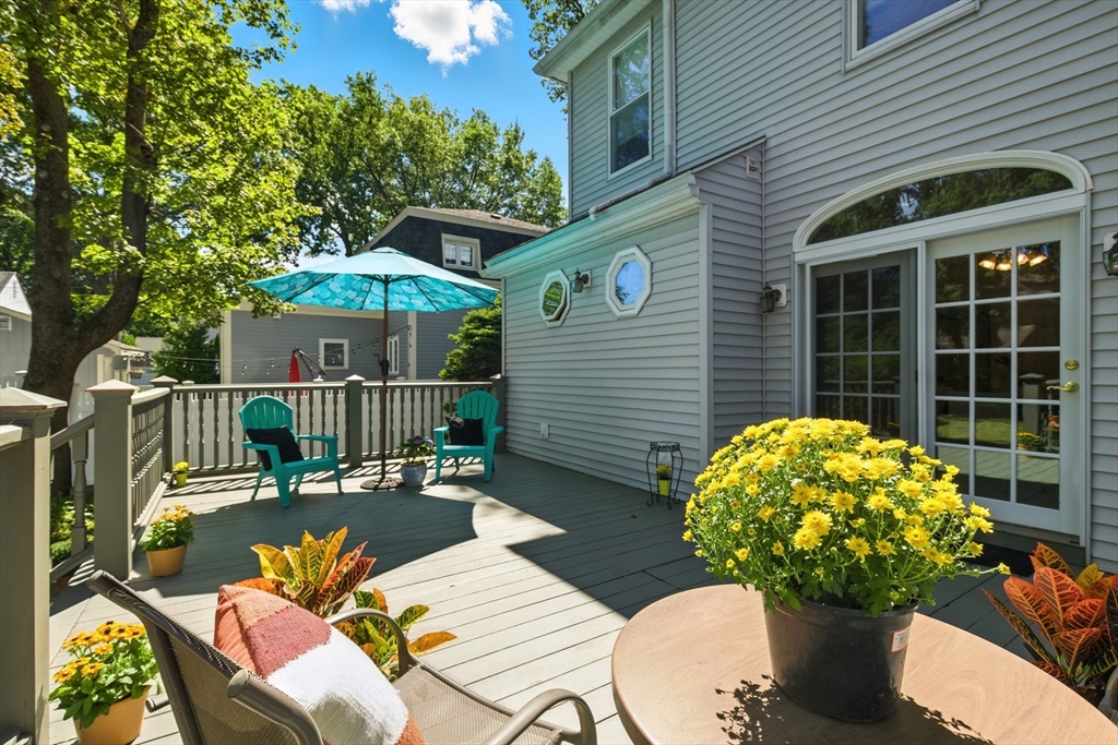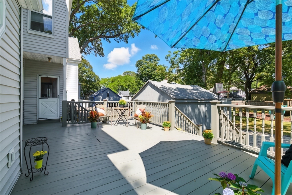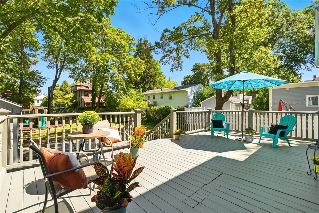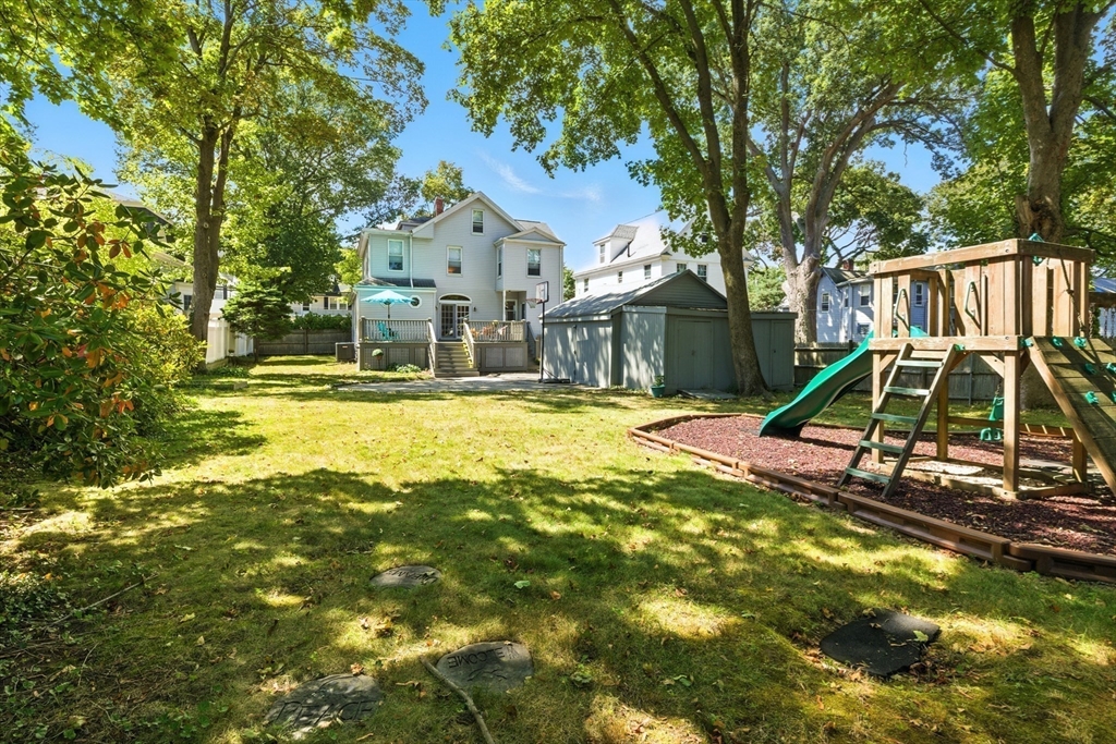 Bellevue Hill Classic Colonial, sophisticated, airy, bright, and spacious: hello entrance foyer! Greeted by a pretty staircase, elegantly updated kitchen, living, dining - first floor bedroom or office with a full bath. Sprawling deck invites a large flat fenced in backyard oasis. Second level boasts 3 nicely sized bedrooms, a walk in closet in addition to a double door large main bed closet. Freshly updated full second bath. Third floor bonus - finished attic, bright, and open to your creativity. Partially finished basement houses your washer/dryer with room for a cozy home gym. All systems clean, updated, easily visible. Dates attached with feature sheet. Central AC and a sprinkler system add true quality value. Oversized detached garage with electric has potential as a future bunkhouse or studio space. Centrally located - easy access to the commuter rail/bus line - Centre St coffee, restaurant, grocery, YMCA, hospitals, parks and green space. Come see for yourself!