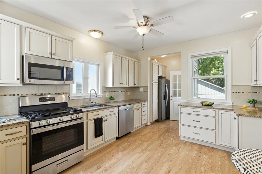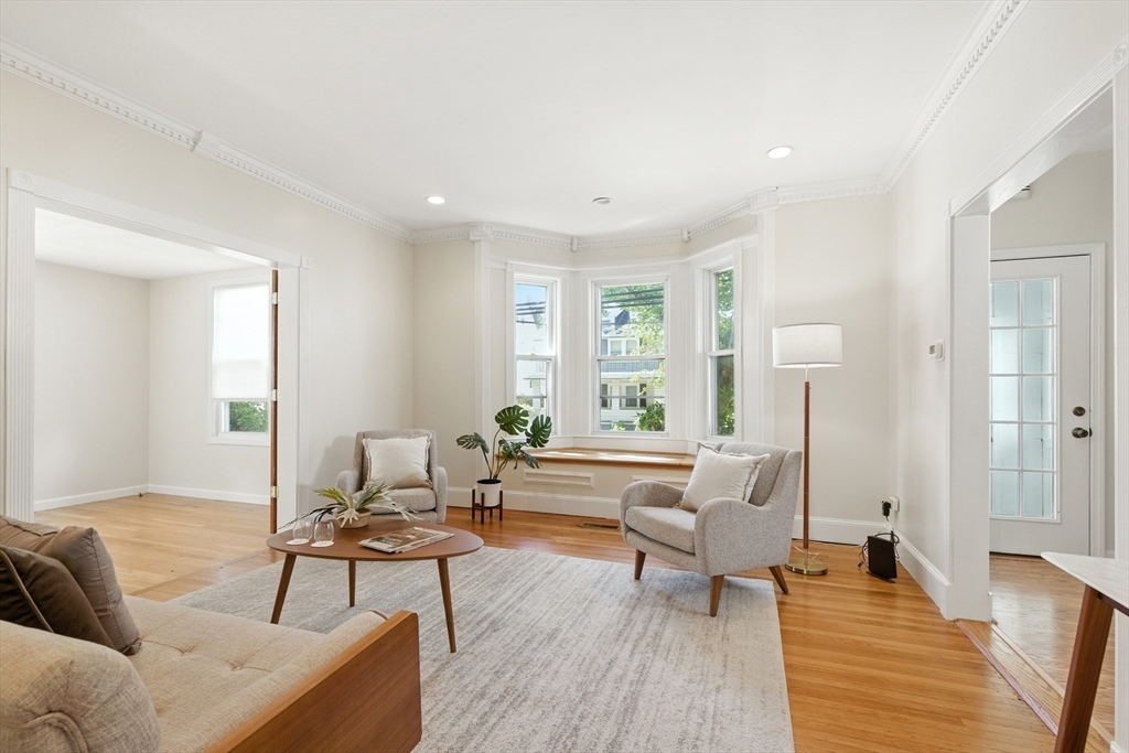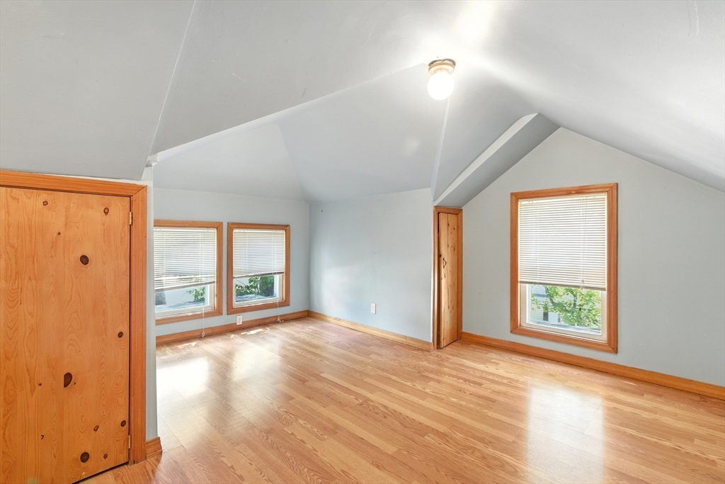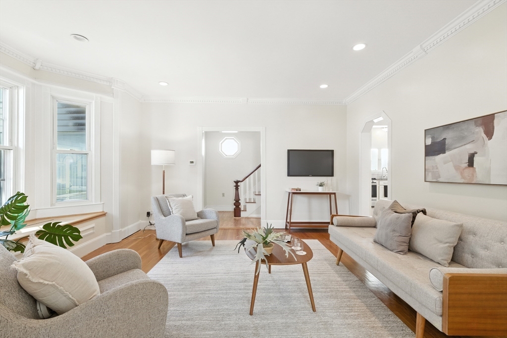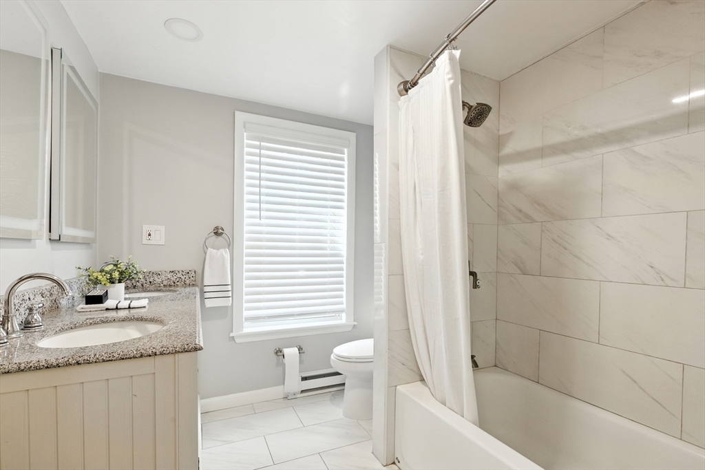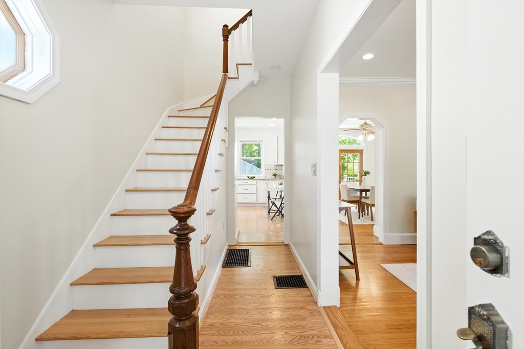 Bellevue Hill Classic Colonial, sophisticated, airy, bright, and spacious: hello entrance foyer! Greeted by a pretty staircase, elegantly updated kitchen, living, dining - first floor bedroom or office with a full bath. Sprawling deck invites a large flat fenced in backyard oasis. Second level boasts 3 nicely sized bedrooms, a walk in closet in addition to a double door large main bed closet. Freshly updated full second bath. Third floor bonus - finished attic, bright, and open to your creativity. Partially finished basement houses your washer/dryer with room for a cozy home gym. All systems clean, updated, easily visible. Dates attached with feature sheet. Central AC and a sprinkler system add true quality value. Oversized detached garage with electric has potential as a future bunkhouse or studio space. Centrally located - easy access to the commuter rail/bus line - Centre St coffee, restaurant, grocery, YMCA, hospitals, parks and green space. Come see for yourself!