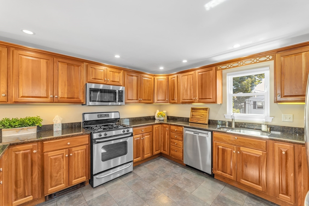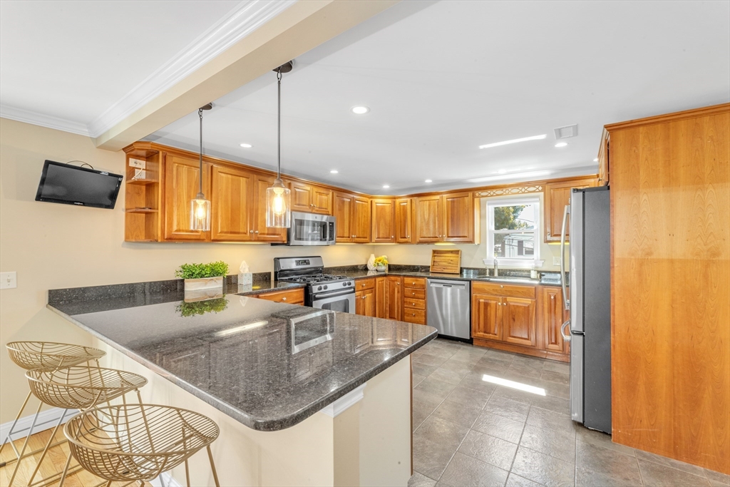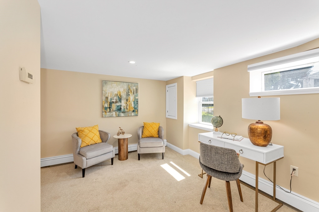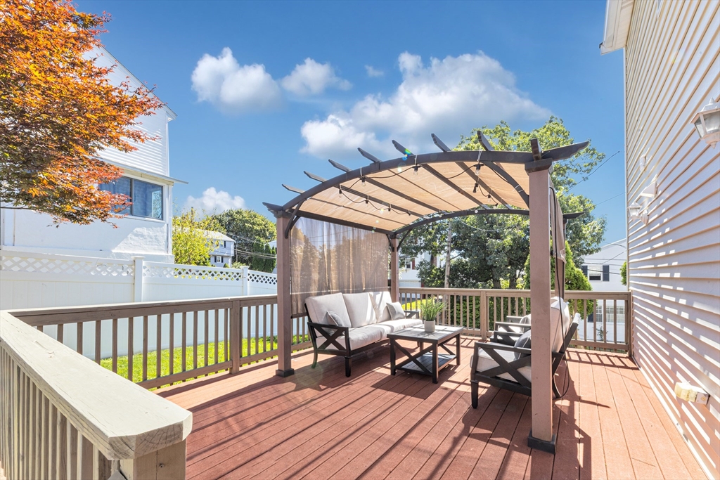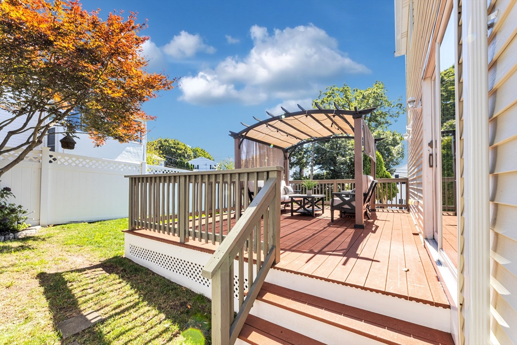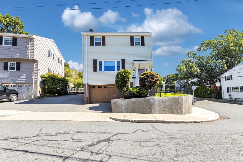 Welcome to 83 Cowing Street, You need to come inside to fully appreciate this beautifully maintained Colonial on a corner lot.. This immaculate home features four spacious bedrooms and 2.5 bathrooms.Inside you discover that the bright living room, complete with a fireplace, provides a warm and inviting space. A large open-plan kitchen and dining area that's great for entertaining. The finished basement offers a versatile space that can be used as an office or an additional bedroom, complete with a full bath. Set up high, its outdoor space features a deck and pergola, making it an extended entertaining area. With a 1-car garage under and a fabulous storage shed, you'll have plenty of space for all your storage needs. Solar panels, no large electric bill. Minutes to the commuter rail station or MBTA bus, local shops, restaurants, coffee shops, Stoney Brook Reservation, Millennium Park, & downtown Boston.