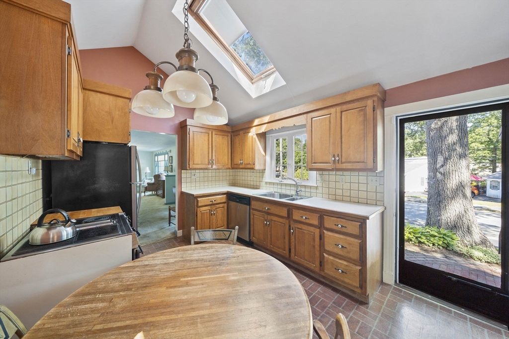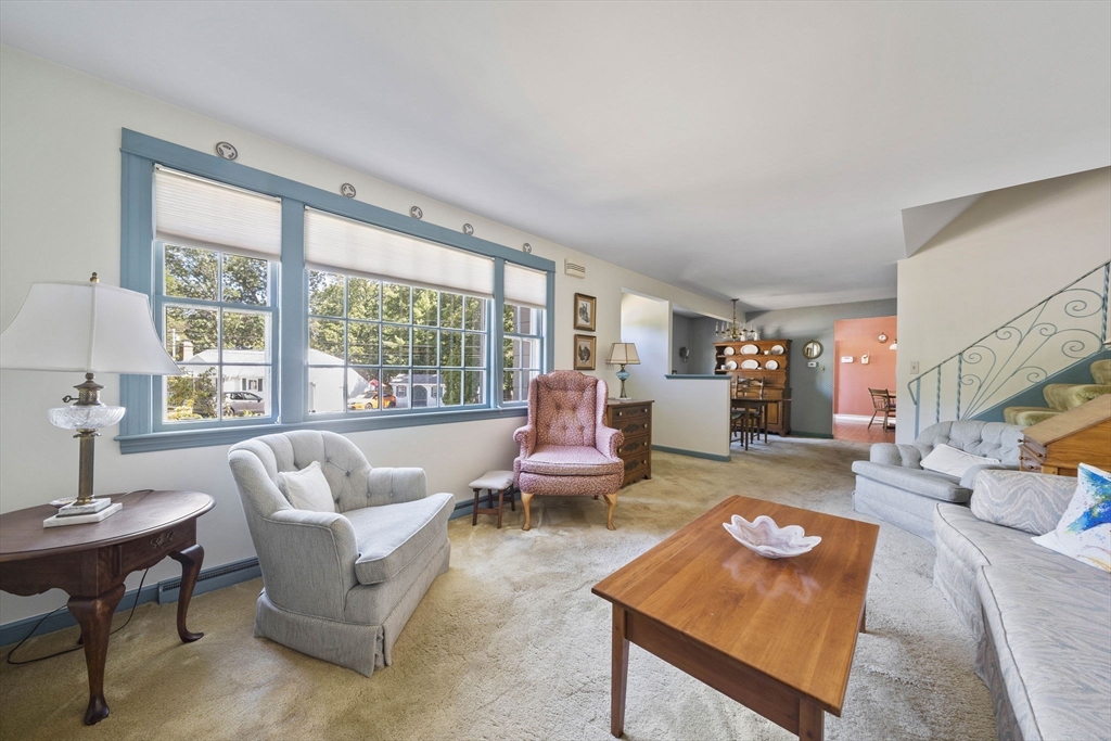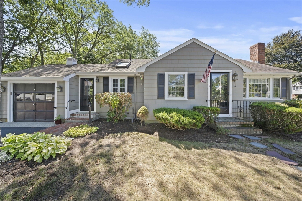 Welcome to this absolutely delightful 3-bedroom,1.5-bath home, ideally situated on a spacious corner lot in a highly desirable neighborhood in South Weymouth.Step inside to find a sun-filled living room featuring oversized windows and a cozy fireplace, perfect for relaxing or entertaining.The eat-in kitchen is bright and inviting, with skylights that flood the space with natural light. Upstairs, you'll find three comfortable bedrooms with beautiful hardwood floors, offering warmth and character throughout. The large finished basement provides additional living space, ideal for a family room, home office, or playroom. Central A/C with newer unit and Brand New Furnace. Enjoy outdoor living on the brick patio in a private yard, and take advantage of the convenience of a one-car garage! A commuter's delight just minutes from public transportation, highway access, and major routes. Enjoy shopping and dining at Derby Shoppes which is also just around the corner!