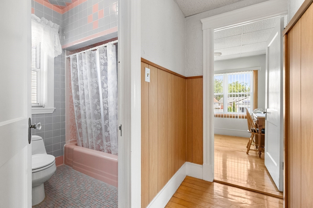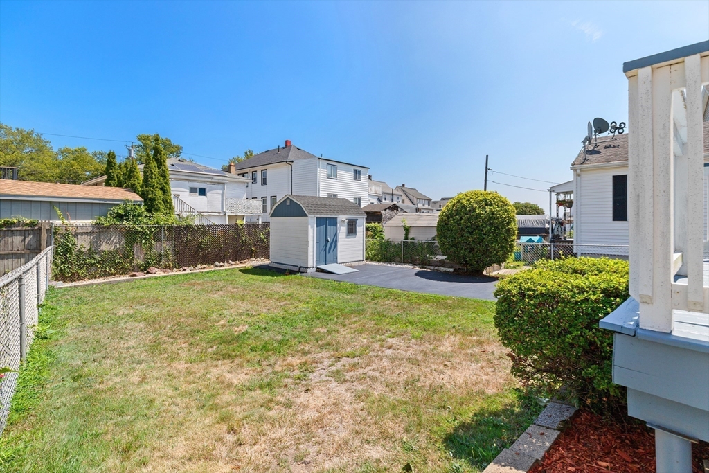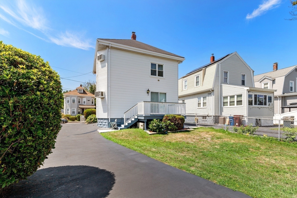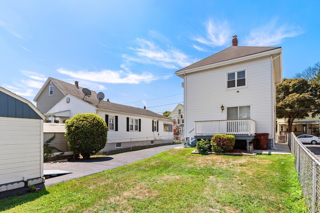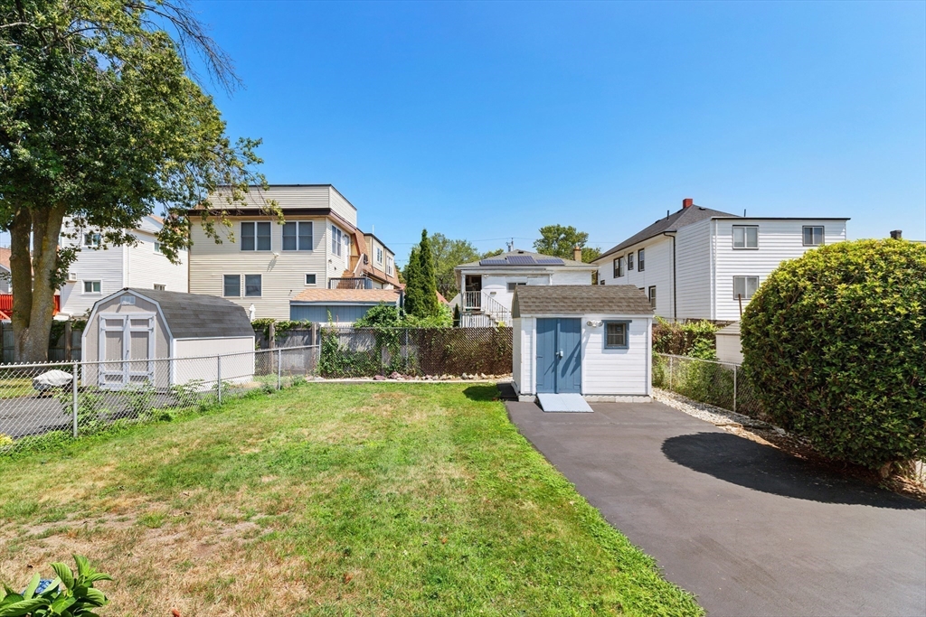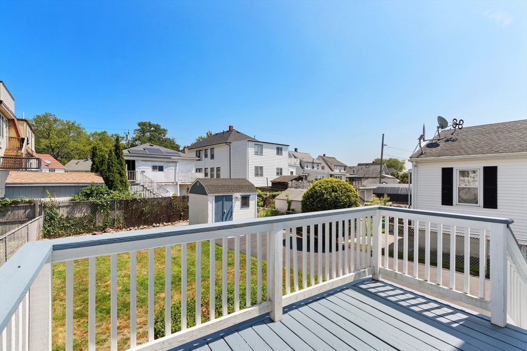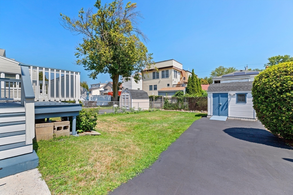 Welcome Home! This home is well maintained with off-street parking — all just minutes from local amenities and major routes. The first floor includes a living and dining area with wall-to-wall carpeting. The kitchen has a gas stove, access to the deck, and a fenced-in yard. The home also features 3 bedrooms, 1 full bathroom, and a bonus room on the third floor, ideal for a home office, guest space, additional storage, or a possible bathroom. Hardwood floors run throughout the upper level. The lower level provides almost 600 sqft. of additional space and a washer & dryer. Outside, you'll find a fenced-in yard, a private back deck, and a large storage shed perfect for tools, lawn equipment, or seasonal items. Off-street parking for up to 4 cars adds everyday convenience. Located just 0.2 miles from the nearest MBTA bus stop, less than 6 miles from Boston this home offers easy access to Boston. Come make this gem your new home on Haskell Avenue, Revere. A must see!