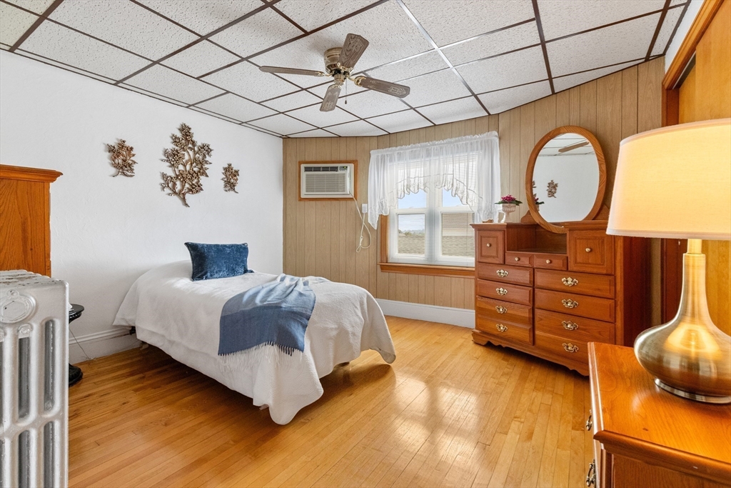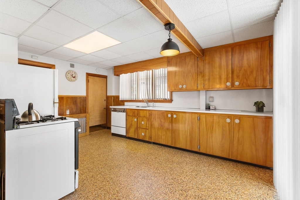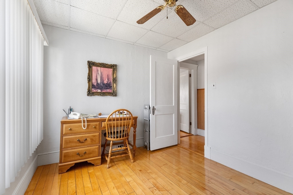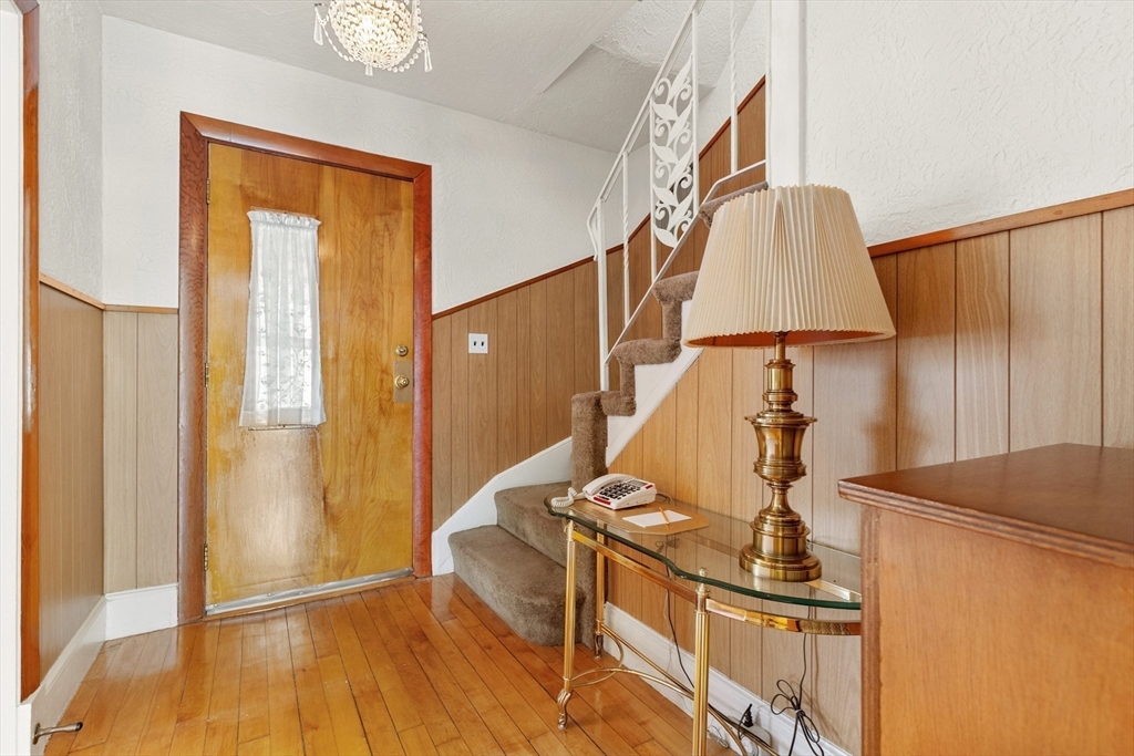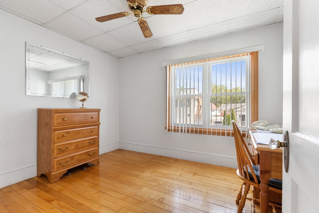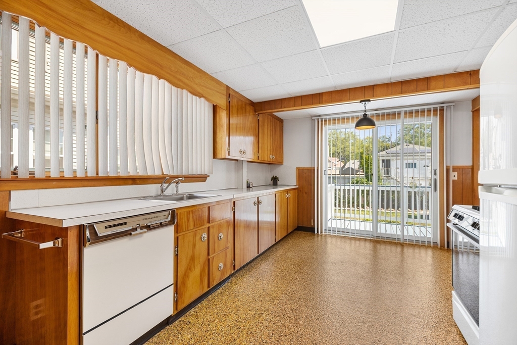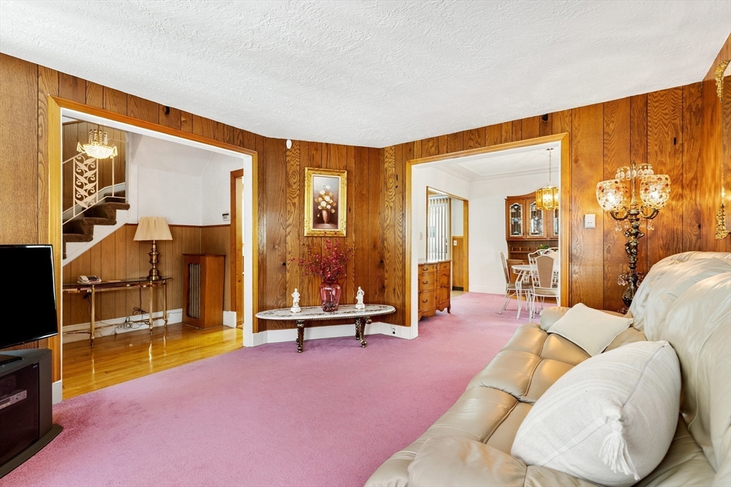 Welcome Home! This home is well maintained with off-street parking — all just minutes from local amenities and major routes. The first floor includes a living and dining area with wall-to-wall carpeting. The kitchen has a gas stove, access to the deck, and a fenced-in yard. The home also features 3 bedrooms, 1 full bathroom, and a bonus room on the third floor, ideal for a home office, guest space, additional storage, or a possible bathroom. Hardwood floors run throughout the upper level. The lower level provides almost 600 sqft. of additional space and a washer & dryer. Outside, you'll find a fenced-in yard, a private back deck, and a large storage shed perfect for tools, lawn equipment, or seasonal items. Off-street parking for up to 4 cars adds everyday convenience. Located just 0.2 miles from the nearest MBTA bus stop, less than 6 miles from Boston this home offers easy access to Boston. Come make this gem your new home on Haskell Avenue, Revere. A must see!
