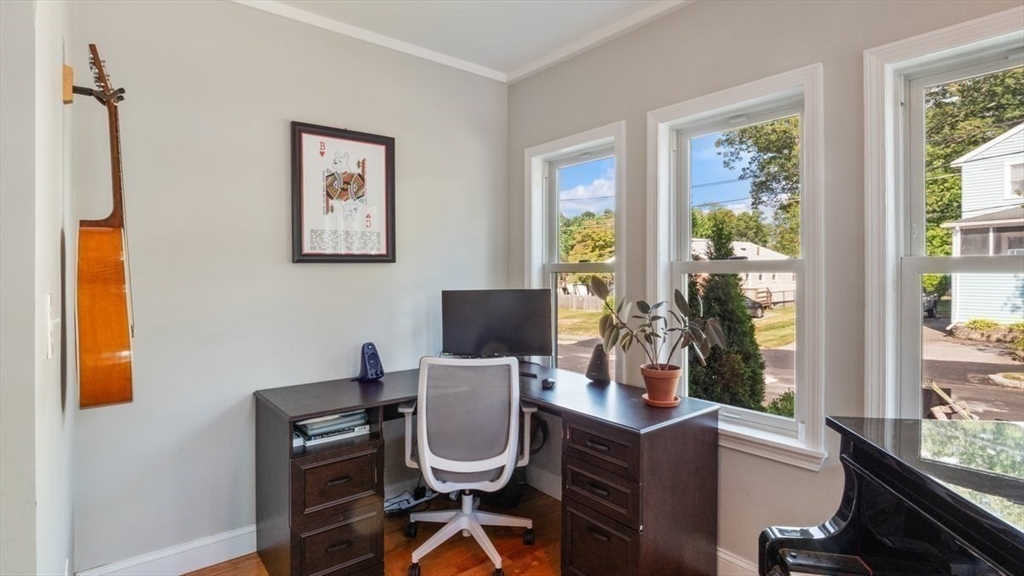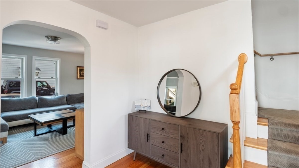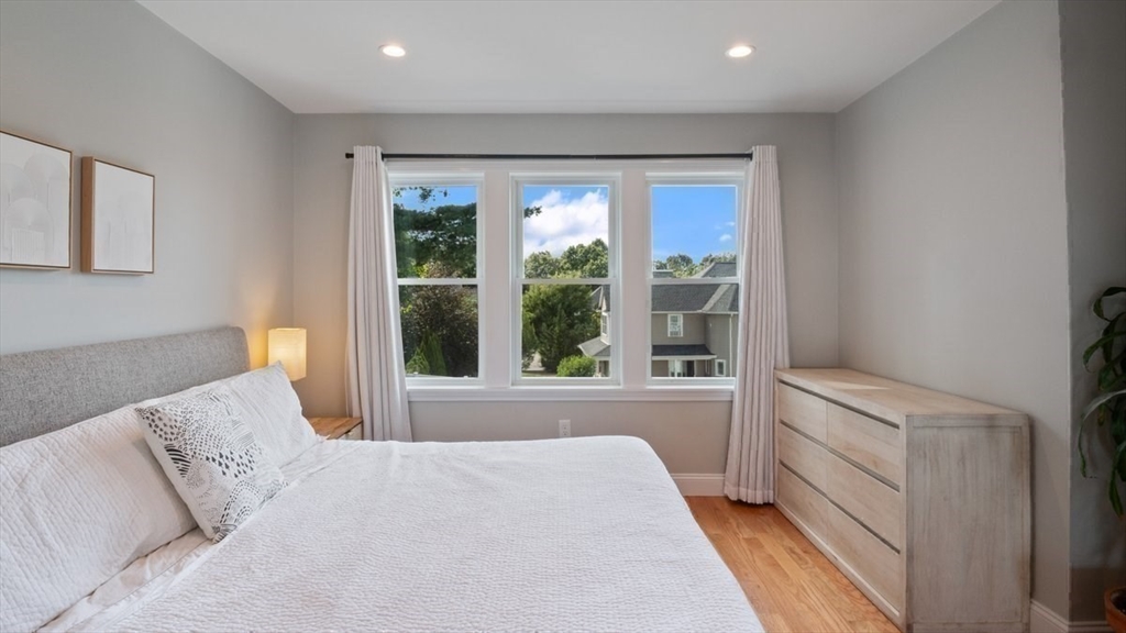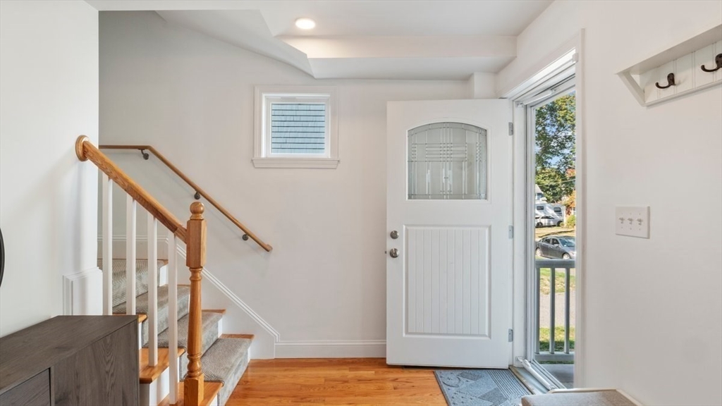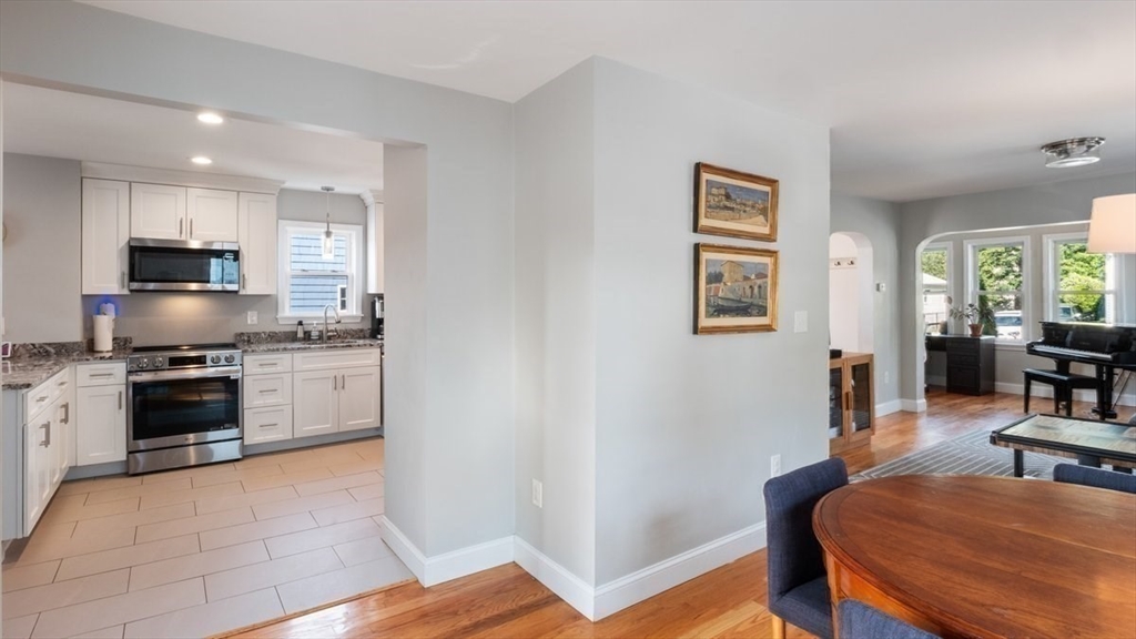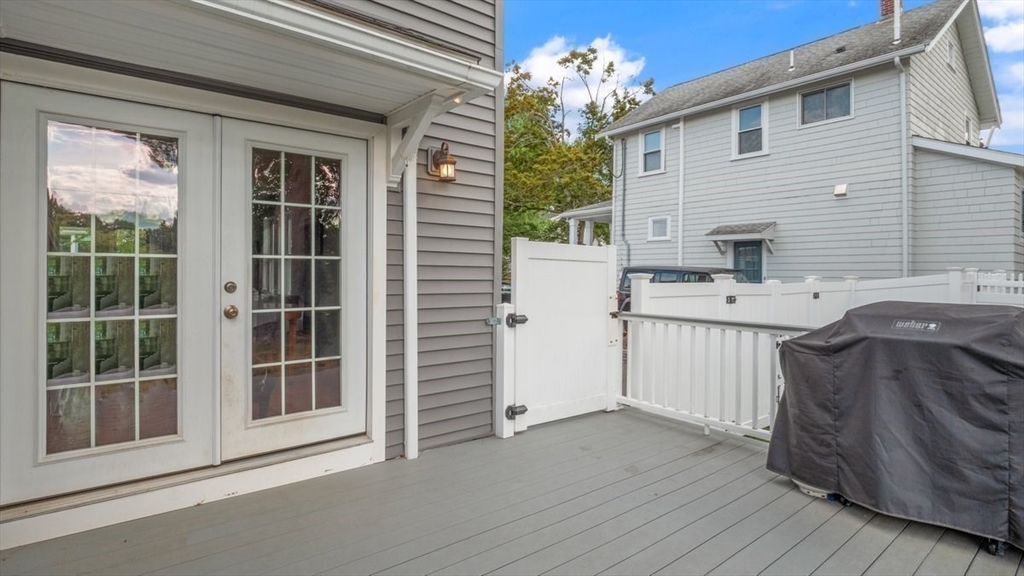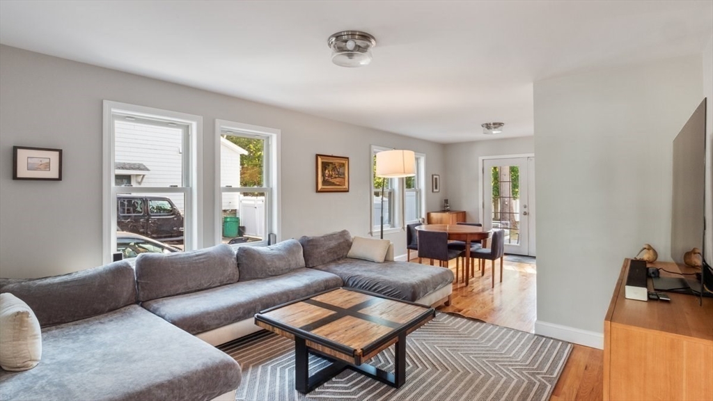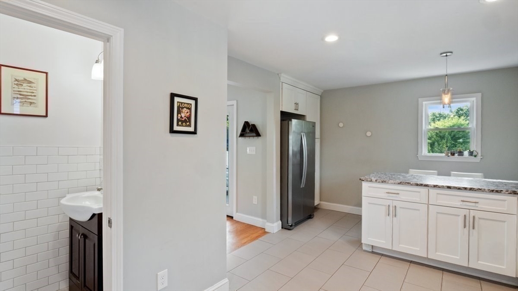 Beautifully renovated 3-bedroom, 1.5-bath home on a quiet dead-end street in Wakefield with convenient access to Lake Quannapowitt, Sullivan Park, the Wakefield-Lynnfield Rail Trail, MarketStreet Lynnfield, and commuter routes. Fully gut-renovated (2019–2021) with all-new systems, roof, siding, AZEK trim, gutters, and composite deck. The open kitchen features granite countertops, stainless steel appliances, an induction range (gas hookup available), breakfast peninsula, and French doors. The primary bedroom addition (2021) offers a custom walk-in closet, plus two additional bedrooms and a finished attic perfect for an office or playroom. Outside, enjoy a composite back deck with wide stairways (2021), 6-ft vinyl privacy fence (2022), custom shed with built-in shelving (2023), and an expanded driveway that fits up to six cars. Hardwood floors throughout, natural light, and sunset views complete this move-in-ready home!