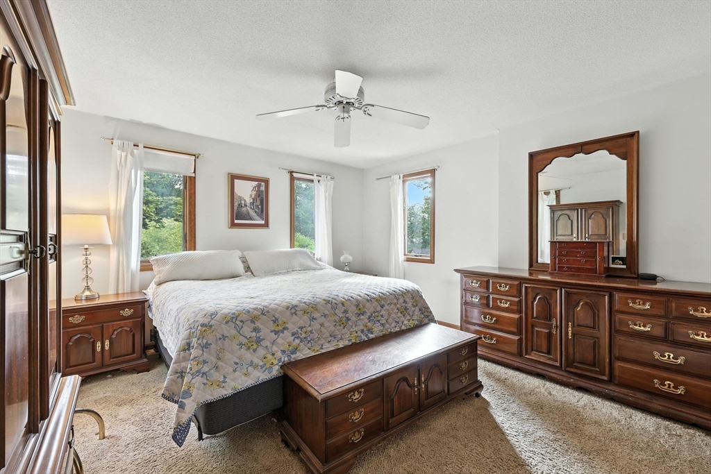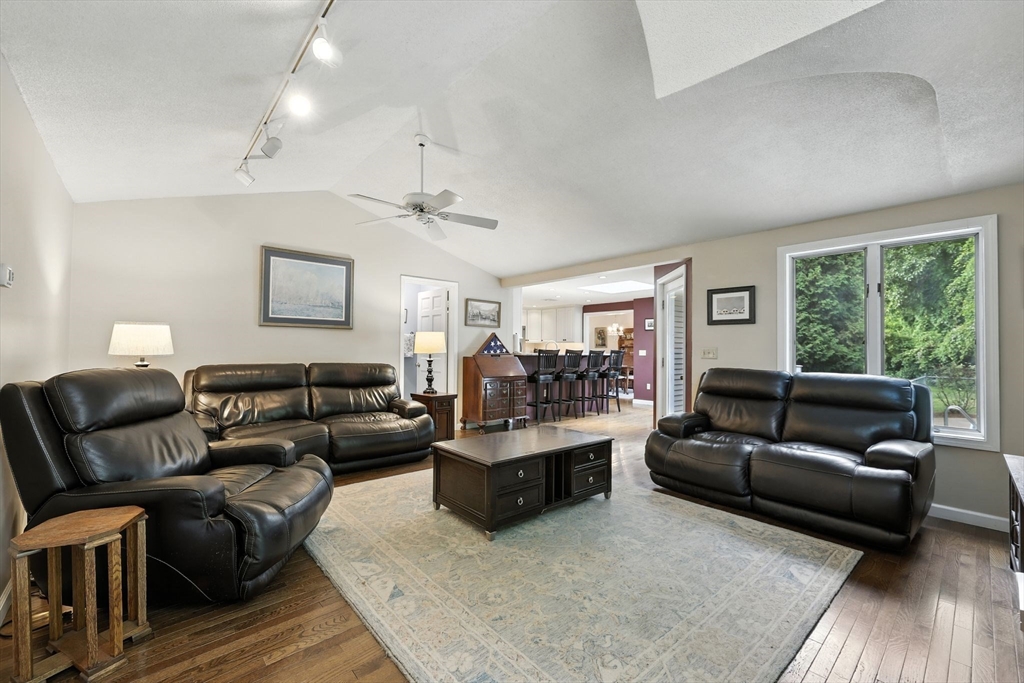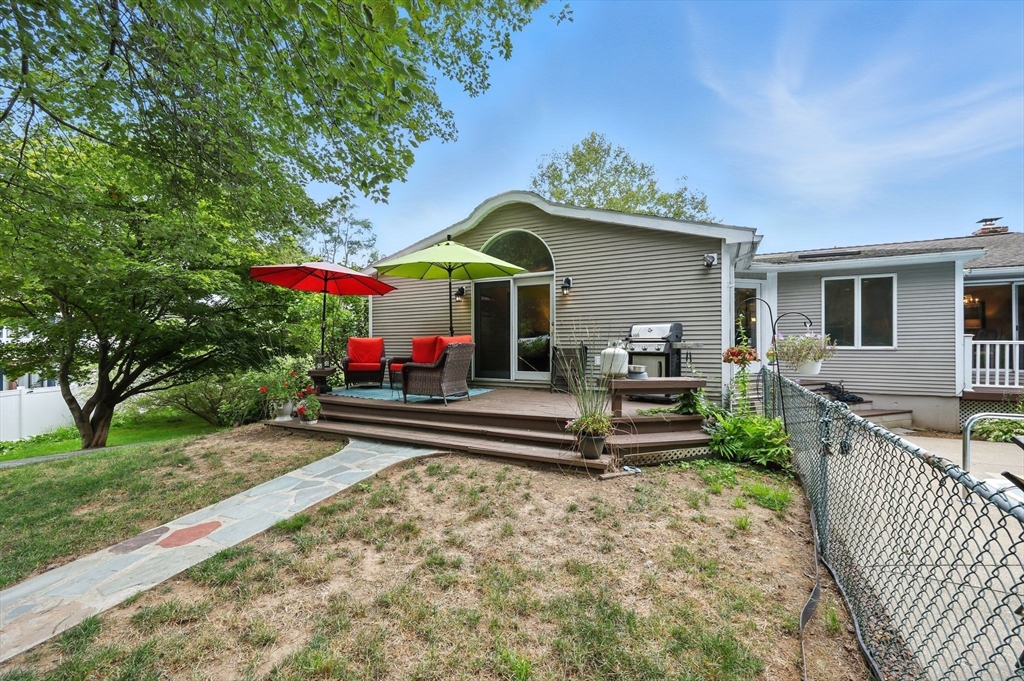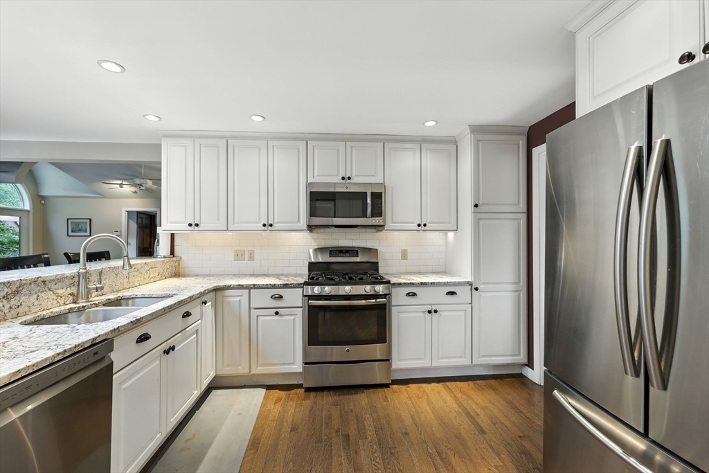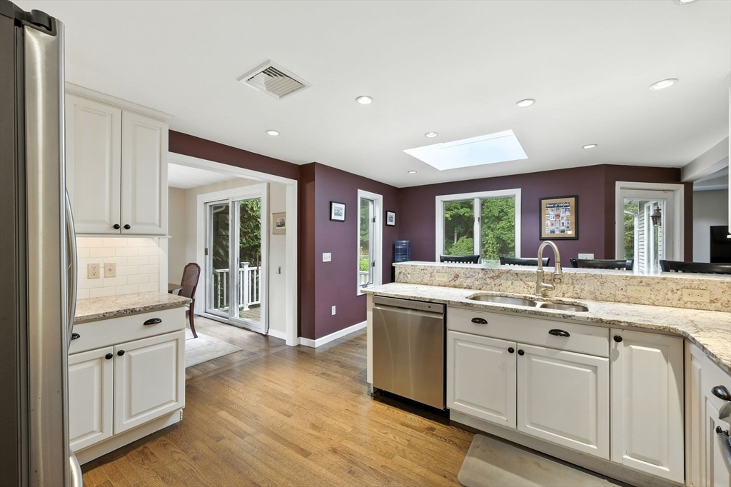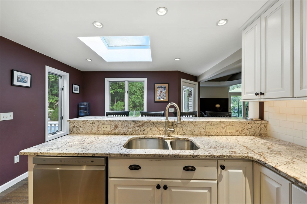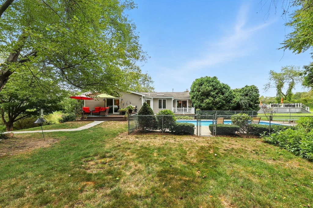 Looking for space, style, and your own backyard getaway? This 4-bedroom split-level ranch offers over 2,300 sq ft of versatile living. The open kitchen, dining, and family room layout is filled with natural light and easy flow. The family room off the kitchen overlooks the beautiful in-ground pool, while a separate living room adds extra space for relaxing or entertaining. The kitchen features granite counters, a 4-seat breakfast bar, and a skylight. The fully finished lower level includes a wet bar and beverage fridge—perfect for movie nights, a playroom, or home office. A rare 3-car attached garage offers plenty of space for vehicles, storage, or hobbies. Enjoy two decks and a concrete patio surrounding the pool, all set in a private yard at the end of a quiet cul-de-sac. Peaceful, practical, and ready for its next chapter!