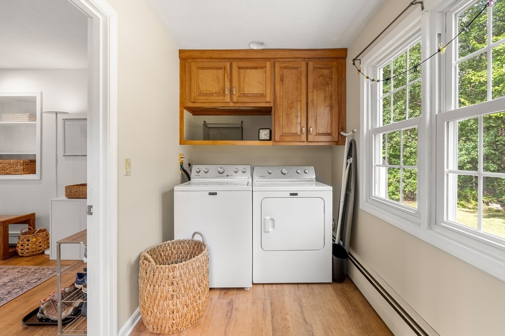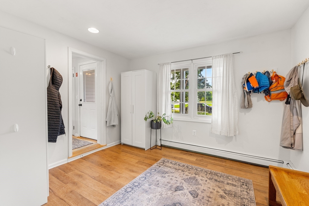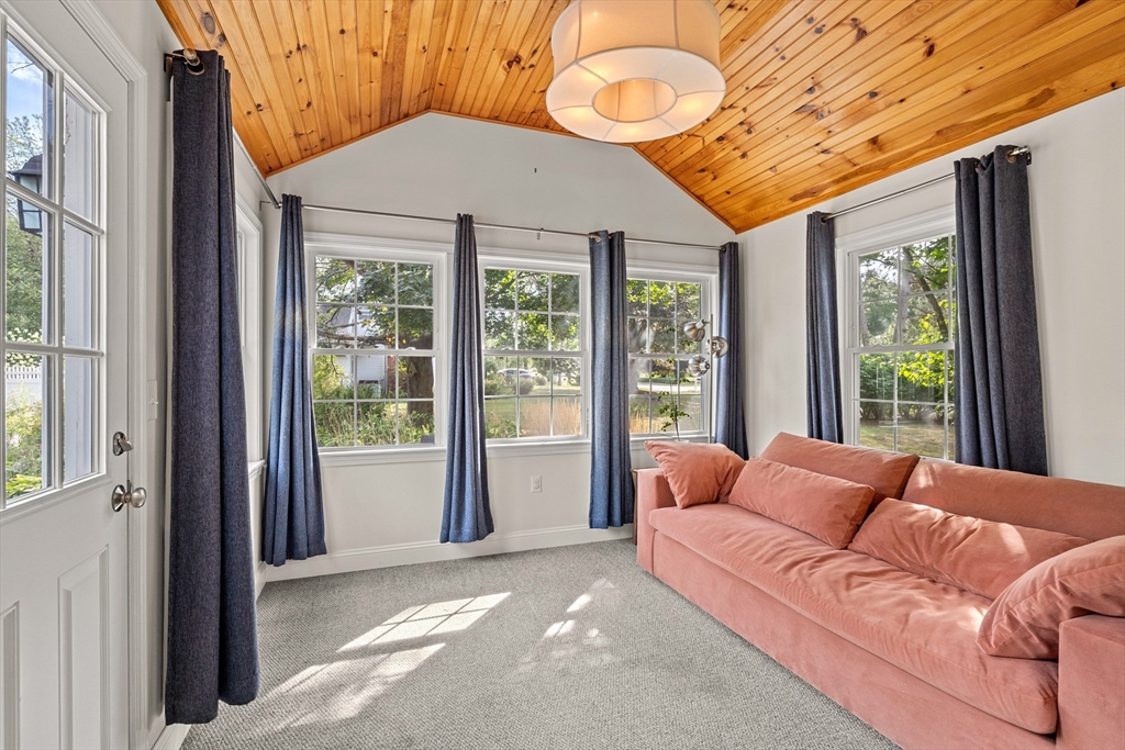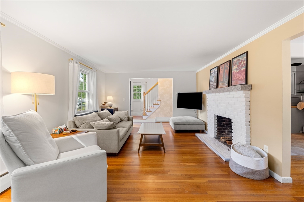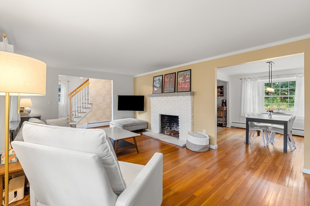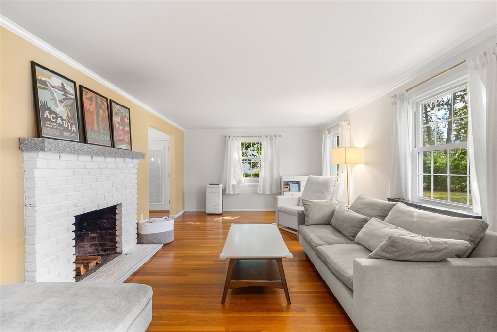 Meticulously maintained 4 bed, 2 bath home with 2 car garage on large, manicured lot in highly sought after quiet, neighborhood. Spacious first floor with hardwooded living room, eat in kitchen with SS appliances, sunroom/den and family room currently being used as mudroom. First floor laundry room and full bath on each floor. Second floor features primary suite with walk in closet and three additional, good sized bed rooms all with hardwood. Additional living space in partially finished basement. Walk up attic and basement offer tons of storage. Oversized, attached two car garage. Stone patio with fire pit for relaxing in your rolling, private yard with gardens. Many upgrades including newer systems with maintenance free vinyl siding and updated roof/windows. Charm and curb appeal galore in this beautiful home with room for the whole family. Quiet, wide street within walking distance to schools and town. Convenient to conservation areas, main roadways, surrounding towns and more.
