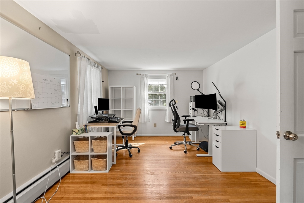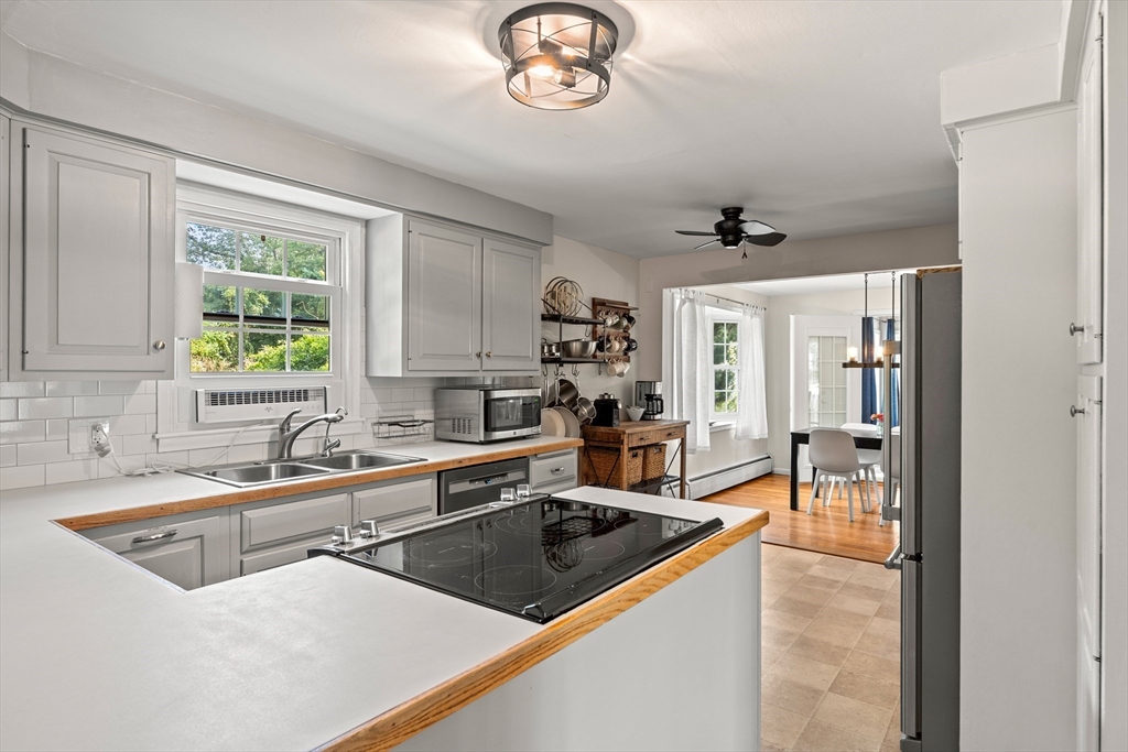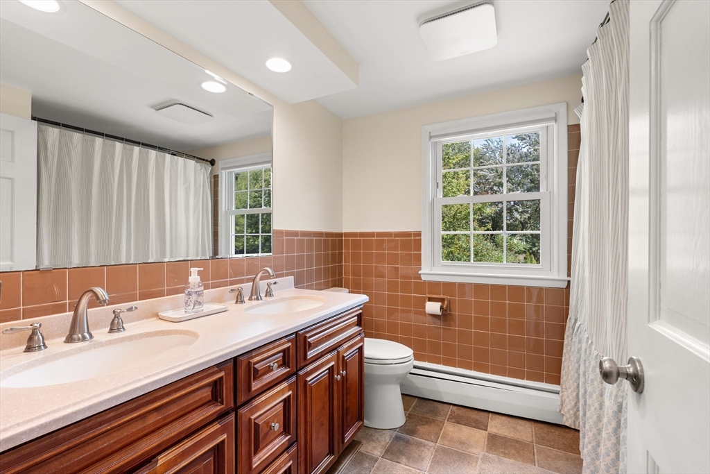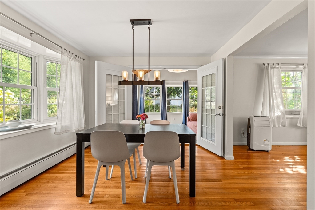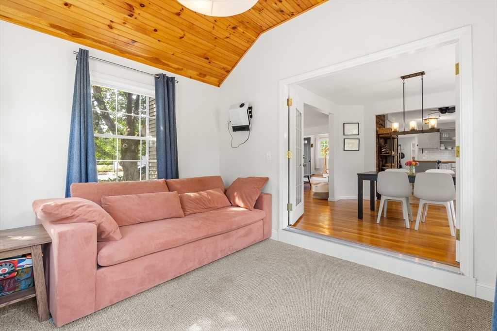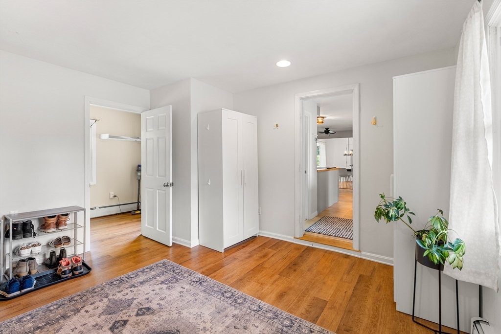 Meticulously maintained 4 bed, 2 bath home with 2 car garage on large, manicured lot in highly sought after quiet, neighborhood. Spacious first floor with hardwooded living room, eat in kitchen with SS appliances, sunroom/den and family room currently being used as mudroom. First floor laundry room and full bath on each floor. Second floor features primary suite with walk in closet and three additional, good sized bed rooms all with hardwood. Additional living space in partially finished basement. Walk up attic and basement offer tons of storage. Oversized, attached two car garage. Stone patio with fire pit for relaxing in your rolling, private yard with gardens. Many upgrades including newer systems with maintenance free vinyl siding and updated roof/windows. Charm and curb appeal galore in this beautiful home with room for the whole family. Quiet, wide street within walking distance to schools and town. Convenient to conservation areas, main roadways, surrounding towns and more.