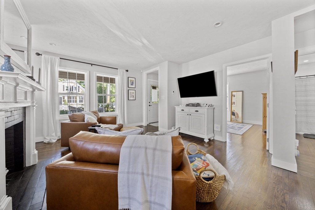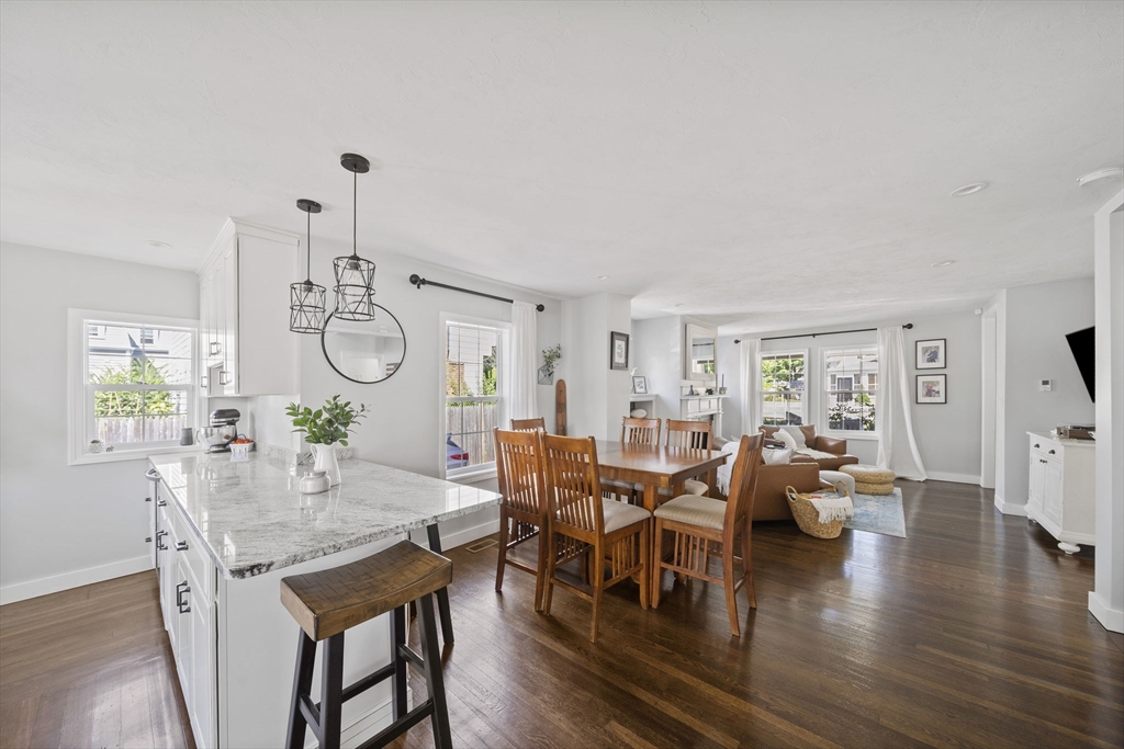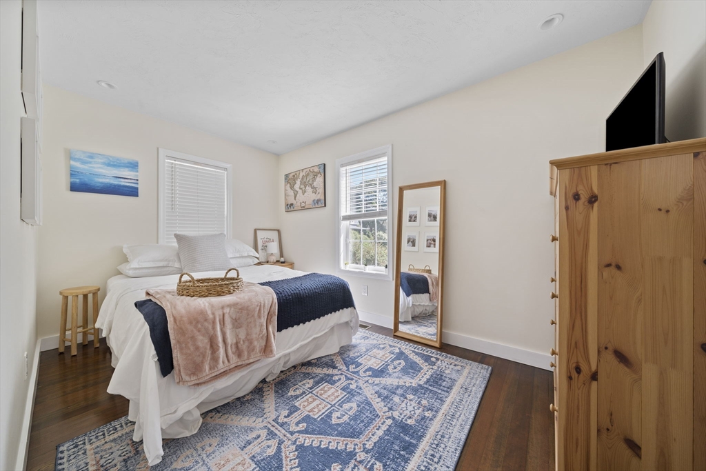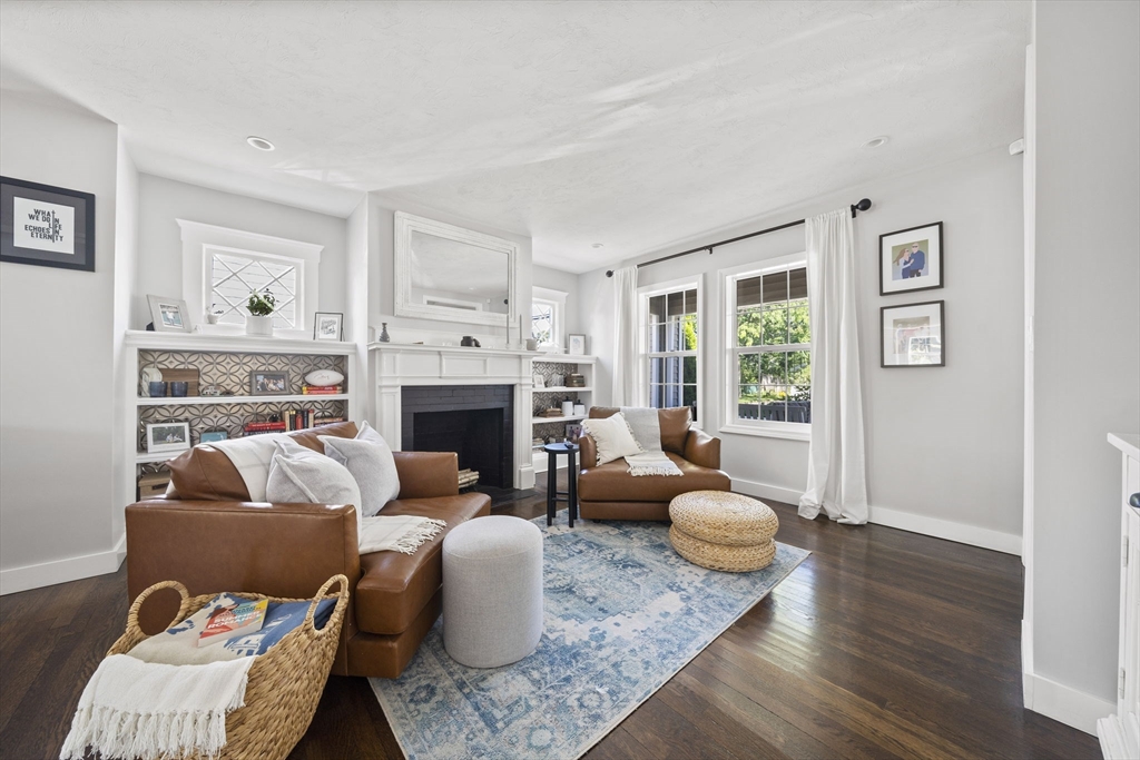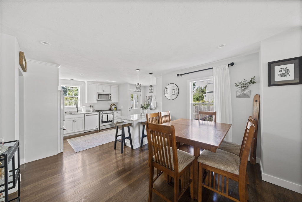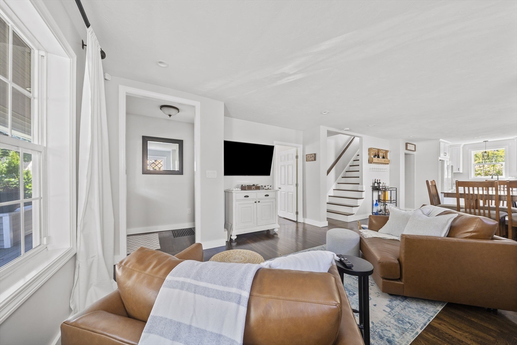 Welcome to 11 Shaw Street, an exquisitely renovated home nestled in the heart of North Weymouth. Step inside the welcoming foyer to discover high ceilings enhanced by recessed lighting and gleaming hardwood floors, which flow seamlessly throughout the main level. The cozy living room fireplace is flanked by built-ins that add both style and functionality. The heart of the home is undoubtedly the kitchen, boasting sleek granite countertops, a convenient breakfast bar, high-end KitchenAid appliances, and a wine fridge. Enjoy the added bonus of the fully finished lower level, complete with a full bathroom and ample storage space. Outside, enjoy the spacious backyard, perfect for relaxing evenings under the stars, while the front porch swing offers a peaceful spot to unwind. This location is incredibly convenient, offering easy access to local amenities, nearby beaches, parks, and public transportation, making it a perfect choice for those seeking a blend of serenity and accessibility.