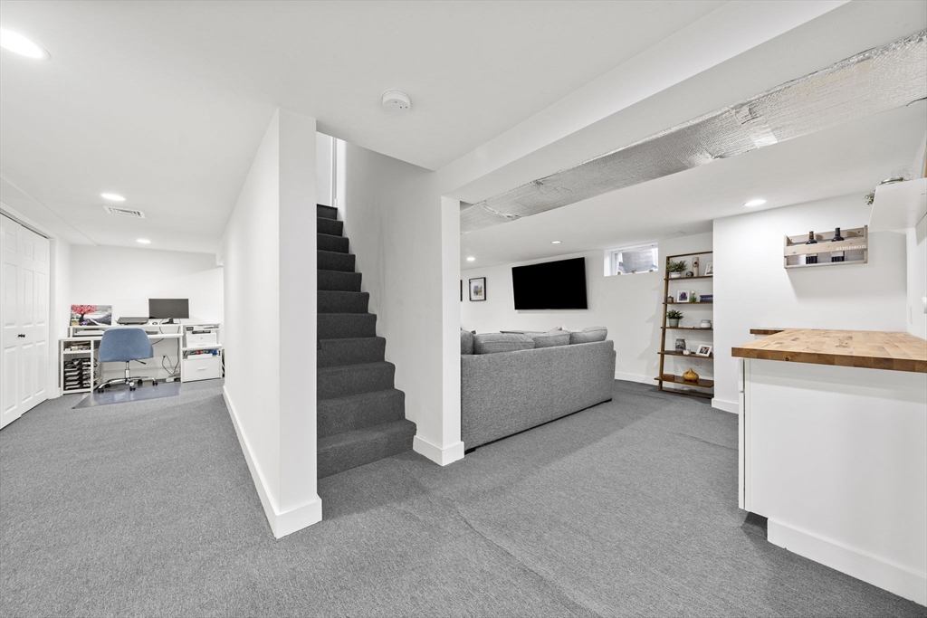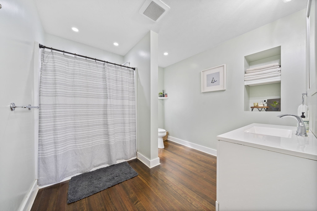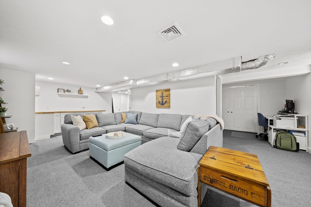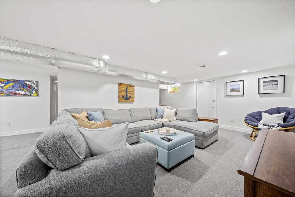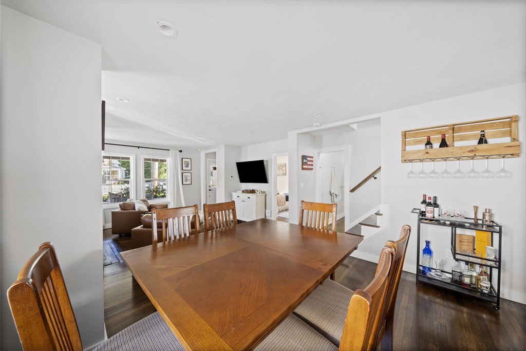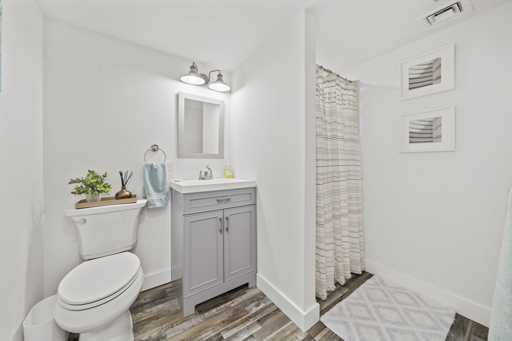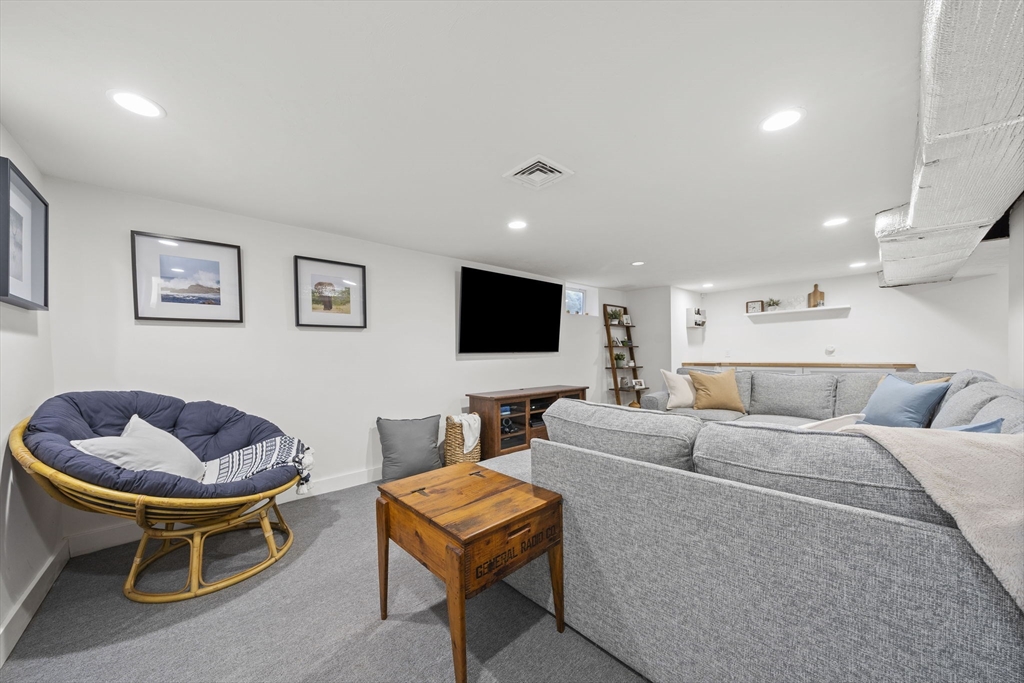 Welcome to 11 Shaw Street, an exquisitely renovated home nestled in the heart of North Weymouth. Step inside the welcoming foyer to discover high ceilings enhanced by recessed lighting and gleaming hardwood floors, which flow seamlessly throughout the main level. The cozy living room fireplace is flanked by built-ins that add both style and functionality. The heart of the home is undoubtedly the kitchen, boasting sleek granite countertops, a convenient breakfast bar, high-end KitchenAid appliances, and a wine fridge. Enjoy the added bonus of the fully finished lower level, complete with a full bathroom and ample storage space. Outside, enjoy the spacious backyard, perfect for relaxing evenings under the stars, while the front porch swing offers a peaceful spot to unwind. This location is incredibly convenient, offering easy access to local amenities, nearby beaches, parks, and public transportation, making it a perfect choice for those seeking a blend of serenity and accessibility.