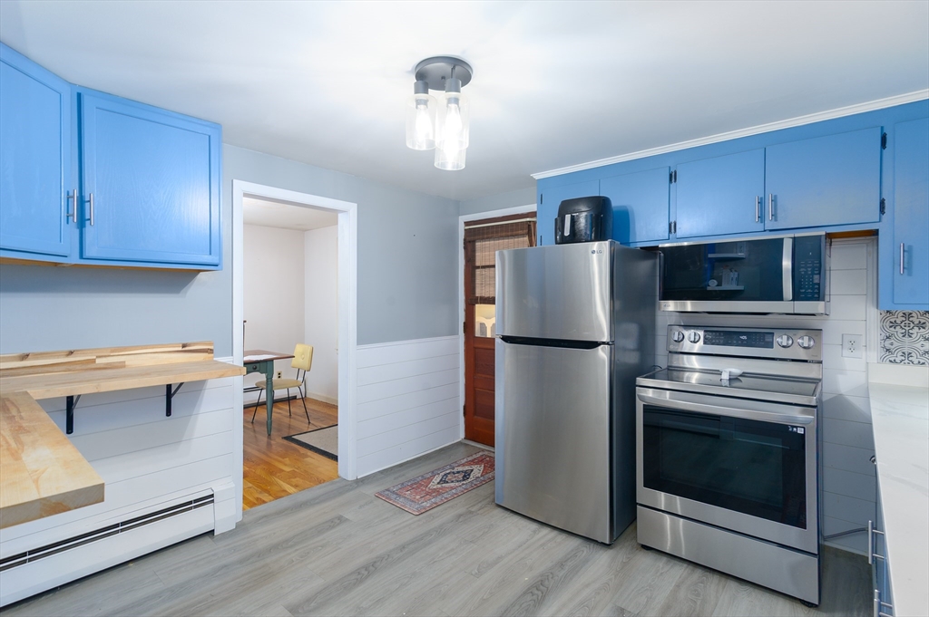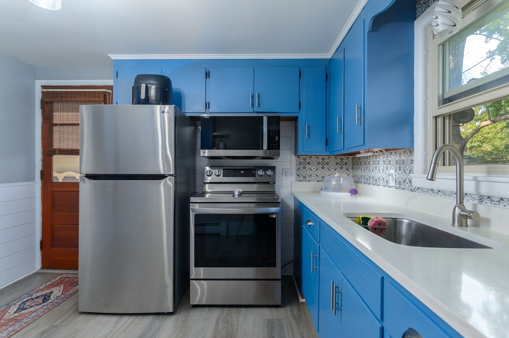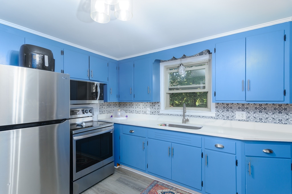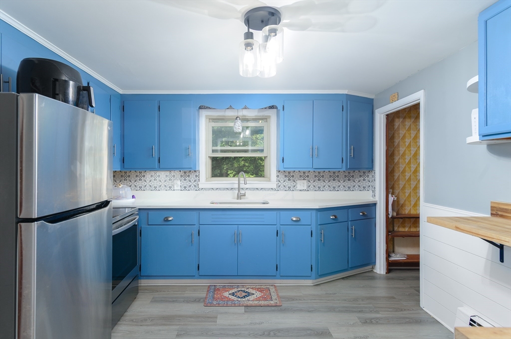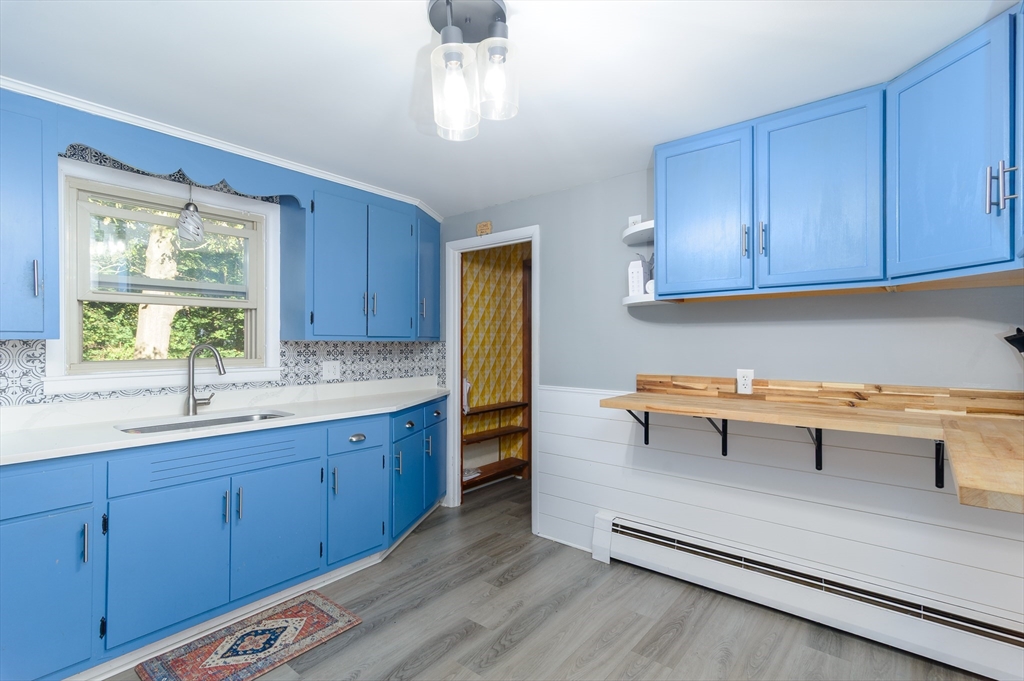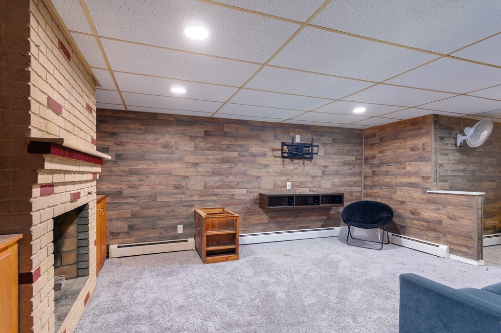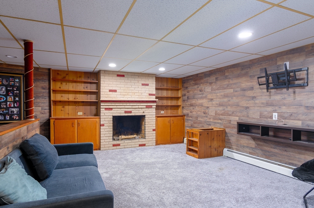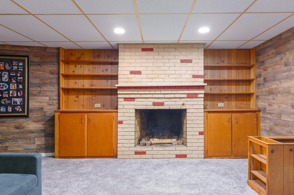 Sought after Burncoat section of Worcester is where you will find this lovely ranch style home . The front living room is where you will find 1 of 2 fireplaces as the focal point of the room , open to the dining room both with hardwood floors . The kitchen features repurposed cabinetry accented with trendy tile back splash, plank style flooring, new counters ,custom breakfast bar complimented with woodworking details. Three nice size rooms all with hardwood floors & ample closet space . LL offers additional living space with 2nd FP In The den with matching built ins, separate office or den & additional space for a playroom or exercise space. All with newer wall to wall carpet and shiplap accents . Some extra features are a large mudroom , oversized 1 car garage , front porch , nice flat yard framed by mature trees . System improvements inc but not limited to 5 yr gas heating system , 30 yr architectural shingle roof (approx 10 yrs ), updated electric . All in a neighbor setting