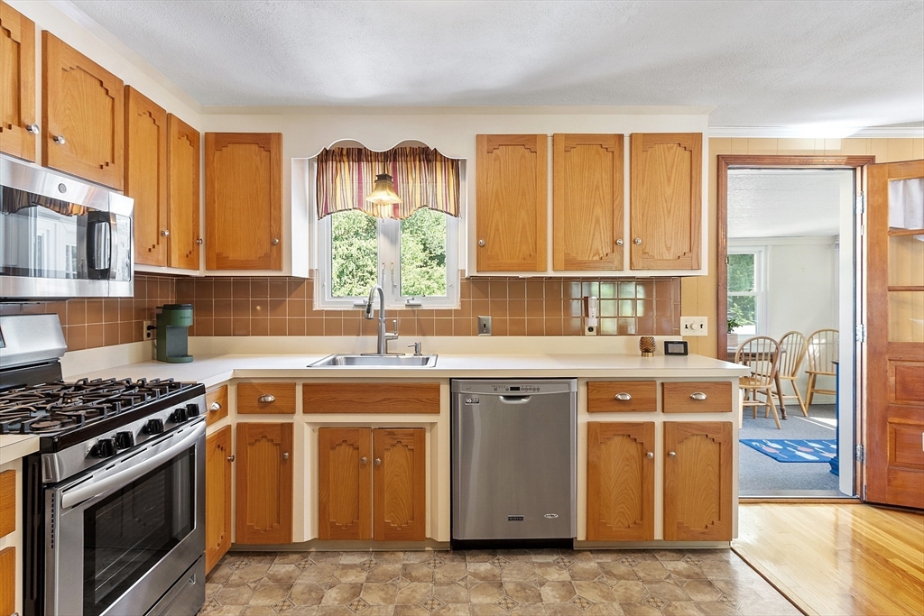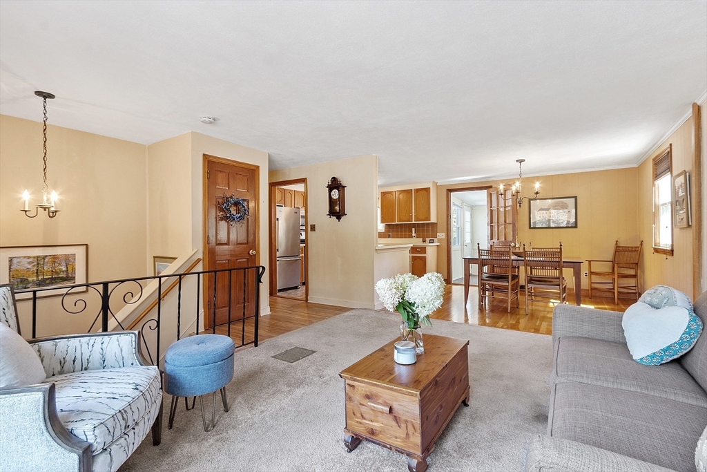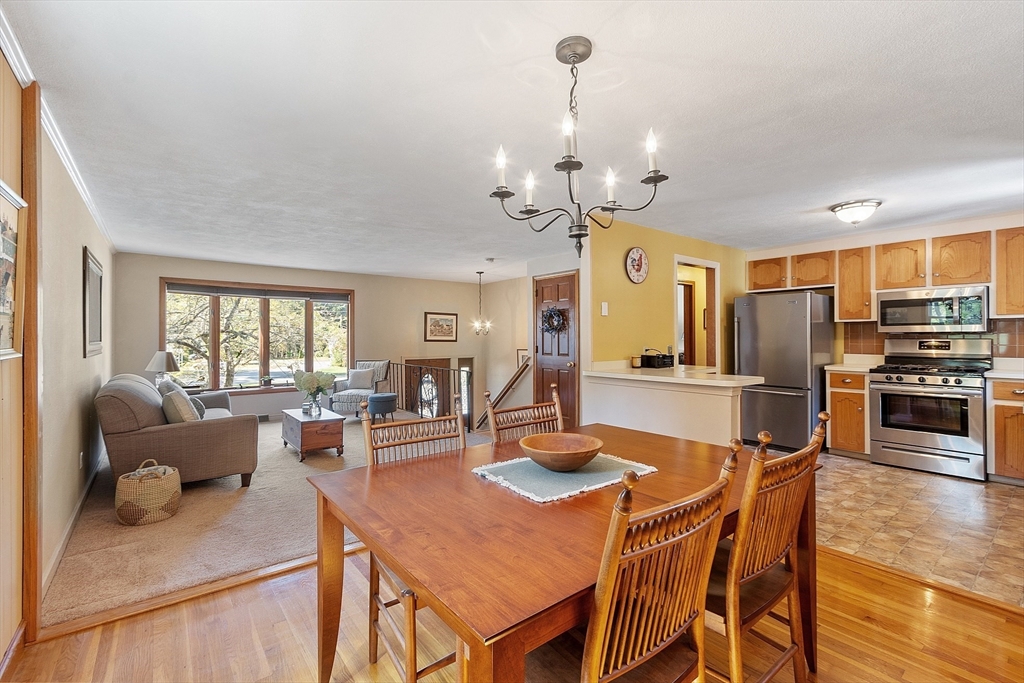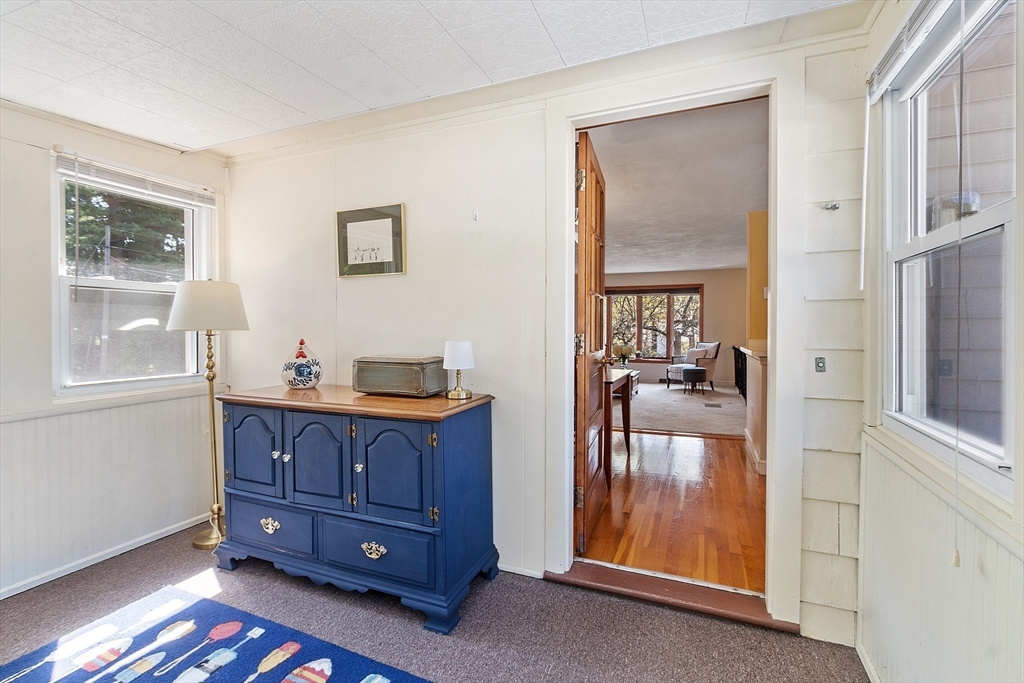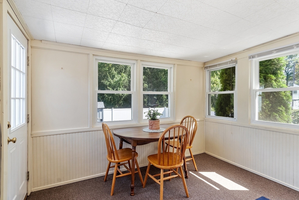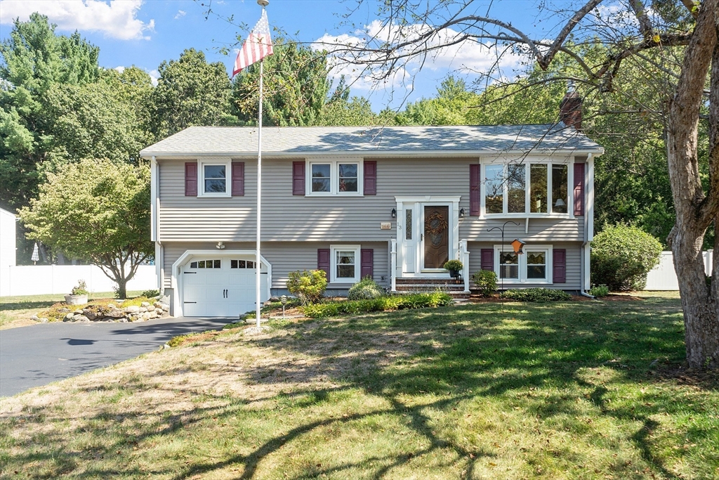 Welcome to 13 Putney Circle, a well-maintained 4-bedroom, 1.5-bath single-family home located on a spacious corner lot in a peaceful Billerica cul-de-sac. First floor features an open-concept kitchen with stainless steal appliances, dining room and living room with bay window, creating a warm and inviting living space. A bright and airy 3 season porch and back deck are perfect for enjoying the New England seasons. 3 bedrooms with hardwood floors and updated full bathroom complete this floor. The lower-level offers a 4th bedroom, laundry room, half bath and family room includes a gas stove and walkout French doors leading to a fenced backyard, perfect for entertaining or relaxing outdoors. Updates include a newer roof, an updated main bath, and a convenient 1-car garage. This home offers comfortable, move-in-ready living in a desirable neighborhood.