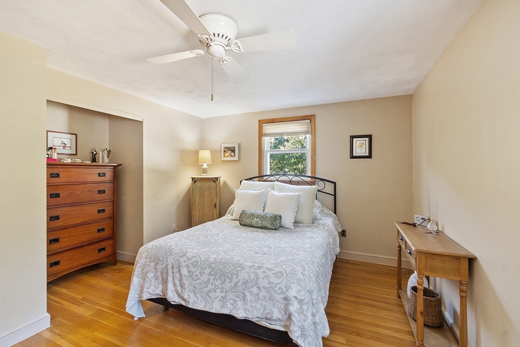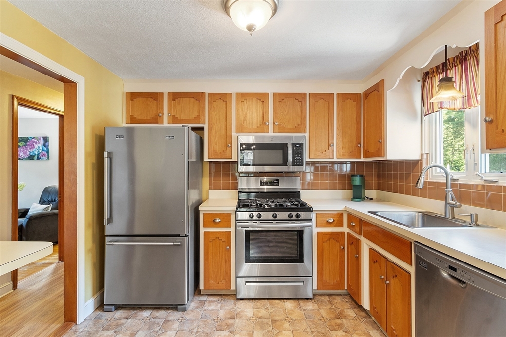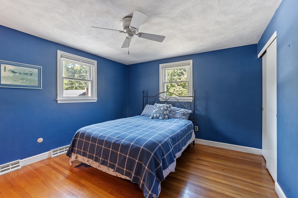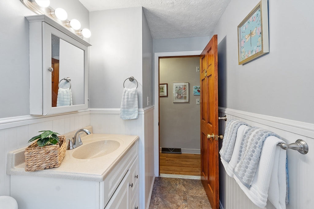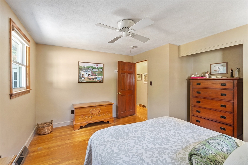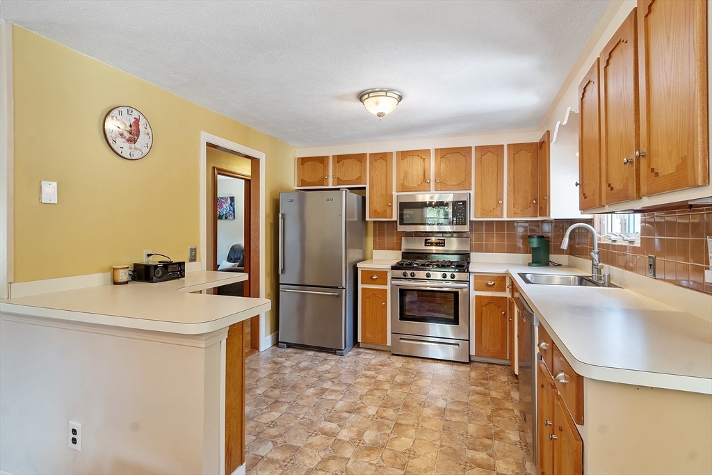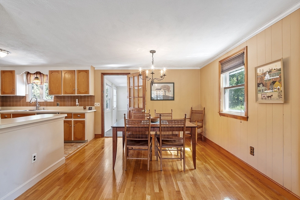 Welcome to 13 Putney Circle, a well-maintained 4-bedroom, 1.5-bath single-family home located on a spacious corner lot in a peaceful Billerica cul-de-sac. First floor features an open-concept kitchen with stainless steal appliances, dining room and living room with bay window, creating a warm and inviting living space. A bright and airy 3 season porch and back deck are perfect for enjoying the New England seasons. 3 bedrooms with hardwood floors and updated full bathroom complete this floor. The lower-level offers a 4th bedroom, laundry room, half bath and family room includes a gas stove and walkout French doors leading to a fenced backyard, perfect for entertaining or relaxing outdoors. Updates include a newer roof, an updated main bath, and a convenient 1-car garage. This home offers comfortable, move-in-ready living in a desirable neighborhood.
