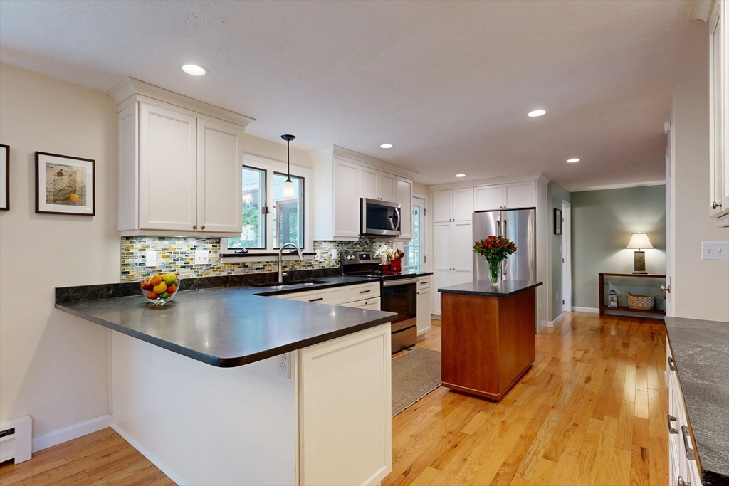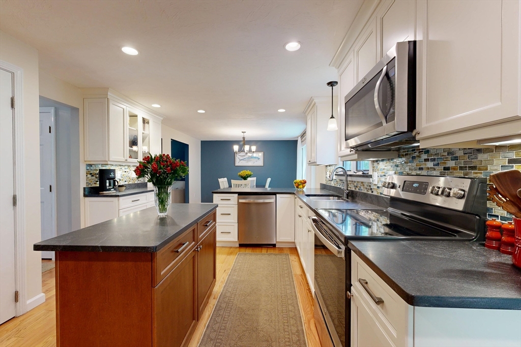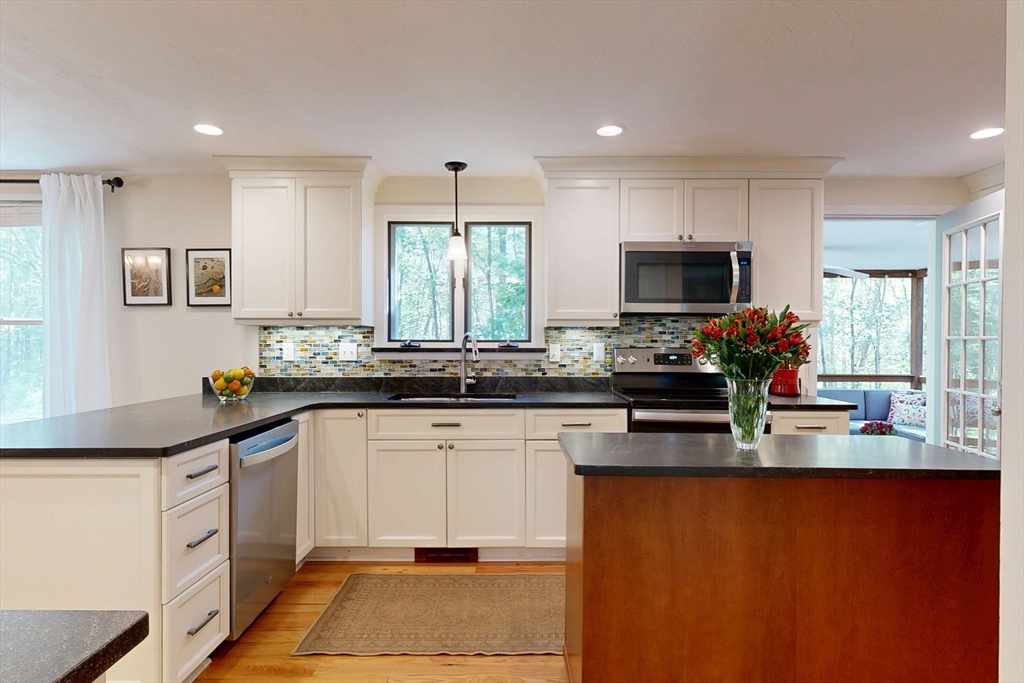 Discover this inviting 5-bedroom, 2.5-bath home offering the perfect balance of privacy and convenience in a prime Millis location. Nestled on a tree-lined street just steps from shops, dining, and groceries, it’s also surrounded by scenic trails, horse farms, and natural beauty. Inside, enjoy a warm living room, fireplaced family room, and spacious eat-in kitchen with stainless appliances, all flowing to a tranquil screened porch overlooking the private, wooded yard—ideal for relaxing or entertaining. Upstairs, four spacious bedrooms include a serene primary suite with en suite bath, plus a sun-filled hall bath. The third floor offers a flexible fifth bedroom or office. Beautifully maintained with thoughtful updates, this home is close to top-rated Millis schools, Oak Grove Park, and nearby Medfield and Medway centers—and just five miles from the Norfolk MBTA for an easy Boston commute.