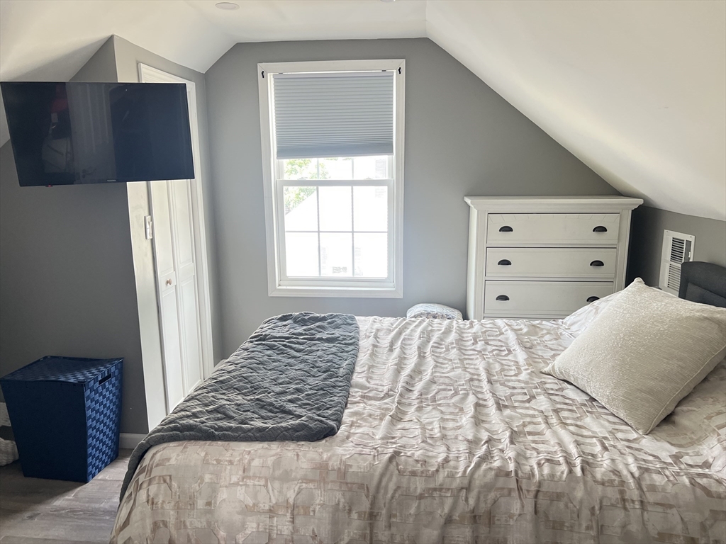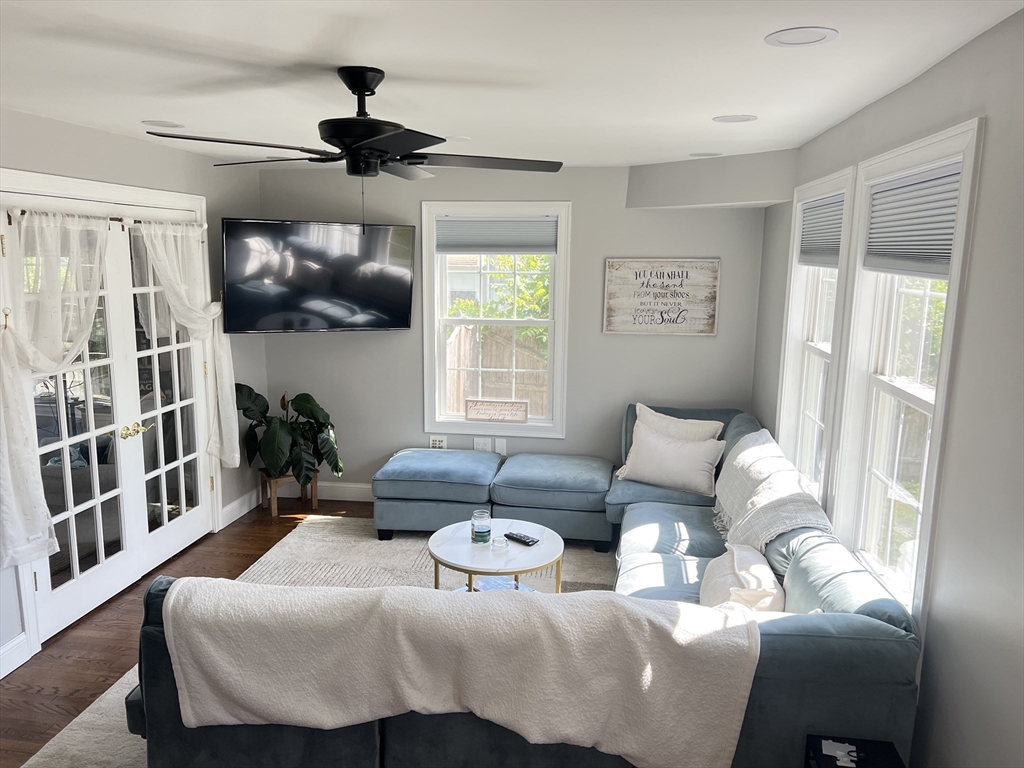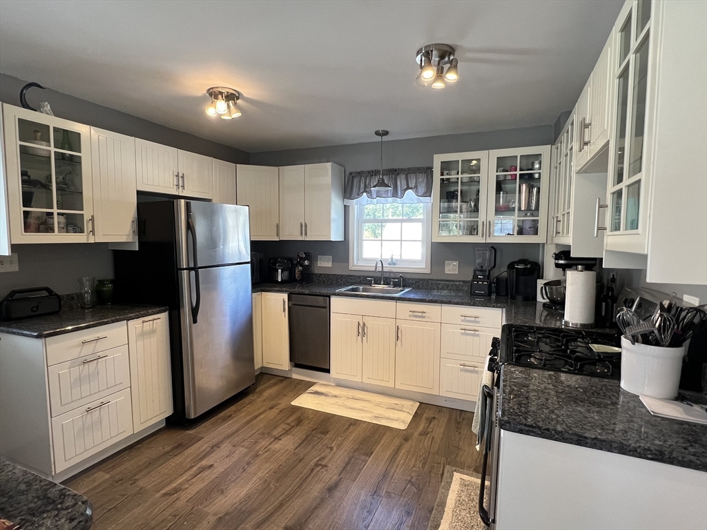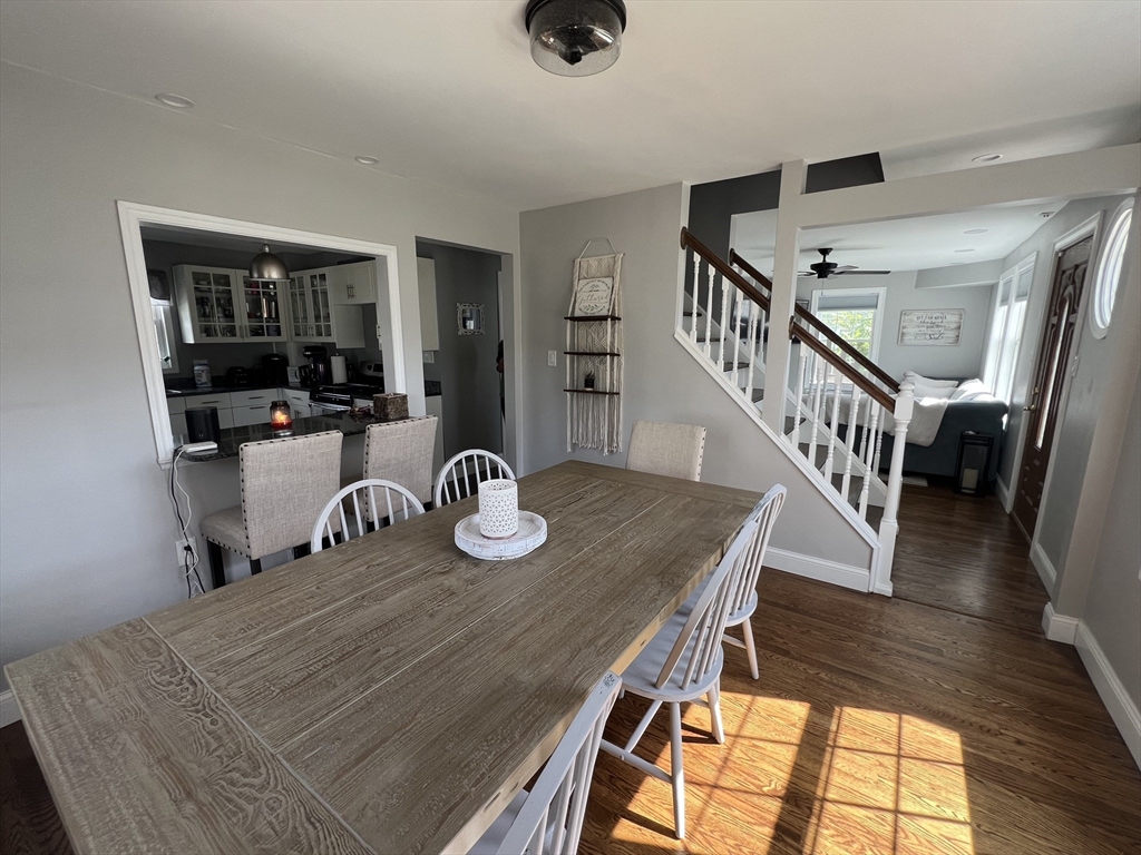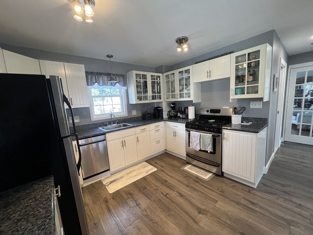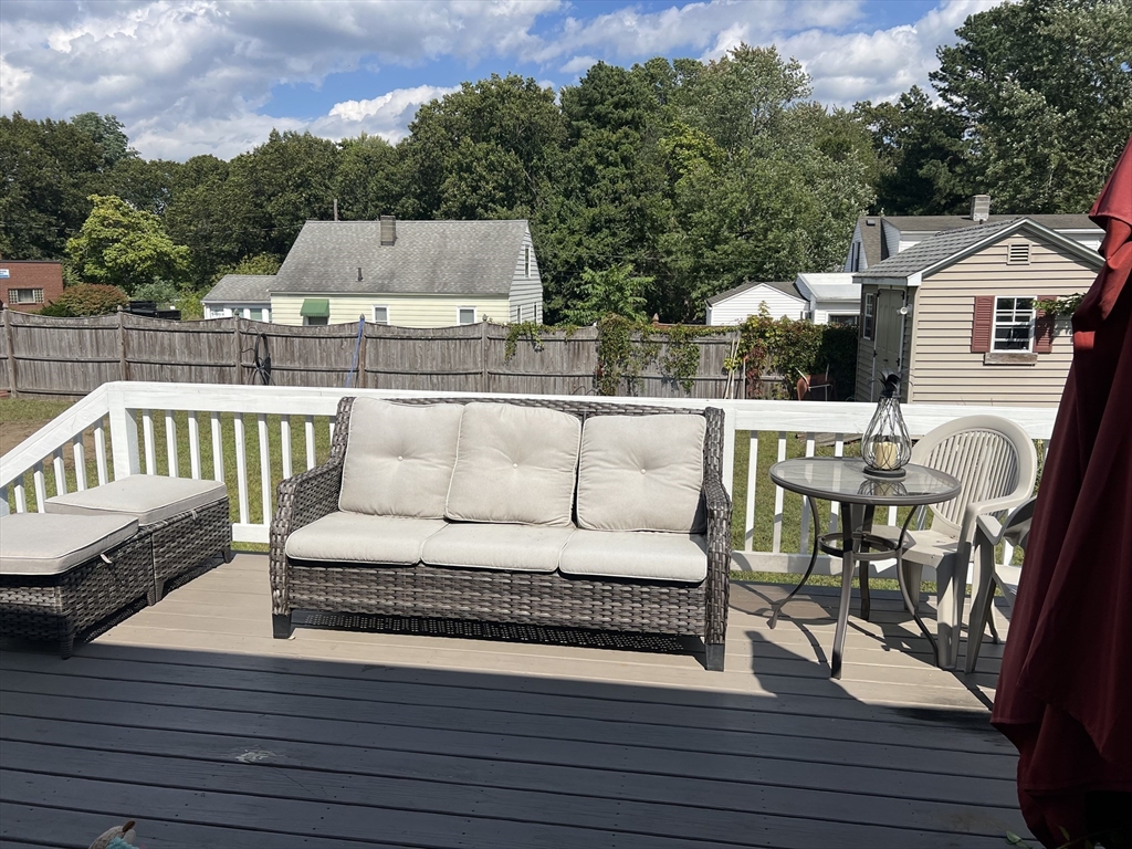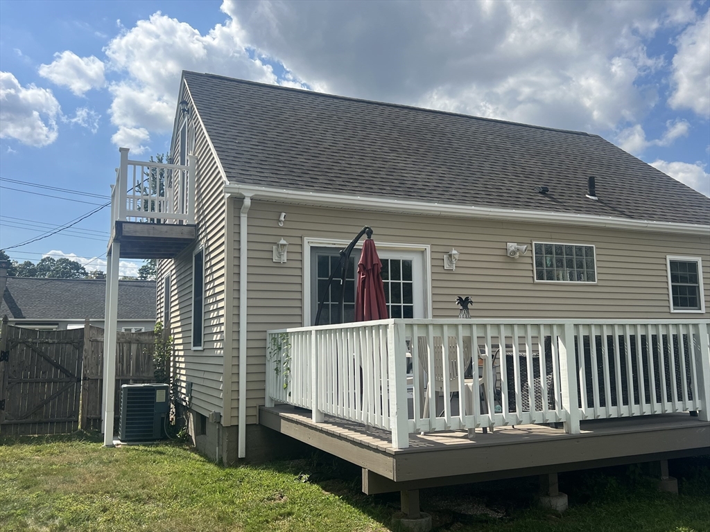 Charming 3 bedroom, 1bath Cape close to the Wilbraham line in Springfield, offering a quiet neighborhood with easy access to shopping, highways and transportation. This move-in ready home features a fenced yard, updated boiler, central air, replacement windows, vinyl siding, newer roof, hot water tank, refinished hardwood floors, and a brand-new driveway. The updated kitchen and bath complement the open-concept layout, with the kitchen open to the dining room featuring a breakfast bar & open stairway allowing for lovely natural light throughout. While the french doors out to the deck makes indoor-outdoor entertaining seamless . A versatile first-floor bedroom/office is conveniently located near the full bath, while two additional bedrooms are upstairs. The partially finished basement offers bonus space, currently used as a workout room. An adorable home ready for its new owners.
