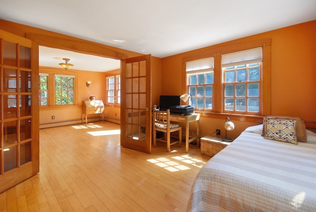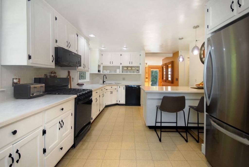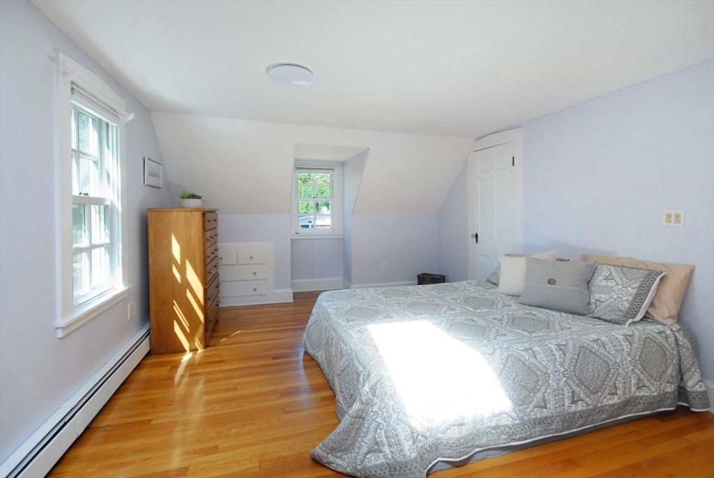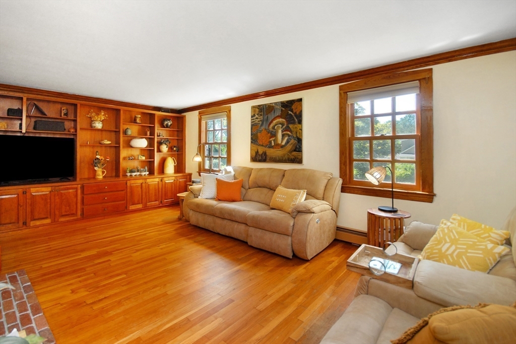 Classic New England Cape is located in a prime spot in West Acton! Original home was thoughtfully expanded in 1988 with a dining room, bedroom/office w/ full bath and deck on the first floor, and a main bedroom suite with a full bath and walk in closet on the second floor. Great floor plan with spacious white kitchen, newer backsplash, counters, and refrigerator. Beautiful built ins and trim work is found throughout this classic home. The dining room with built in cabinets for your special things is a highlight. Living room has a fireplace, plumbed for a wood stove, and built in cabinetry. First floor bedroom, currently use as an office, has a full bath and walk in closet, flexible for any living situation. The lovely yard has countless perennials and mature trees and plantings throughout including a playset for children. Stroll to West Acton Village stores restaurants, ice cream, playground and AB schools! This home awaits your personal decorating touches to make it your own!