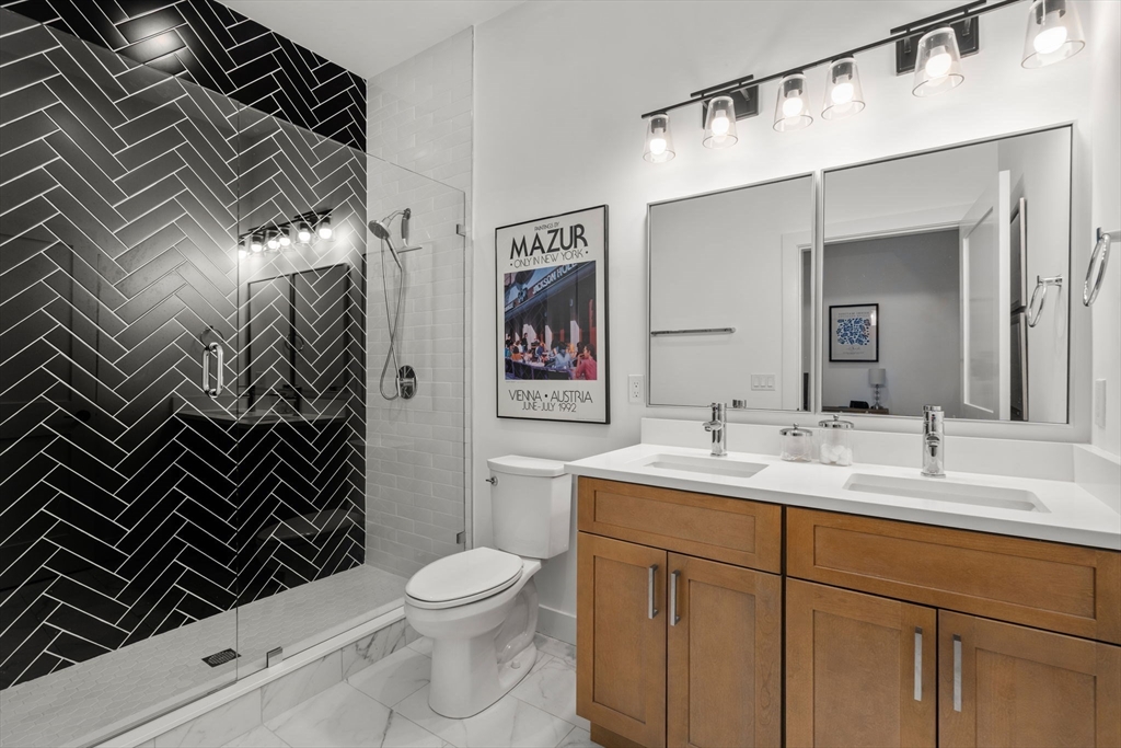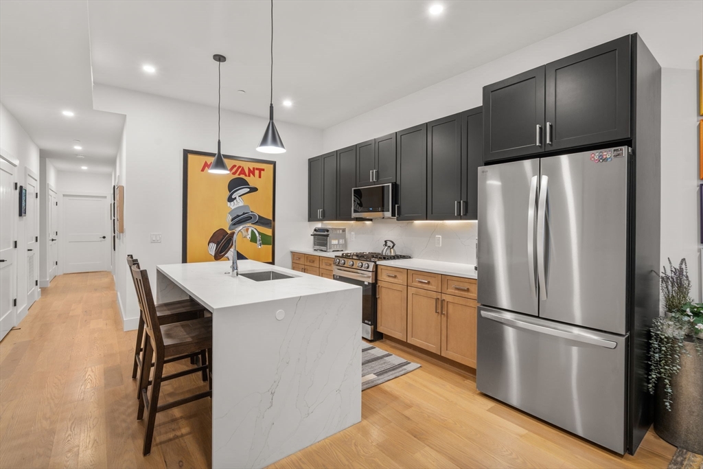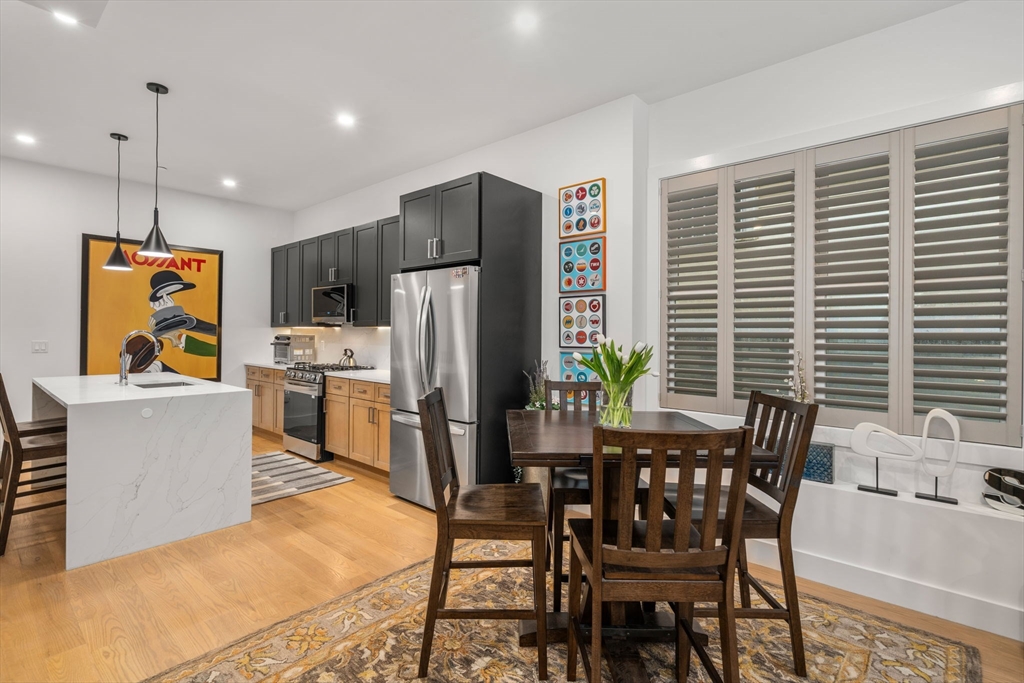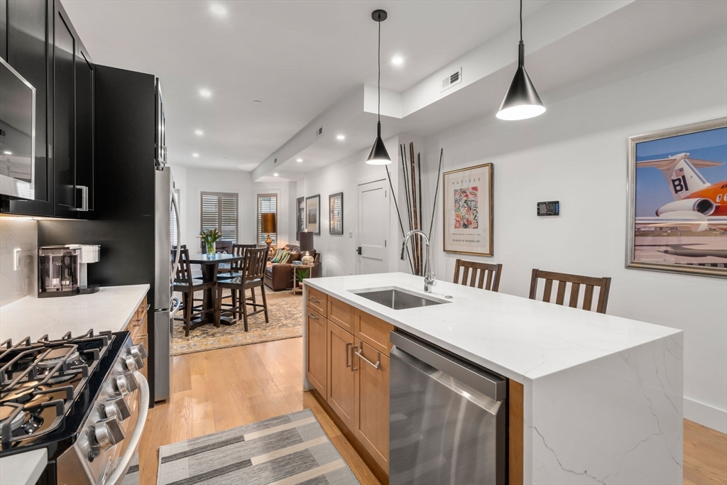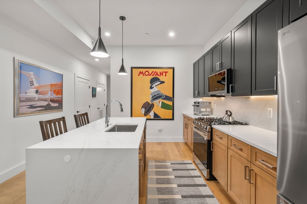 Welcome to 231 Everett Street, a beautifully crafted 2-bed, 2-bath 2024 new construction condo in East Boston's sought-after Jeffries Point neighborhood. This spacious, 1154 sf residence boasts open-concept layout and features wood floors,soaring ceilings, recessed lighting. Designer kitchen features shaker-style cabinetry, quartz countertops, large center island, and stainless-steel appliances – ideal for everday Living|Entertaining. Spacious primary suite inc a spa-inspired bath w/ oversized walk-in shower, while the second bedroom and full guest bath offer flexibility for guests or a home office. Additional highlights inc central A/C, abundant closet space, custom plantation shutters and room-darkening shades, a tankless on-demand water heater, & private rear patio & backyard perfect for entertaining. Located ontree-lined st just moments from the amazing waterfront, scenic parks, East Boston’s restaurants, cafes,convenient MBTA access.Perfect blend style &comfort