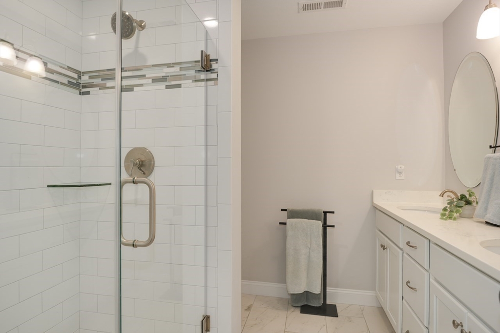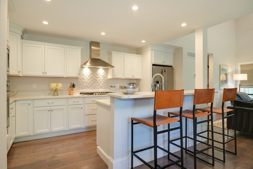 This beautifully designed residence at Alder Point offers 2,500± SF of light-filled living space across three levels, with 2+ bedrooms and 2.5 baths overlooking scenic Flushing Pond.The gourmet kitchen has quartz counters, stainless steel appliances—including a multi-burner cooktop, wall oven, microwave, dishwasher and counter-depth refrigerator and flows seamlessly into a vaulted family room with a gas fireplace. Sliding doors open to the low-maintenance composite deck where you can relax and take in the long water views.Hardwood floors enhance the first and second levels. The primary suite features a vaulted ceiling, walk-in closet, and spa-like tiled shower.A finished walk-out lower level offers flexible space for a home gym, office or guest suite with direct access to a brick patio on the water’s edge. Extra conveniences include pull-down attic storage, 2 car garage and spacious utility room. This small complex offers a dock for owner's use, peaceful surroundings and is a must see!