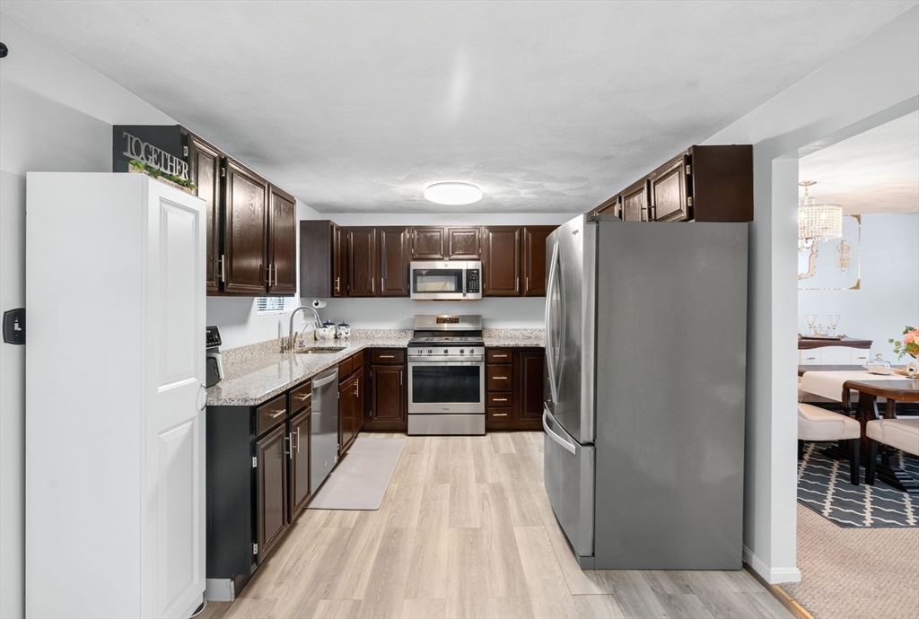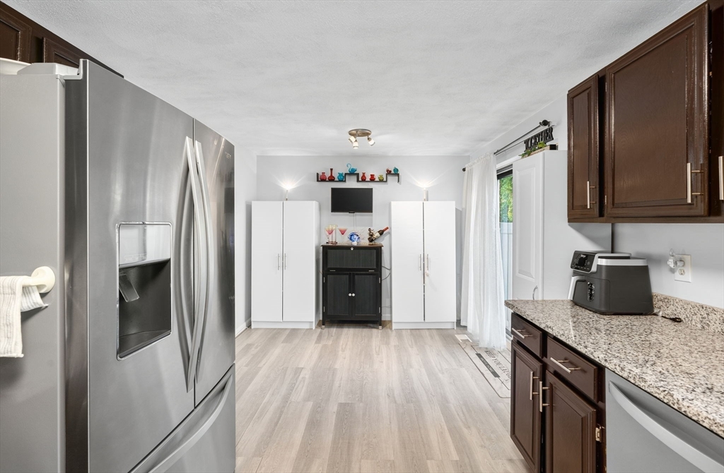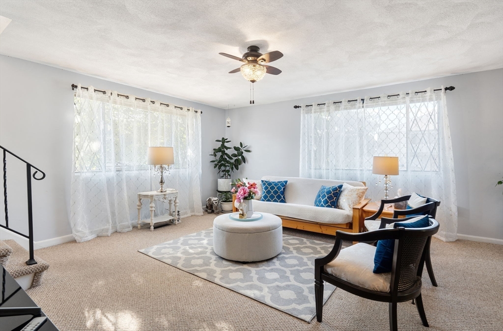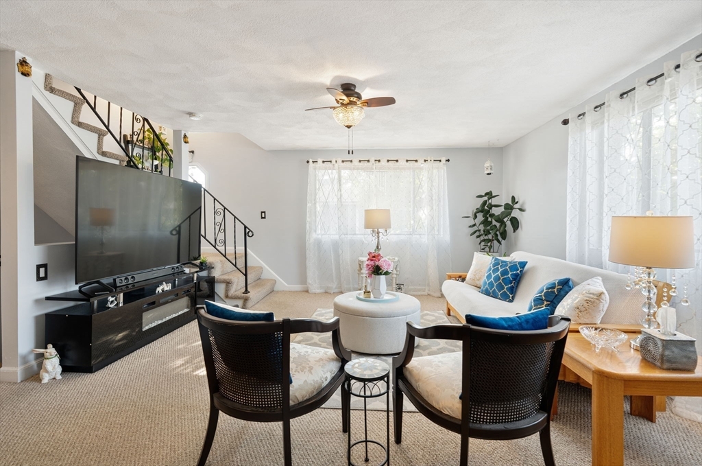 If you're in the market to buy a condo... It should be an end-unit. This spacious & rare end-unit 3-bedroom, three-level condo in the Farrwood Dr. community on the Bradford side of Haverhill is move-in ready and in excellent condition. Natural light fills the open floor plan, featuring an eat-in kitchen with stainless steel appliances, dining & living areas, and modern light fixtures. All 3 bedrooms are on the second level with ample closet space, including a large walk-in closet, and a shared bathroom. The finished lower level offers flexible living space ideas, a ¾ bath, and a gas fireplace. Laundry in-unit & additional storage is available in the attic. The oversized private patio is perfect for relaxing or entertaining. With a low condo fee and 2 side-by-side parking spaces, this unit is a must-see. Located minutes from I-495, the North Andover line, and the commuter rail. Updates in the last 5 years include painting, LVP flooring, and more. See it quickly before it's gone.