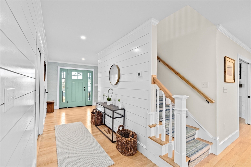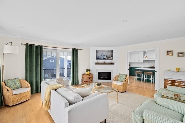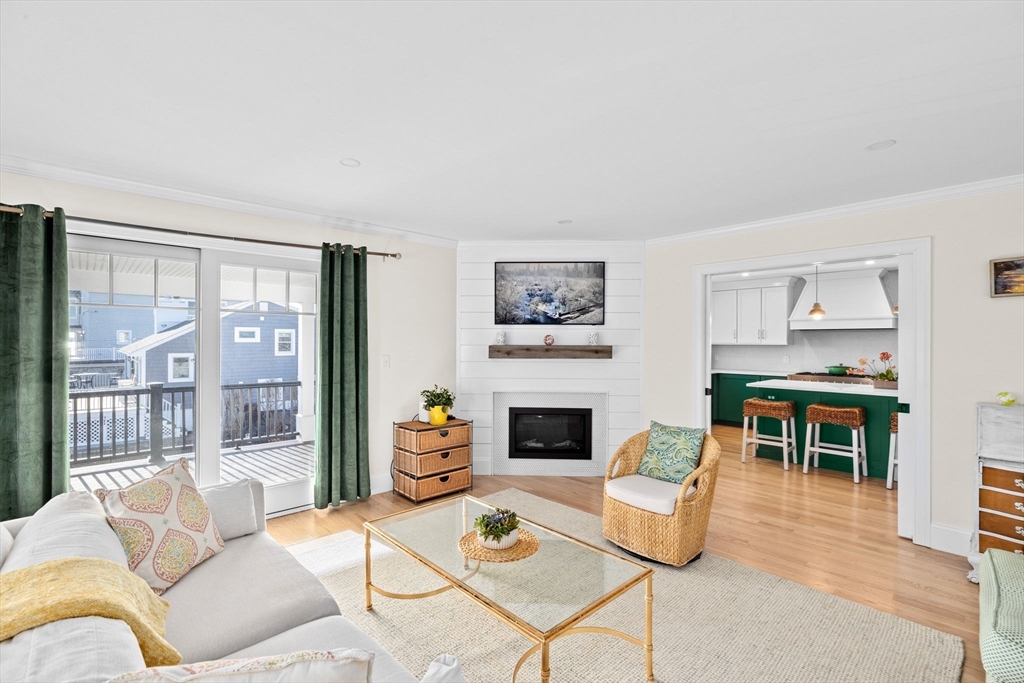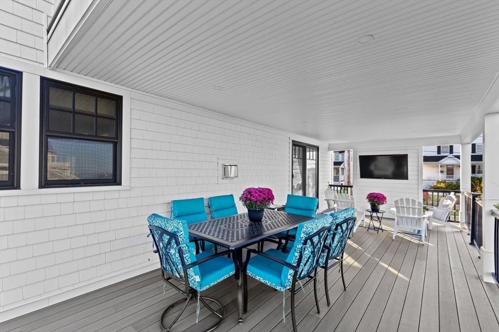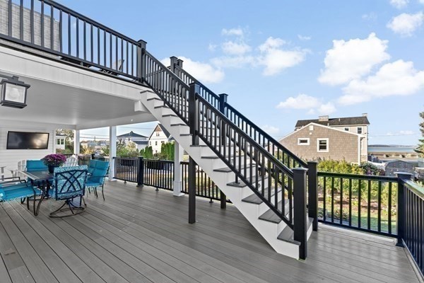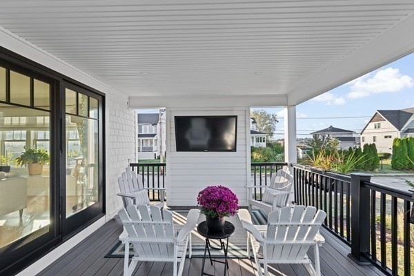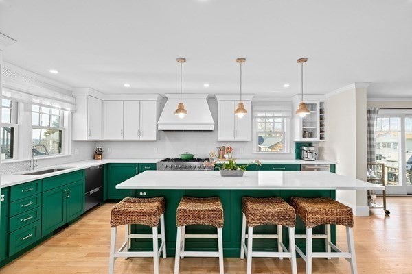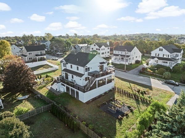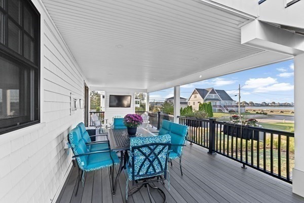 Glorious water views abound from this custom-built, shingle style home perfectly situated in a sought-after coastal neighborhood. Step inside to discover stunning craftsmanship and architectural detail throughout. The bright and airy first floor features an open floor plan with a magnificent chef's kitchen with high end finishes, gorgeous cabinetry, and oversized island opening to a generous dining room overlooking the wrap around deck. Enjoy water views from the sun-filled, fireplaced living room which flows seamlessly outdoors to the spacious deck with beautiful bay views. A comfortable family room, with office space completes the first floor. The second floor hosts the primary suite with double walk-in closets and ensuite bath with elegant soaking tub and tiled shower. Sliders open to the large deck, perfect for enjoying sunsets over the water. Two additional bedrooms, family bath, and laundry complete the upstairs. 500 feet to a coveted bay beach for swimming and kayaking.