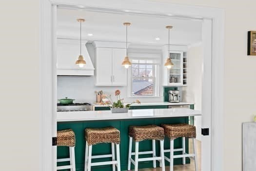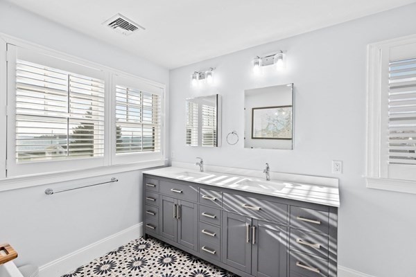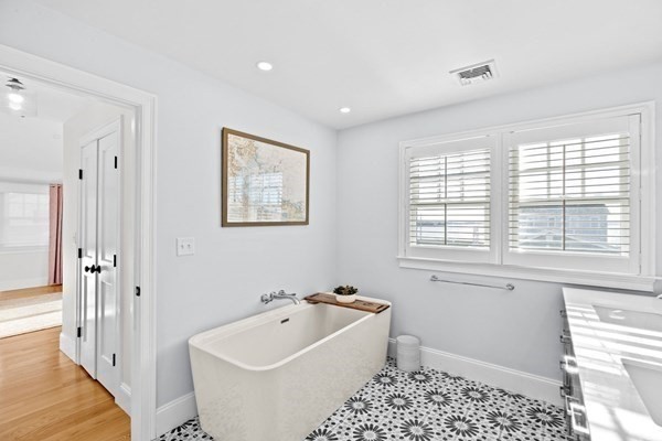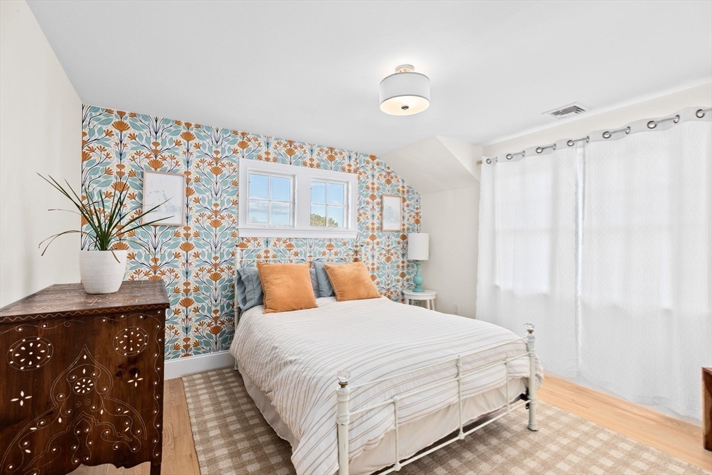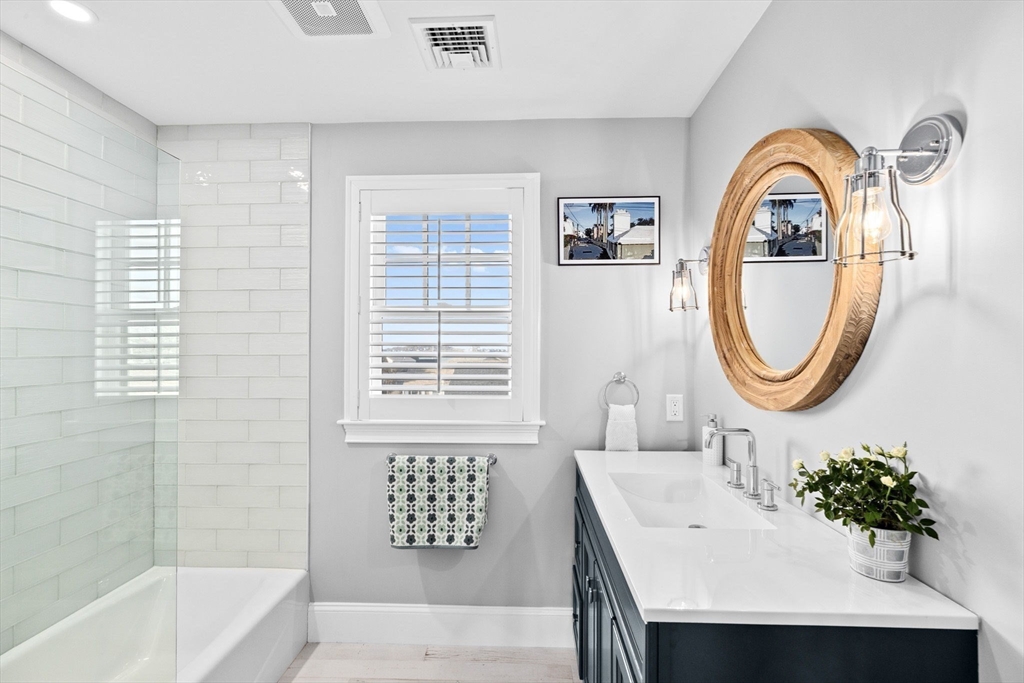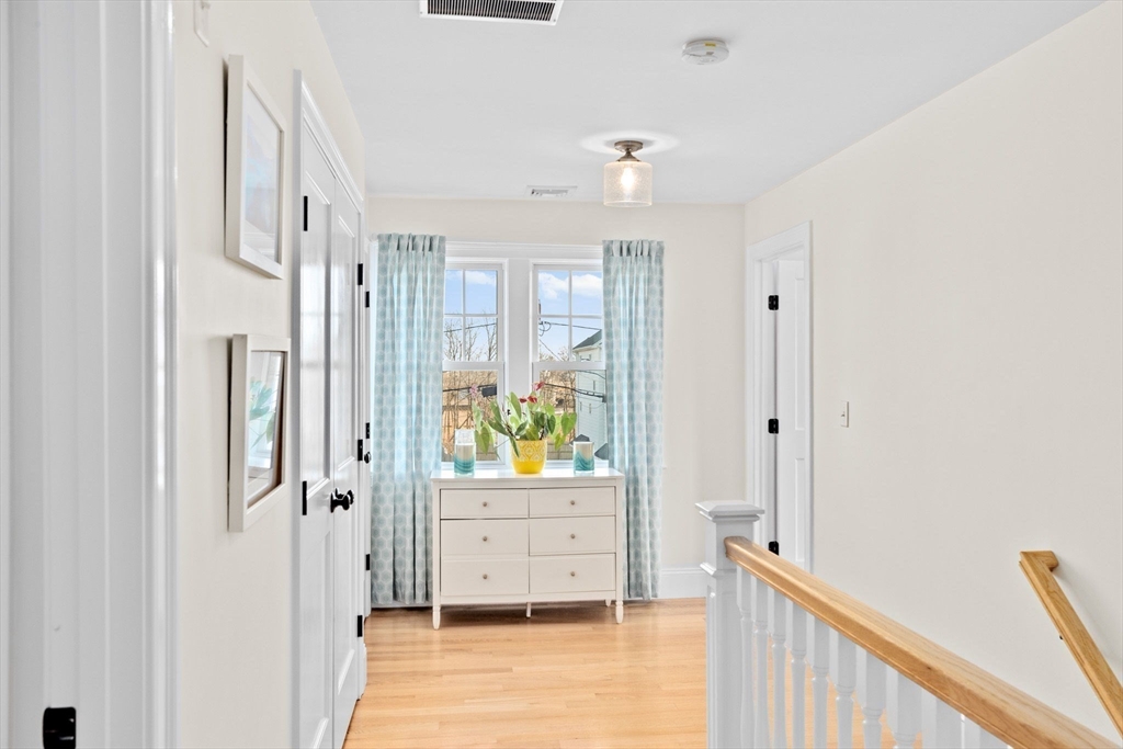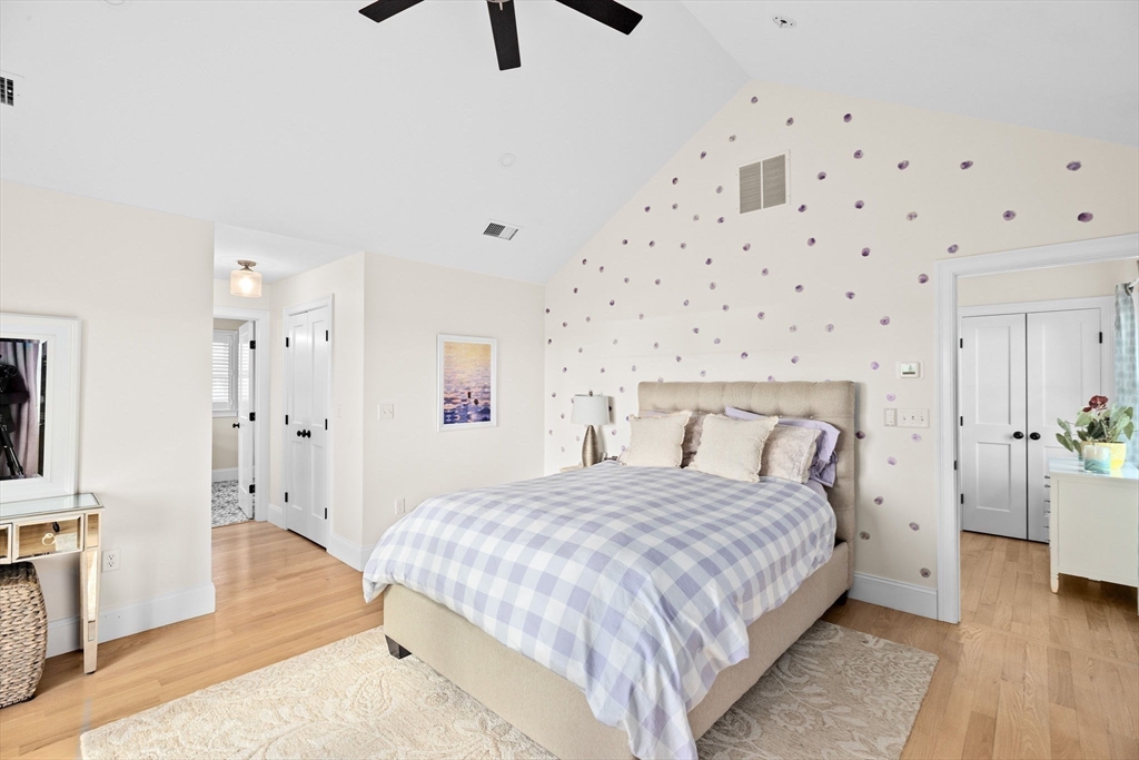 Glorious water views abound from this custom-built, shingle style home perfectly situated in a sought-after coastal neighborhood. Step inside to discover stunning craftsmanship and architectural detail throughout. The bright and airy first floor features an open floor plan with a magnificent chef's kitchen with high end finishes, gorgeous cabinetry, and oversized island opening to a generous dining room overlooking the wrap around deck. Enjoy water views from the sun-filled, fireplaced living room which flows seamlessly outdoors to the spacious deck with beautiful bay views. A comfortable family room, with office space completes the first floor. The second floor hosts the primary suite with double walk-in closets and ensuite bath with elegant soaking tub and tiled shower. Sliders open to the large deck, perfect for enjoying sunsets over the water. Two additional bedrooms, family bath, and laundry complete the upstairs. 500 feet to a coveted bay beach for swimming and kayaking.