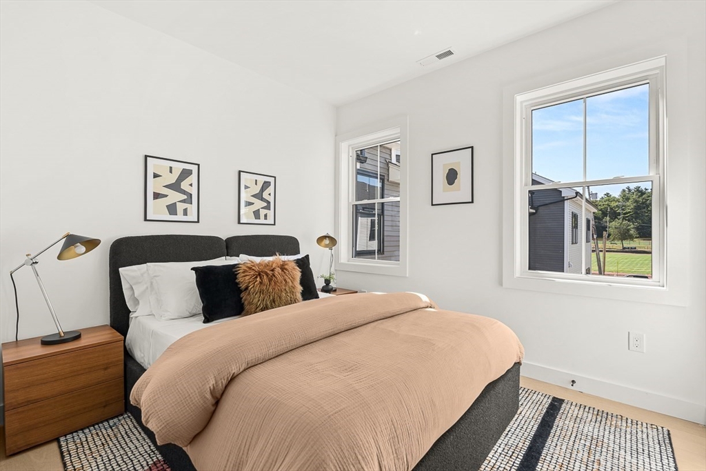 Introducing a stunning front, south-facing new-construction townhome by the esteemed TreeTop Group, offering 6 bedrooms and 4 full baths across a refined four-level layout. The open-concept main level impresses with soaring ceilings and a chef’s kitchen featuring a large center island with waterfall quartz countertops, premium stainless steel appliances, and abundant cabinet storage. Overlooking the main living space, the second floor offers 4 spacious bedrooms, 2 full baths, laundry, and oversized windows that fill the home with natural light. The primary suite showcases a custom walk-in closet and spa-like bath with soaking tub and tiled walk-in shower. A finished third floor provides a flexible retreat, while the fully finished basement includes a recreation room, full bath, and guest bedroom. Outdoor living shines with a private, fenced side yard, and the heated two-car garage with 14 feet high ceilings. Ideally located across from Sylvan St. Park and minutes from Oak Grove.