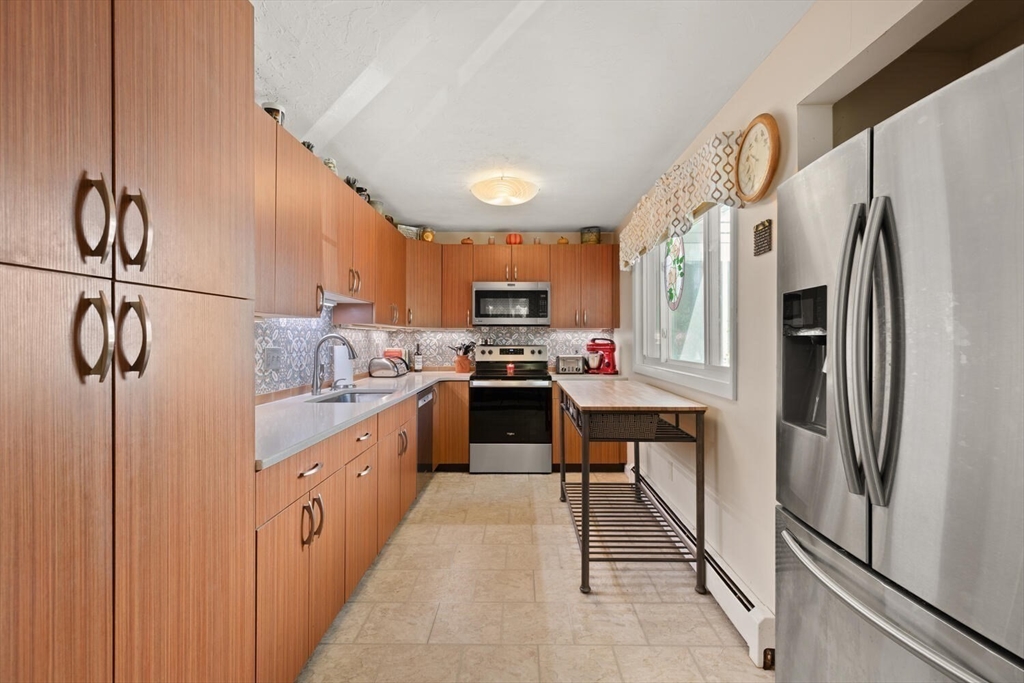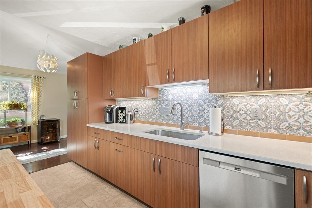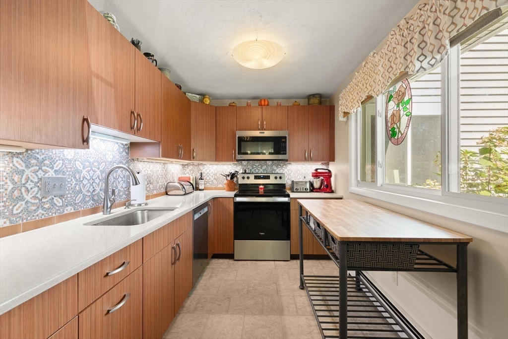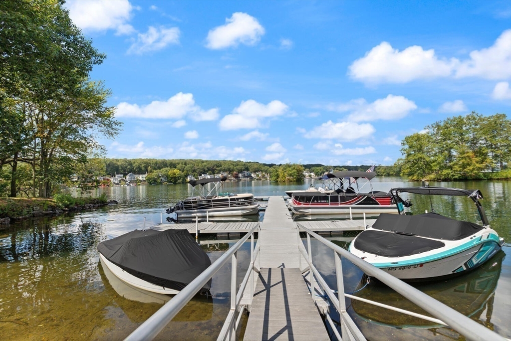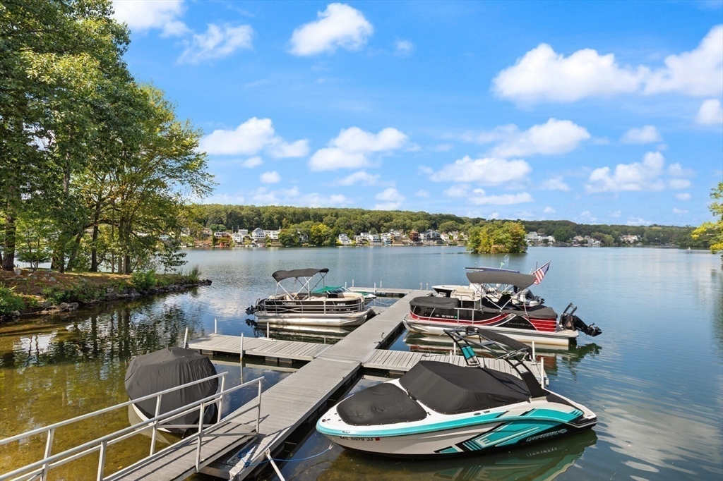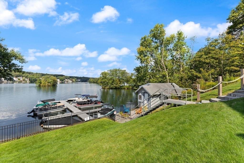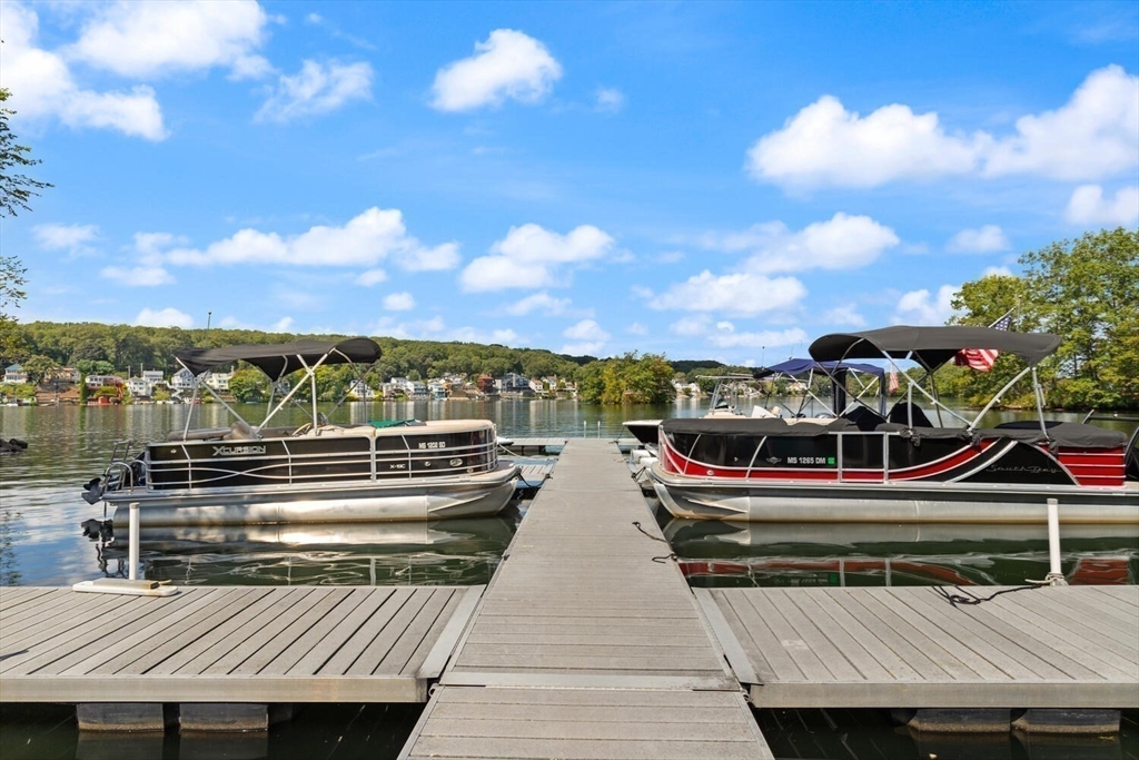 Hidden Gem on Lake Quinsigamond !! Discover this Stunning 3 bedroom 2 Bath Contemp Duplex nestled in a private 12-unit complex in South Cove Village. With its open-concept layout and single-family feel, this Townhouse offers both Comfort and Versatility. Updated Kitchen features abundant Cabinetry, Silestone countertops, a Striking Mosaic Backsplash, Newer Appliances, and a picture window with park views .Cathedral-Ceiling Living/Dining Room with Sliders to Deck overlooking beautiful 3 acre grounds. Primary Suite has double closets with organizers and updated bathroom The Main Level includes two large bedrooms ( Master Potential) and a full bathroom. Lower Level has ample storage and a finished room ideal for office/playroom. Updates and Improvements include 2022 Windows( Except garage) 2023 Boiler and Water Heater,3 Mini Splits, Mahogany Front Landing and Paver Side Walkway. Short Walk to The Lake, Dock, Boat Slips and Small Clubhouse (all included in the low fees). Well Managed Assoc