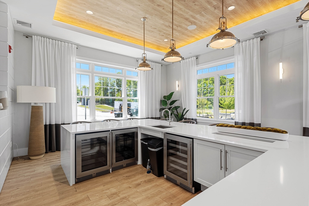 Fabulous custom END UNIT in the coveted "Seaside at Scituate" community! A soaring 2 story foyer and elegant turned staircase provides a dramatic entrance to this spacious, sun-filled, open floor plan home. Enjoy a high end kitchen w/large island, Thermador stove & DW, walk in pantry and sunny breakfast room (a significant upgrade to this floor plan). A separate office w/custom built ins offers a quiet place to work from home and the first floor primary suite is a lovely retreat with a stunning bathroom and 2 walk-in "California" closets. Upstairs there's an open balcony which flows to a large family room and a generous sized second bedroom w/bathroom. The garage has a "Swisstrax" tiled floor and SS sink. Don't miss the Mudroom w/cubbies and whole house generator. The lower level offers great opportunity for more living space w/some nice natural light. RESIDENTS enjoy an upscale Clubhouse, heated outdoor swimming pool w/spectacular water views, a pickle-ball court and so much more!