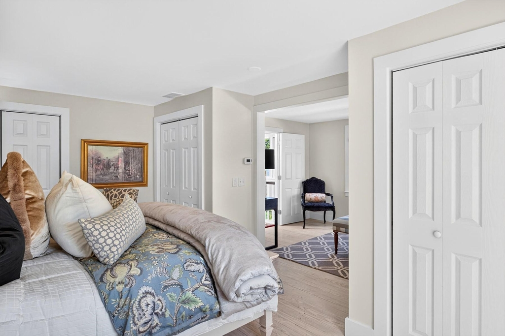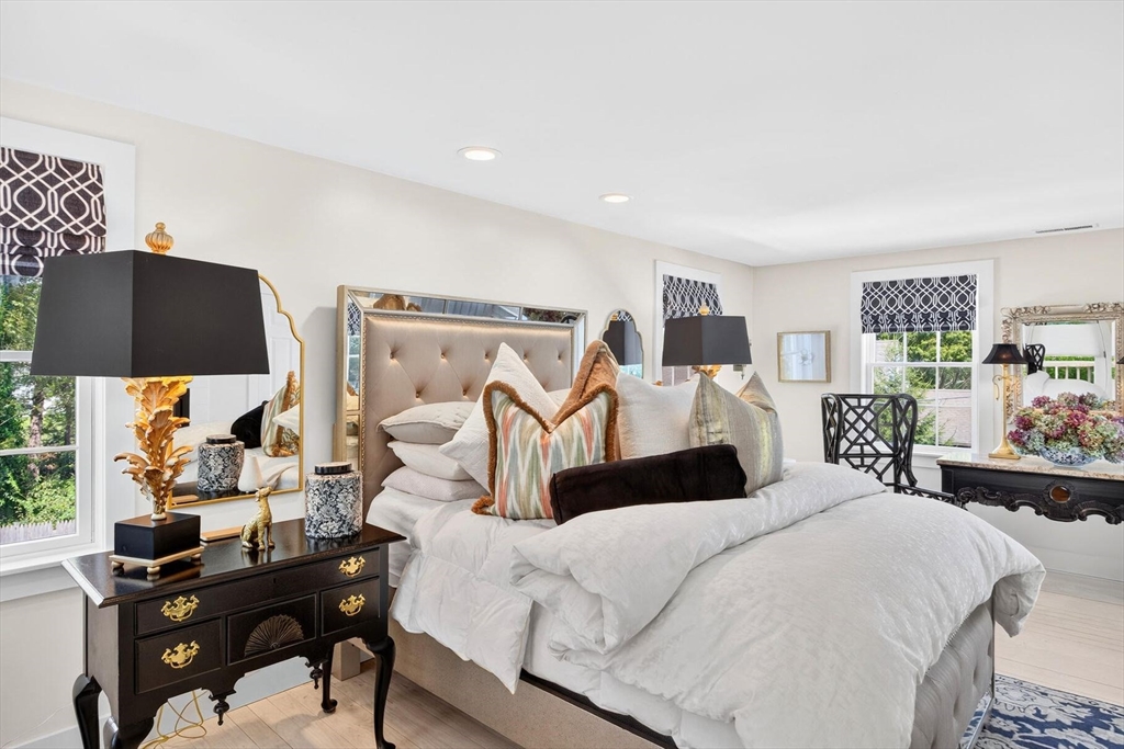 Coastal charm meets timeless elegance at 15 Sylvan Way, tucked on a private lane near beaches, the rail trail, and local dining. This beautifully maintained Colonial is filled with an abundance of natural light from full-length Andersen windows. The open layout features a welcoming living/dining area and a stunning kitchen with high-end appliances, and adjoining mudroom with full bath. Upstairs, the primary suite offers a gas fireplace, ample closets, and a private deck for morning coffee. Two additional bedrooms with generous storage complete the second floor, all with whitewashed wood floors that brighten every room. A rooftop deck invites sun-soaked afternoons and al fresco dining, while French doors lead to a spacious mahogany deck with built-in seating and outdoor shower in the private backyard. With plenty of parking for family and guests, this home blends sophistication with the easy comfort of coastal living.