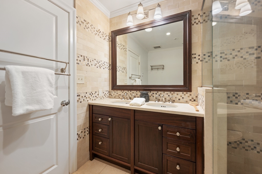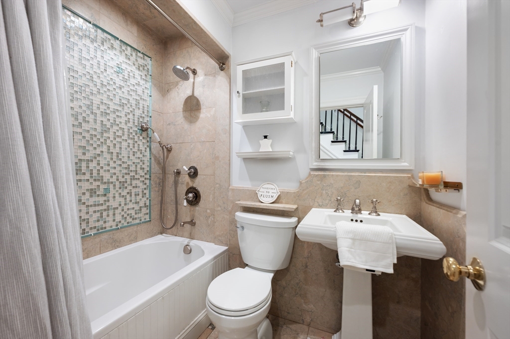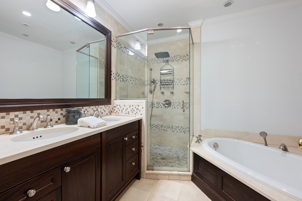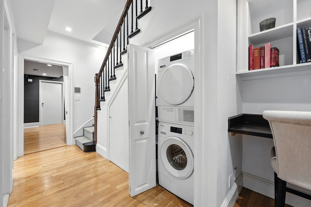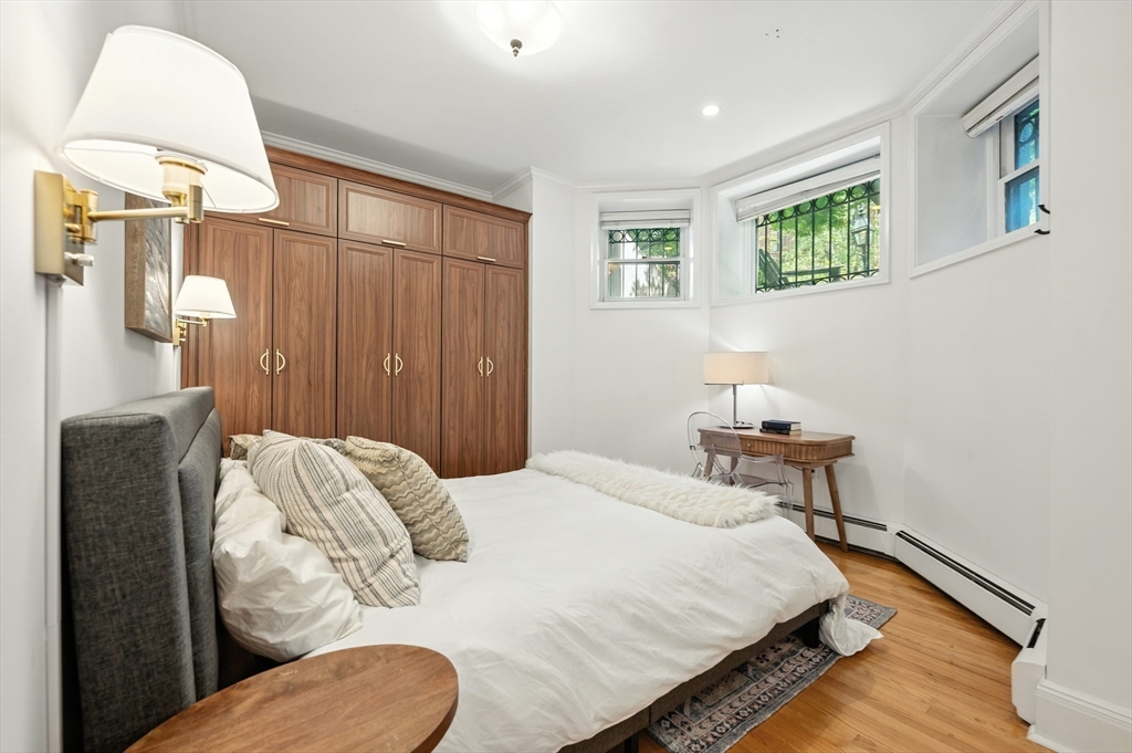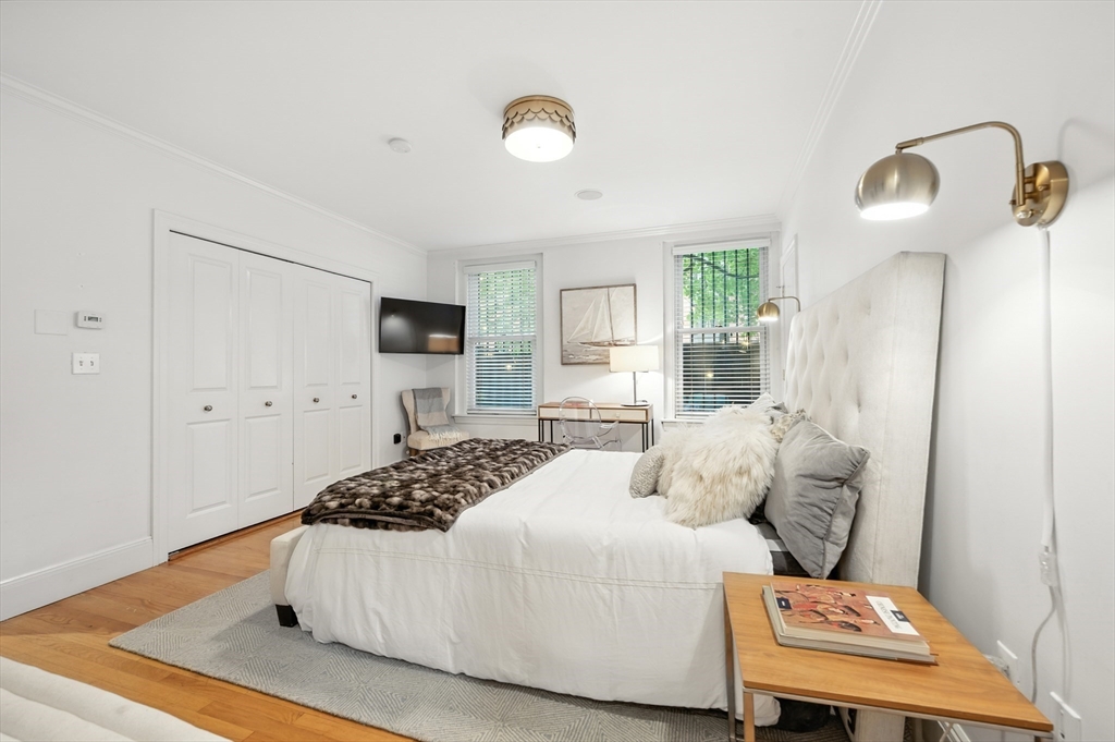 Gracious contemporary living with leafy streetscape views through oversized bay windows, lofty ceilings and direct entry parking all on a treasured Back Bay street. Front to back fireplaced living and dining spaces with crown moldings, thoughtful built-ins and hardwood floors throughout. Wonderful Chef's kitchen with lots of storage, mahogany topped counters and island, Viking 6-burner stove and premium stainless appliances. Lower level features primary suite with 4-piece bath and 3 custom closets, an expansive 2nd bedroom plus 3rd bedroom/bonus and thoughtful built-outs for laundry and mudroom with desk+storage. Rear walk-out to assigned tandem parking. Marlborough St is a favorite tree-lined stroll in the heart of the dining/shopping experience of Newbury St. + Copley Sq. and outdoor pursuits of the Commonwealth Mall, Boston Common, Public Garden & Charles River Esplanade. Easy commutes along 93, Storrow Dr, Logan Airport + public transit lines. Best of Boston at your doorstep!
