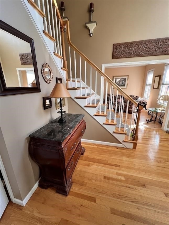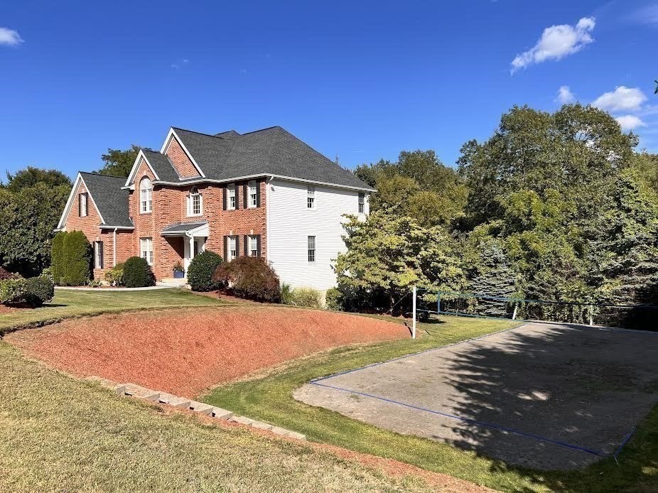 Stately brick-front custom Colonial in Marlborough's prestigious east side neighborhood on over 2 acres awaits you!Newly paved driveway & new front stone walkway & granite step.Grand two story foyer leads you to a windowed office w/hardwood flrs,a nook for a grandfather clock or special cabinetry.Enter the inviting cabinet packed kitchen w/pantry,SS appliances,new range.large island w/brkfast bar & gleaming granite countertops open to family room,lovely brick faced fireplace w/mantel, paddle fan, sliding glass doors to exterior deck w/pergola overlooking wooded private rear yard. Formal dining room w/hdwds,wainscoting, chair rail & chandelier. Formal living rm w/hdwds.Master suite w/new hardwood floors,coffered ceiling w/paddle fan,adjoining sitting area! The luxurious bathroom features a double sink,granite top, jacuzzi tub & a walk in closet.Huge walk out bsmt.w/sound proof rm (for guitar/drum playing).Side yard set up for huge Vollyball area.New garage floor finish.Too much to list!