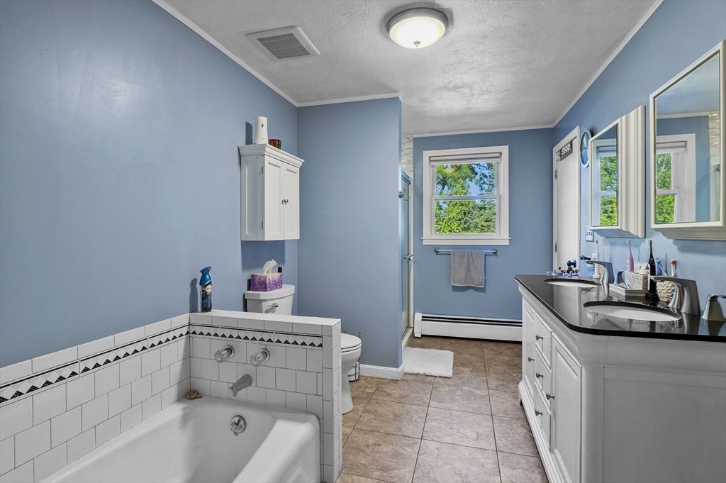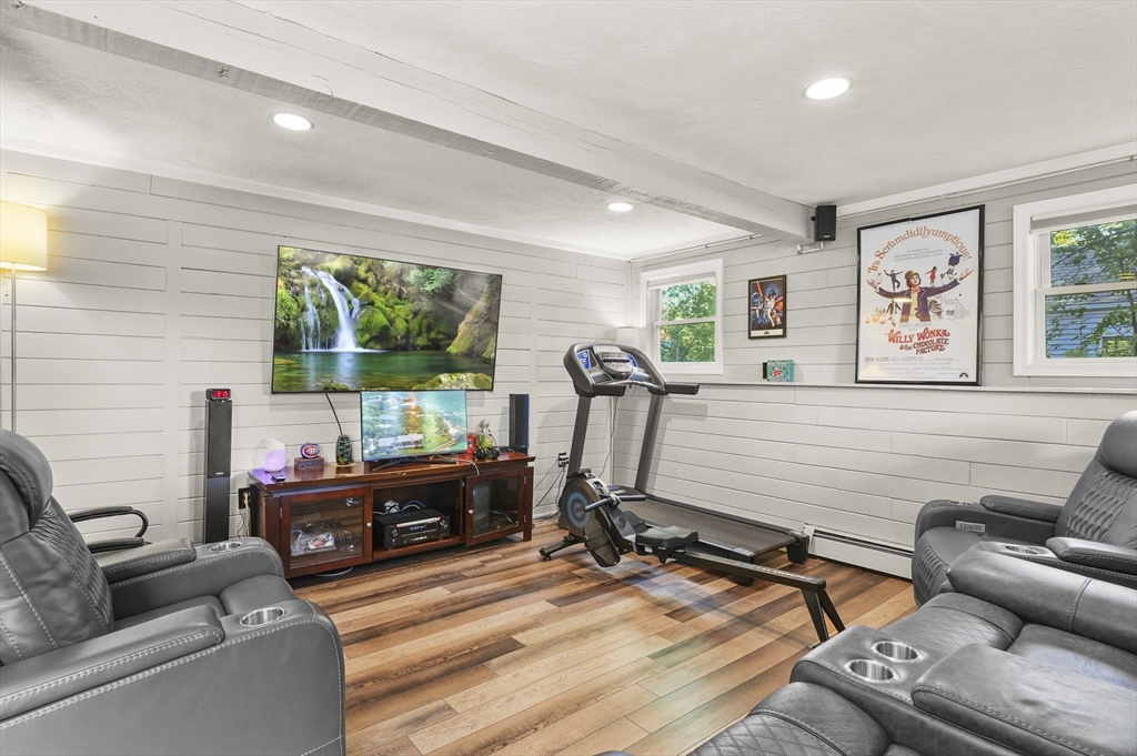 Welcome to this beautiful 4-bedroom split-level home filled with charm and modern updates. The main level offers a stylish kitchen with stainless steel appliances, granite countertops, island with breakfast bar, tile backsplash, and sliders to a spacious back deck. Enjoy meals in the dining area and relax in the living room with hardwood floors, a large picture window, and cozy wood fireplace. A full bath with dual vanity, tub, and shower plus three comfortable bedrooms complete this floor. The finished basement adds even more living space with a bedroom, bonus room, half bath with laundry hookups, and plenty of storage. Outside, you’ll love the fenced backyard with a deck, patio, and storage shed. Solar panels help keep energy costs down, while double entry doors, a paved driveway for 6 cars, and a one-car garage add curb appeal and convenience.