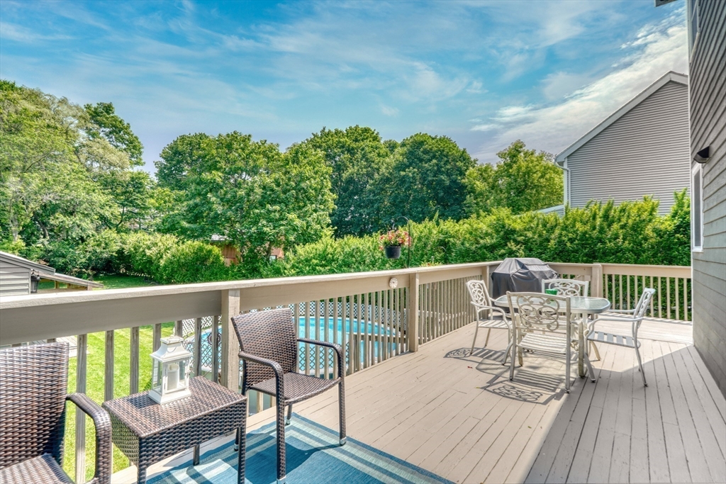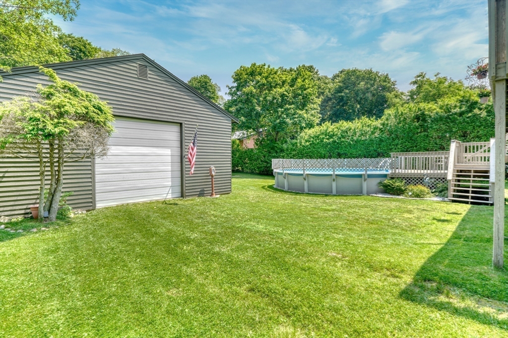 A rare find in Melrose...Built in 1980, this beautifully maintained, updated 1 owner 7 rm Colonial sits on a expansive lot offering a unique blend of outdoor living spaces & possibilities! The deck overlooks the expansive yard adorned w/matures shrubs offering nice privacy!! From the deck step down to a large above-ground pool—ideal for summer gatherings & entertaining. The property also boasts 2 driveways (8+ cars), 1 out front providing easy access to the home & a lower one leading to a 936 Sq. ft garage w/12 foot ceilings, complete w/electricity, heat & water & fun outdoor bar!...with it's generous lot size, there's potential to reimagine the space, an accessory dwelling? or other multi family purposes? (buyer do their own due diligence), Great set-up for contractors too looking for storage for their equipment & business. All of this steps to the MBTA bus and 6 miles from Boston! Feel like you are on vacation all summer right at home!