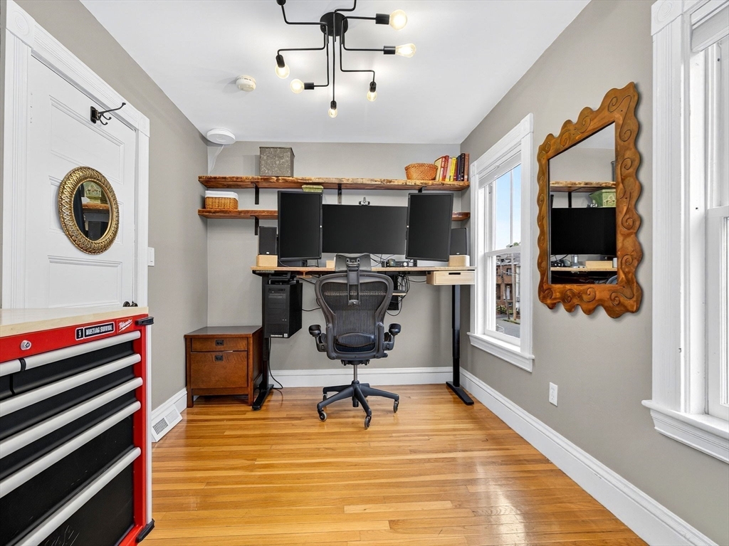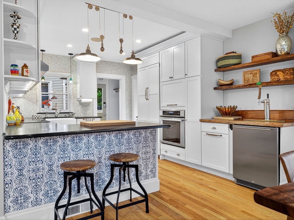 A thoughtfully renovated Craftsman home on a beautiful lot that blends timeless charm with modern upgrades. The Sellers customized a tremendous home filled with details that elevate everyday living: radiant heat flooring in every bathroom, oversized closets, in-ceiling speakers, second floor laundry space, a dedicated butler’s pantry - and so much more. And ALL systems are under 5 years old! The chef’s kitchen is the star of the home, equipped with Thermador appliances, soapstone countertops, shaker cabinetry and a reclaimed wood bar with a beverage fridge and keg tap. Upstairs, the expansive primary suite offers custom closets, a balcony, and a luxury, spa-like ensuite bathroom. Exterior highlights include a new roof, new exterior paint, an “adventurers shed,” a stone garage, and a fully fenced lush yard. With close proximity to Tufts, the Greenline MBTA, highways, restaurants, and trails, this rare, one-of-a-kind home offers its new owners an oasis with city convenience.