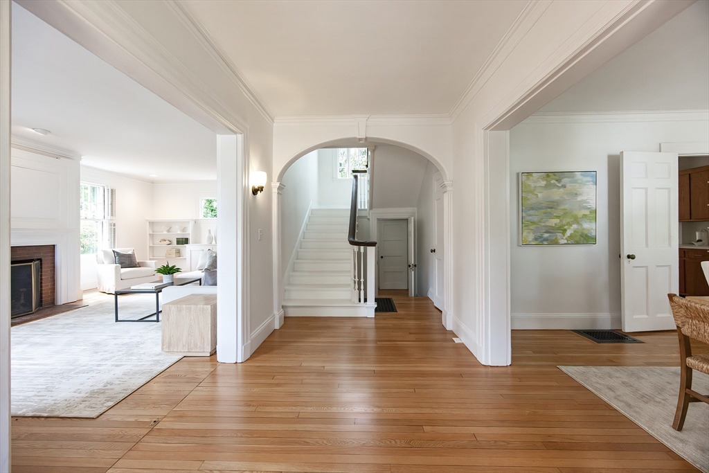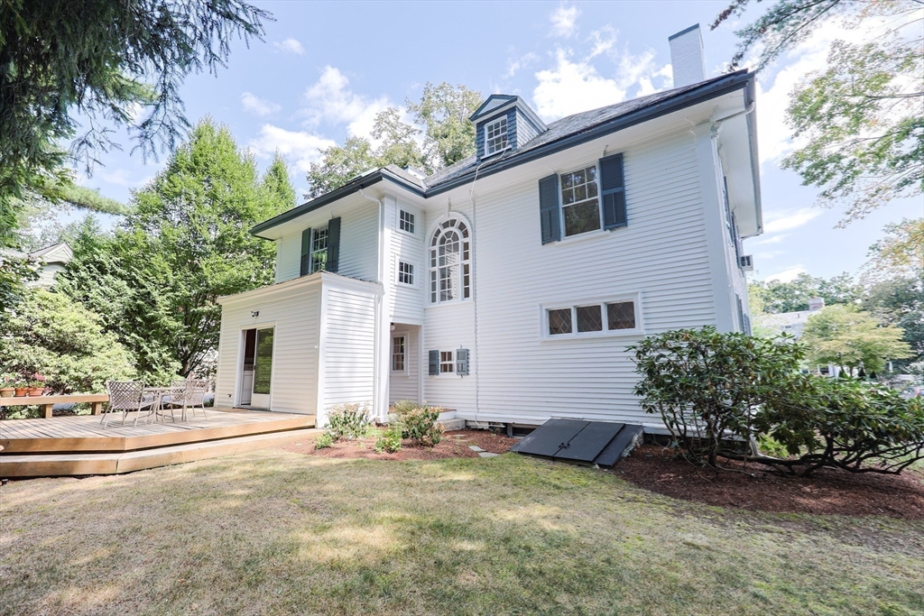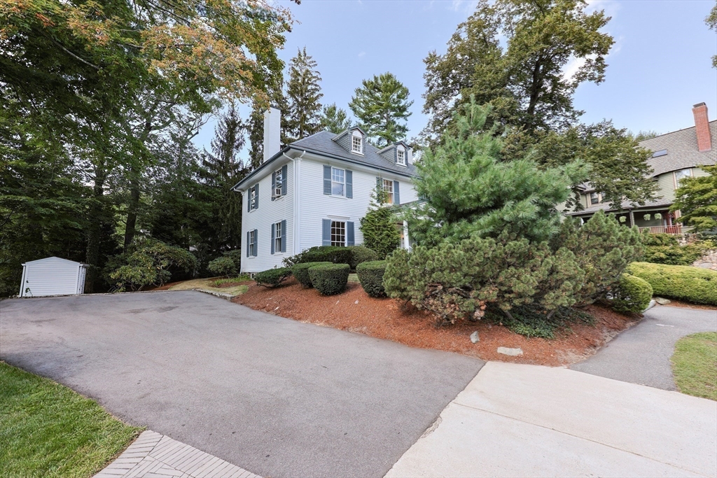 This beloved 5-bedroom home sits gracefully at the end of a tree-lined cul-de-sac ascending beautiful West Newton Hill. Enjoy easy access to nearby Newtonville with the commuter rail, restaurants and shops, NNHS and the new Cabot Elementary. The welcoming foyer opens to sun-splashed living and dining rooms, each with a fireplace, built-ins and striking diamond-pane windows in the Liv Rm. A spacious eat-in kitchen with deck access awaits your renovation vision. The main staircase is graced by an oversized Palladian window overlooking the private backyard. Upstairs offers 4 bedrooms and a family bath, with a large 5th BR and en-suite on the third floor. A finished room in the basement offers flexibility, with additional storage spaces.Updates include recent exterior painting, 200-amp electrical, and a 9-year-old furnace. Nestled among a handful of distinctive homes on Birch Hill Road, this elegant residence has served its owners beautifully for 60 years and is ready for its next chapter.