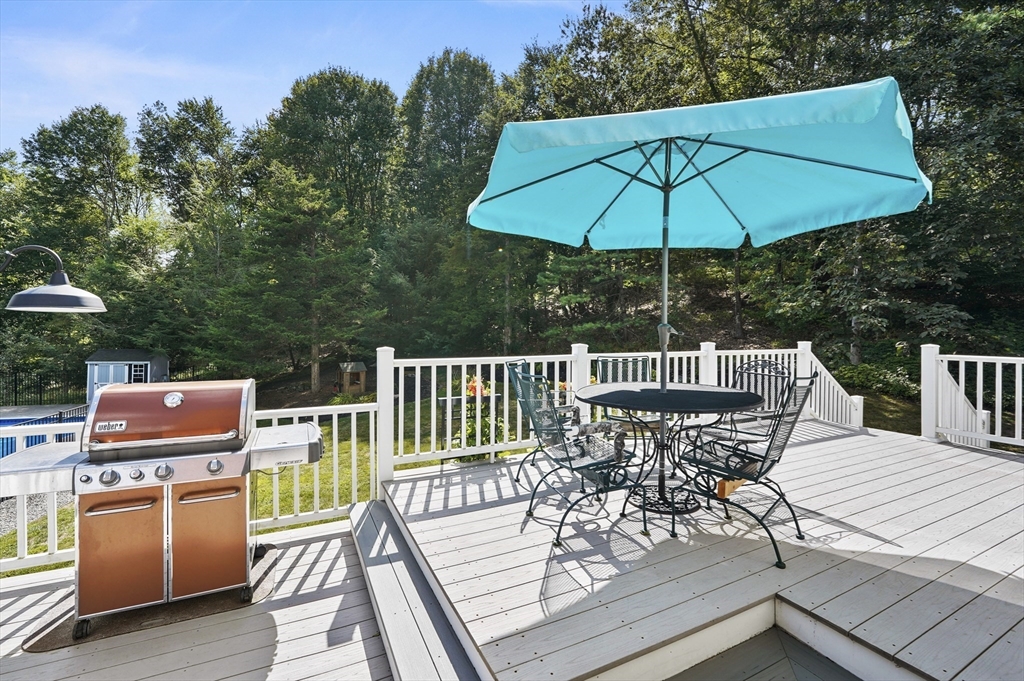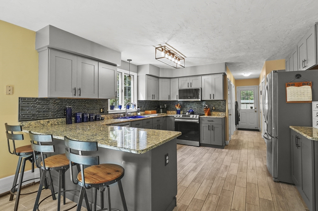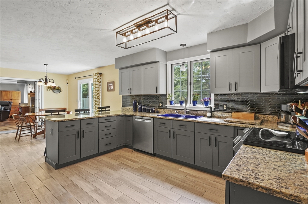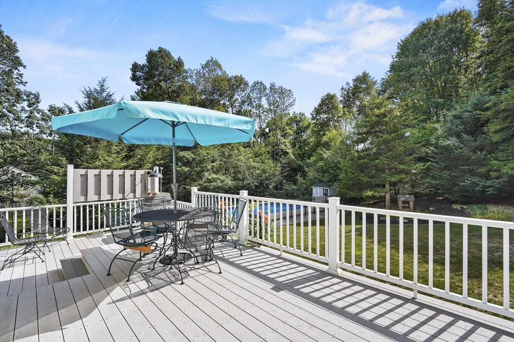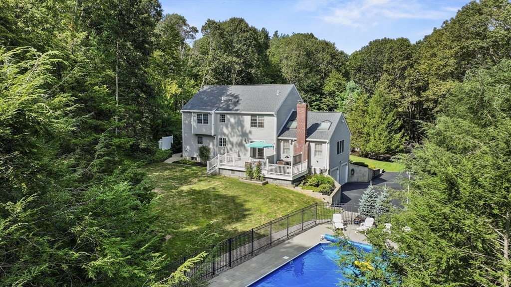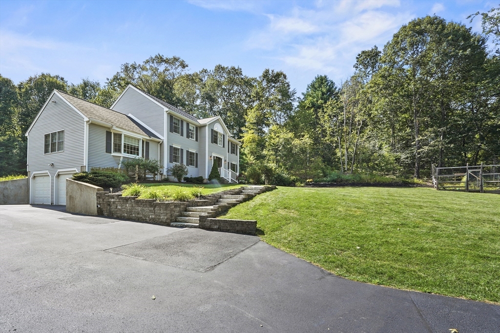 Welcome to this beautifully updated 4-bed, 2.5-bath Colonial situated on 1.85 acres in desirable Northborough! Thoughtful upgrades blend style, comfort & function throughout. Enjoy a bright, open layout featuring a stunning living room with vaulted ceilings, skylights & fireplace—accessed via French doors off the kitchen. The kitchen offers granite counters, SS appliances, a breakfast bar & eat-in area, while the formal dining room is perfect for gatherings. A home office with built-ins throughout, laundry & half bath complete the main level. Upstairs you'll find 4 bedrooms, including a vaulted-ceiling primary suite with walk-in closet & a spa-like bath with soaking tub & shower. A second full bath serves the remaining bedrooms. Additional highlights of the home include a 2-car garage, back deck & private in-ground pool. This home truly checks all the boxes! With close proximity to several local farms, you will feel as though you have your own REMOTE & SECLUDED farm retreat right here!