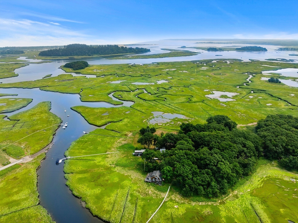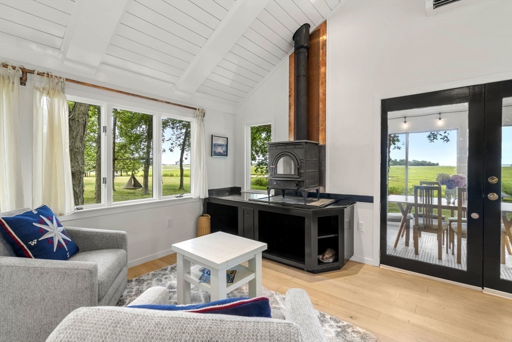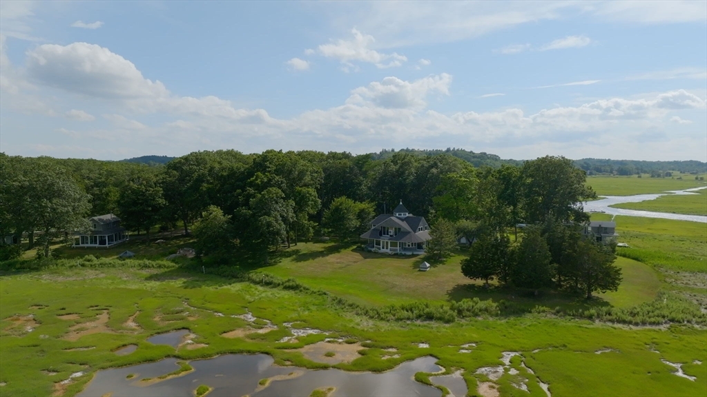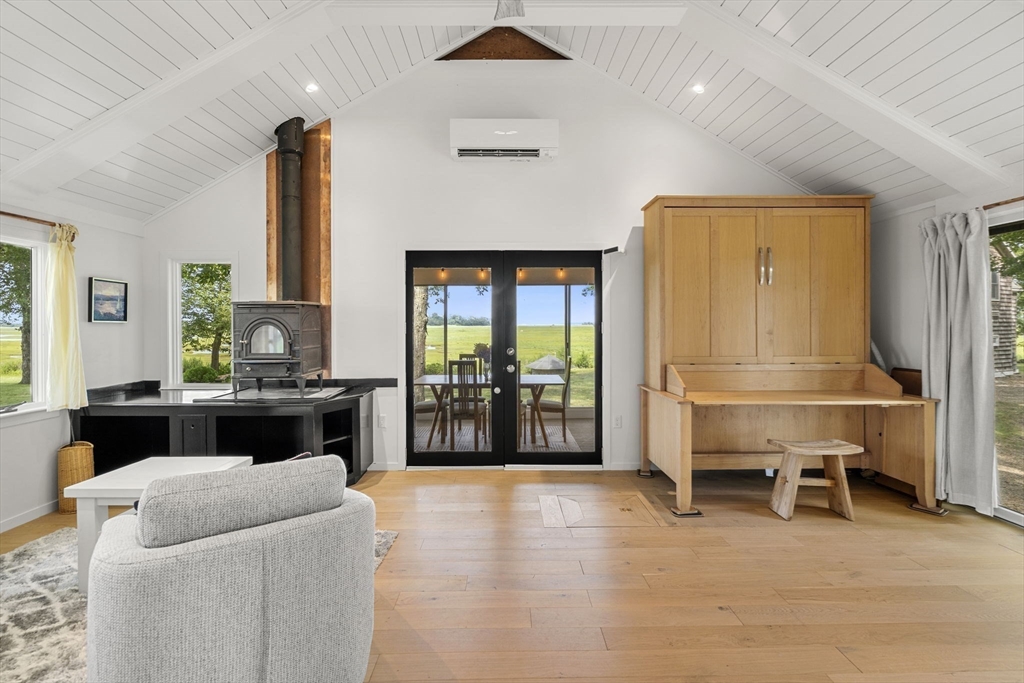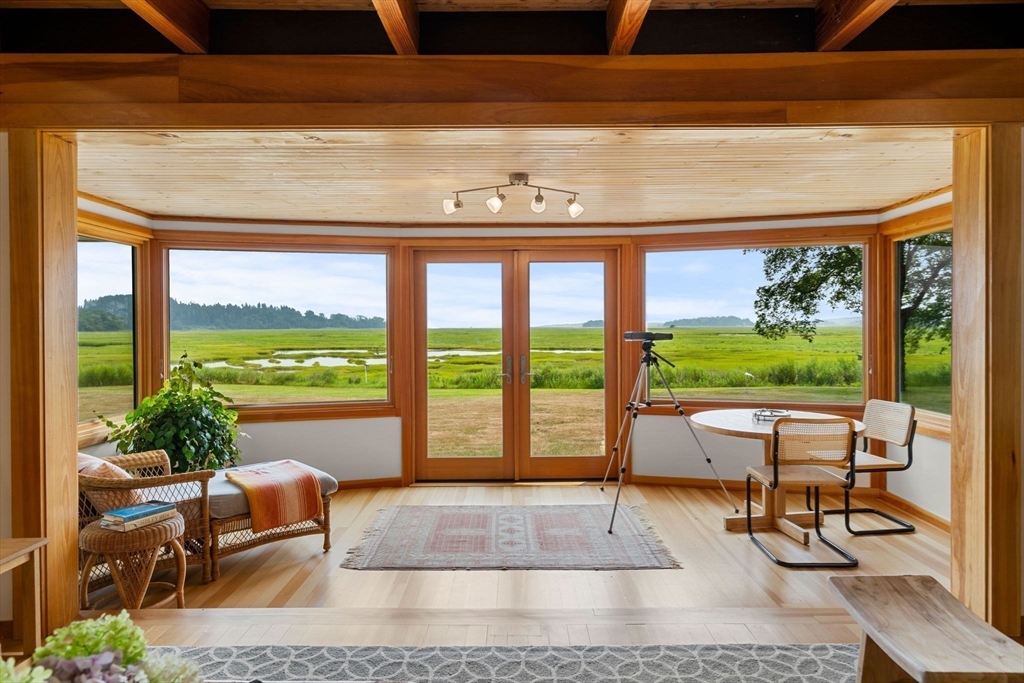 3 COTTAGE COMPOUND ON 13+ ACRES WITH PRIVATE DOCK – Complete tranquility surrounded by the “Great Marsh” of Essex, 45 minutes from Boston, comfortably accommodating 12-14 visitors. Designed by owner architect Leslie Moore, and inspired by Frank Lloyd Wright and the famous “Lawson House” of the Hamptons, the main cottage provides panoramic views to nature. This graceful shingle style home possesses floor to ceiling glass at each compass point, capturing the ever-changing light and beauty of the marsh. The main cottage is accompanied by two guest cottages: the contemporary Green Door Cottage and the more rustic Blue Door Cottage. Each cottage is equipped with modern heat pumps for exceptional indoor comfort in both summer and winter, while also enjoying the ambiance of efficient wood stoves. The traditional walkway and private dock provide access to the Essex River, Cranes Beach and Ipswich Bay, while the custom stone fire pit offers exceptional views of the marsh and night sky.