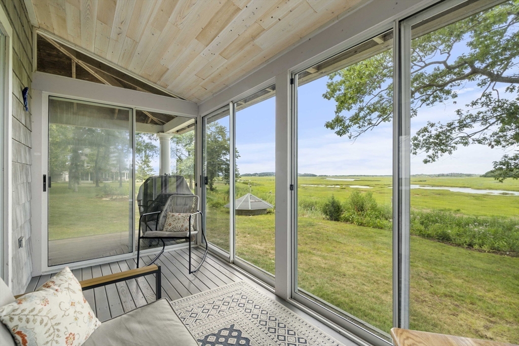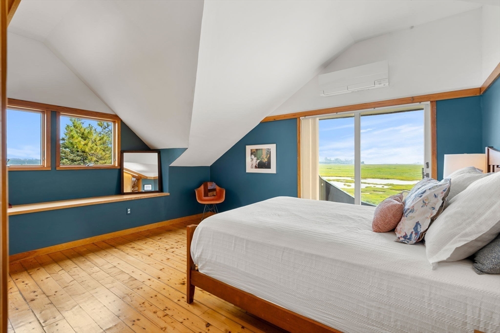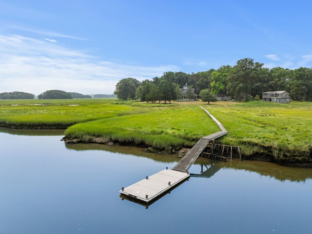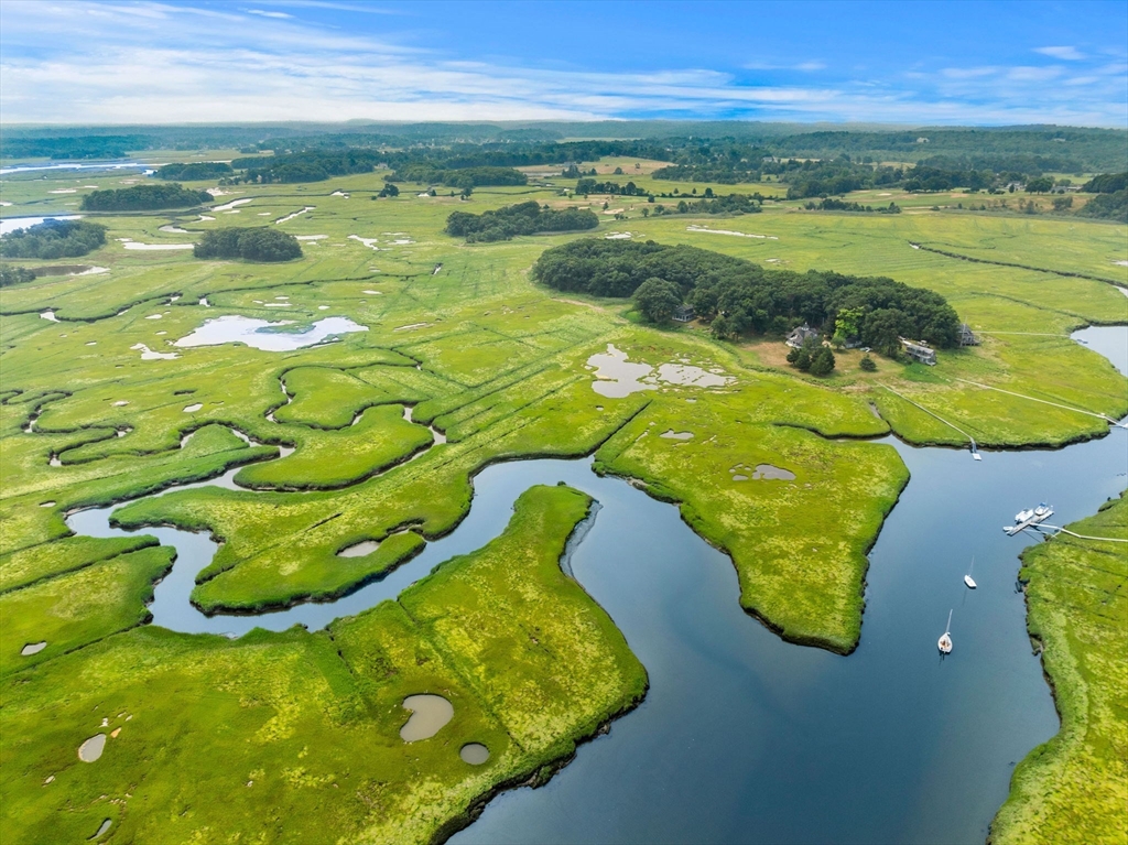 3 COTTAGE COMPOUND ON 13+ ACRES WITH PRIVATE DOCK – Complete tranquility surrounded by the “Great Marsh” of Essex, 45 minutes from Boston, comfortably accommodating 12-14 visitors. Designed by owner architect Leslie Moore, and inspired by Frank Lloyd Wright and the famous “Lawson House” of the Hamptons, the main cottage provides panoramic views to nature. This graceful shingle style home possesses floor to ceiling glass at each compass point, capturing the ever-changing light and beauty of the marsh. The main cottage is accompanied by two guest cottages: the contemporary Green Door Cottage and the more rustic Blue Door Cottage. Each cottage is equipped with modern heat pumps for exceptional indoor comfort in both summer and winter, while also enjoying the ambiance of efficient wood stoves. The traditional walkway and private dock provide access to the Essex River, Cranes Beach and Ipswich Bay, while the custom stone fire pit offers exceptional views of the marsh and night sky.