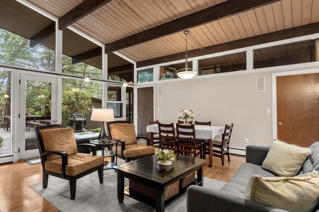 Imagine waking up each morning surrounded by the quiet rustle of trees, light streaming through walls of glass, and the sense that you’re tucked away in your own private retreat. Life at 5 Brook Trail Road feels like living in a modern treehouse—soaring ceilings and dramatic architecture frame every view of nature. Spacious and thoughtfully designed, the home flows effortlessly from room to room, with generous living areas perfect for gatherings or quiet moments of reflection. Walls of glass bring the outdoors in, and versatile spaces on multiple levels offer freedom to work, play, or simply pause, all while feeling immersed in the beauty of the landscape. Here, everyday life becomes a rare experience—friends by the fire, summer evenings on the deck, weekend mornings lingering with coffee as the seasons change. More than a house, this is a lifestyle—one-of-a-kind, inspiring, and deeply connected to its surroundings. Book a private tour today and experience it for yourself.
