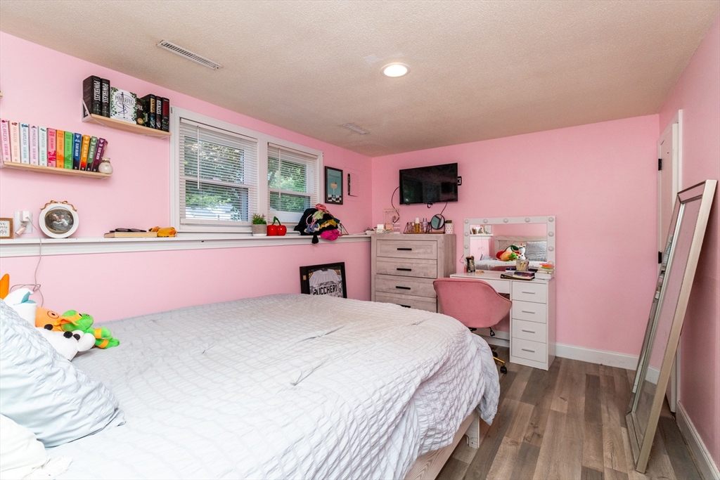 This inviting three-bedroom, two-bath home has been thoughtfully renovated throughout, offering both comfort and style. A standout feature is the newly enclosed three-season porch, complete with its own mini-split heating and cooling system, perfect for relaxing or entertaining year-round. The lower level features a newly added full bathroom, a gracious living room, a convenient laundry nook, and one of the three bedrooms, ideal for guests or a private office space. Upstairs, you’ll find an open-concept kitchen and dining area, two additional bedrooms, and a second full bath, all immersed in natural light. Additional highlights include central air conditioning, efficient gas heating, and parking for up to four vehicles. The front yard is enclosed with a brand-new vinyl fence, while the backyard offers added privacy and a scenic view, backing up to conservation land. Preliminary town-approved plans for a pool are also included, offering future potential for your outdoor oasis.