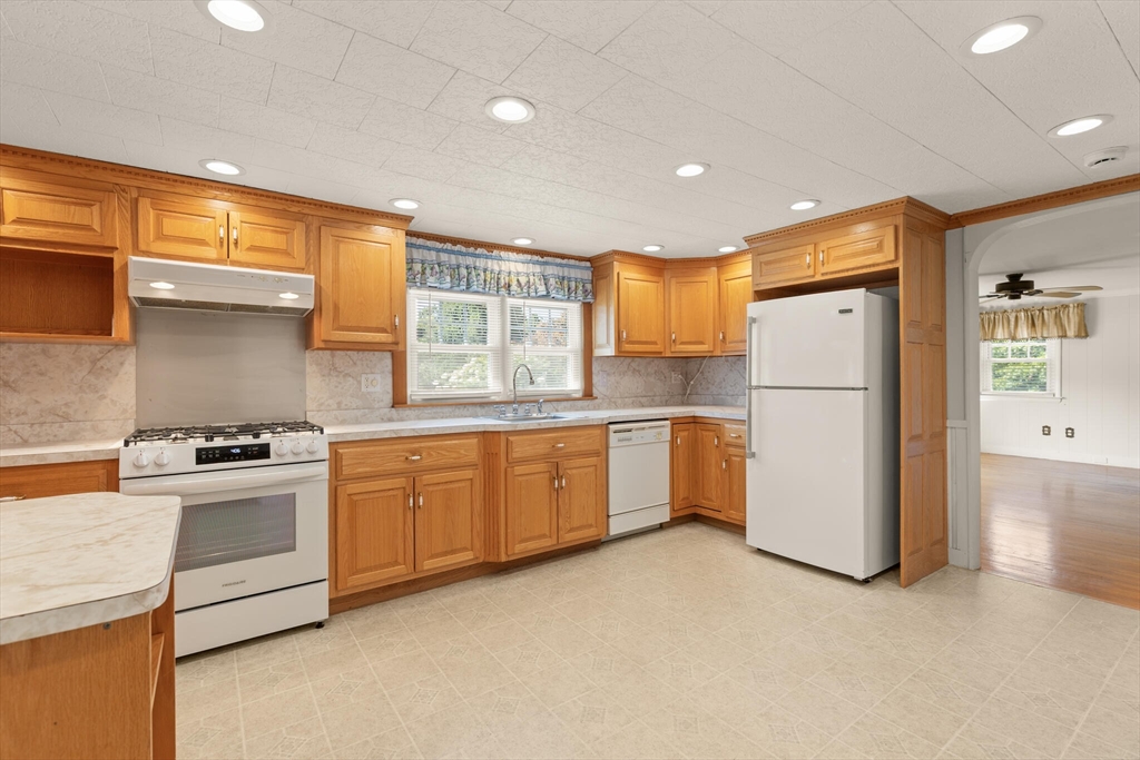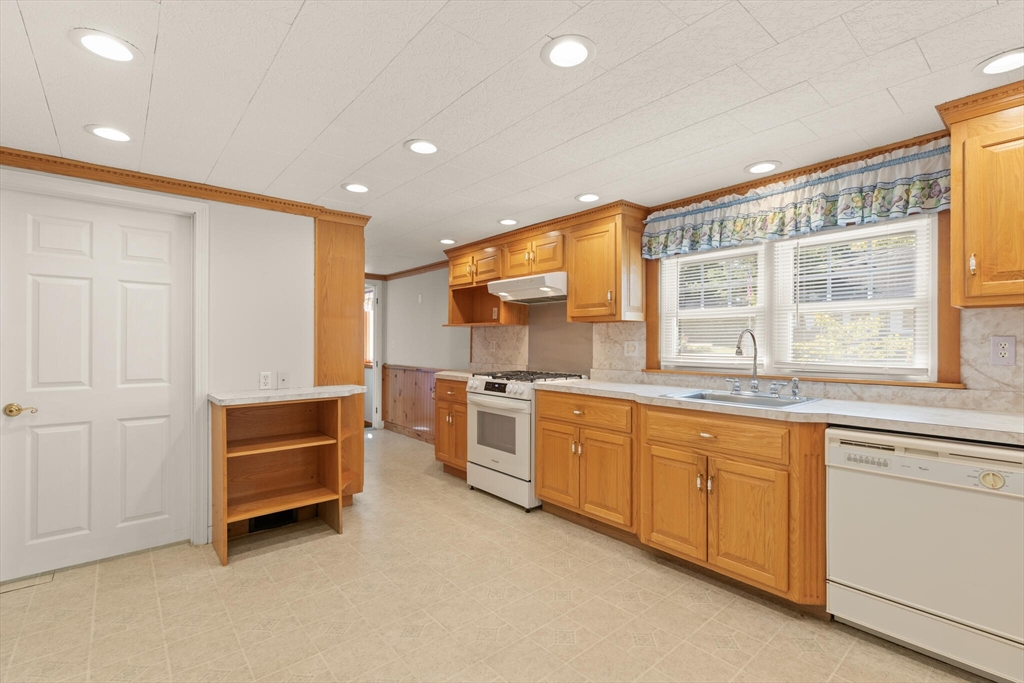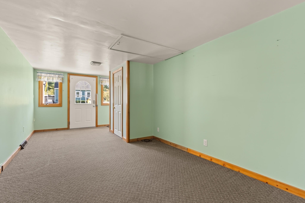 Welcome home to this charming ranch with a large backyard on a dead-end street. This property offers a unique opportunity to craft a personalized living space. The large mud room and laundry area have room to add another bathroom and places for coats and shoes. Featuring two bedrooms, a living room, and a bonus room, this home offers flexibility for family and friends. The large eat-in kitchen is a cook's dream with tons of storage and prep space. The attached garage provides additional storage and features plumbing and heating. Resting on a generous lot, the outdoor space presents a canvas for gardening, recreation, or simply enjoying the natural surroundings. Replacement windows, vinyl siding, whole house generator, and new roof round out this desirable ranch.