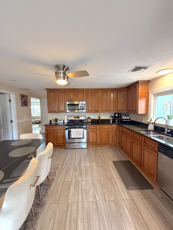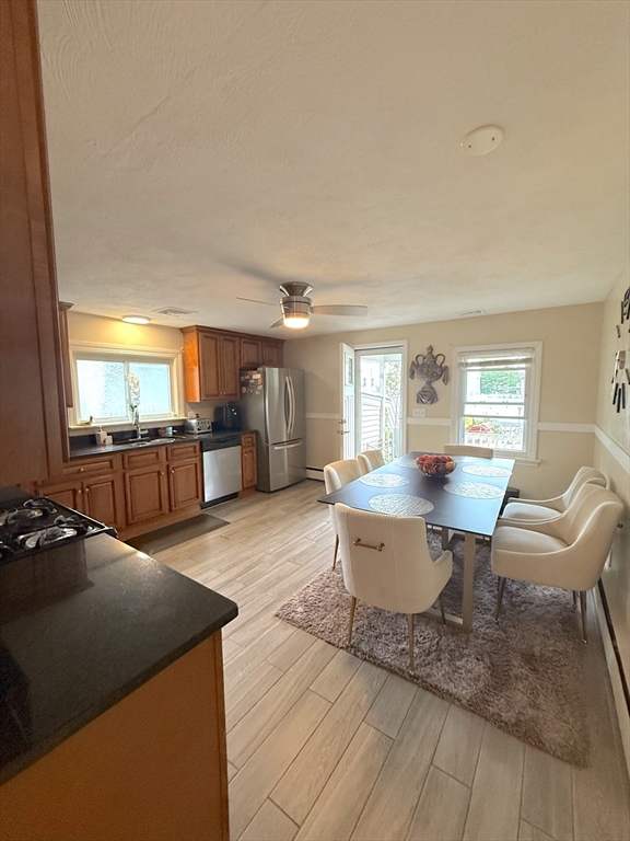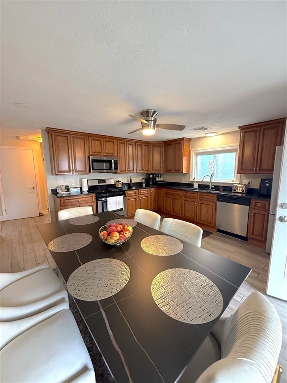 Beautifully updated 6-Bedrooms, 4-Baths colonial property with plenty of space for everyone, it's perfect for growing family or multi-generational. The property features a roof and seconf floor addition completed in 2016. The first-floor living room is warm and inviting with its charming stone chimney, modern kitchen with granite countertops, stainless steel appliances, two spacious bedrooms, updated full bathroom and a porch leading to the fenced yard. Upstairs, you will find comfortable four bedrooms with ample closet space. The master suite provides a private retreat with its own full bath, two closets, and a balcony. Additional highlights include two detached car garages, a fully insulated interior with three separate heating zones, and a finished basement with a full bath and stand-up shower-ideal for a potential in-law unit. Outside, enjoy a private fenced backyard. A prime location close to all major highways, just minutes to Boston, Logan and vibrant amenities. A rare find Home