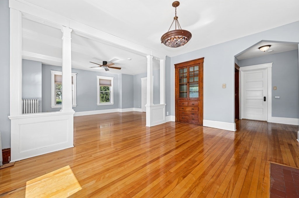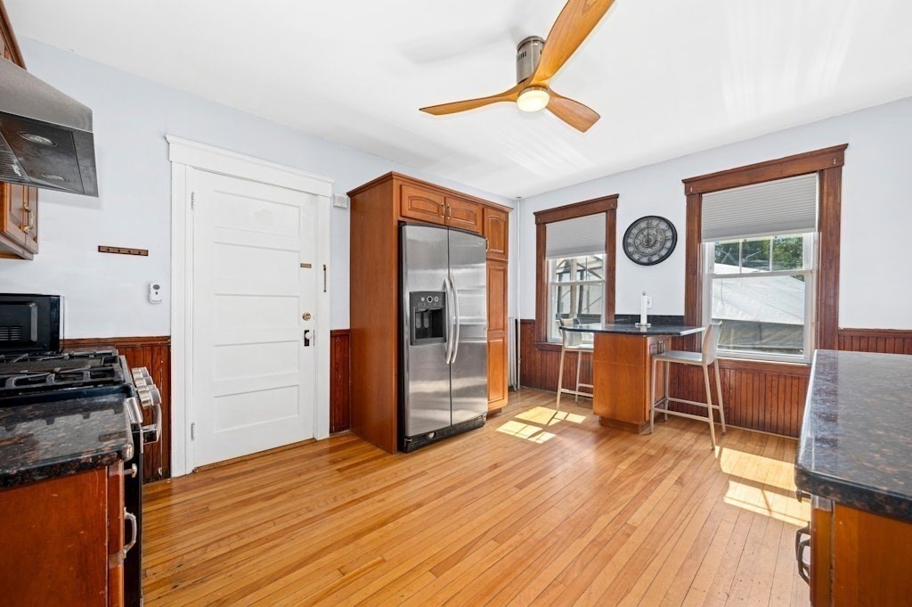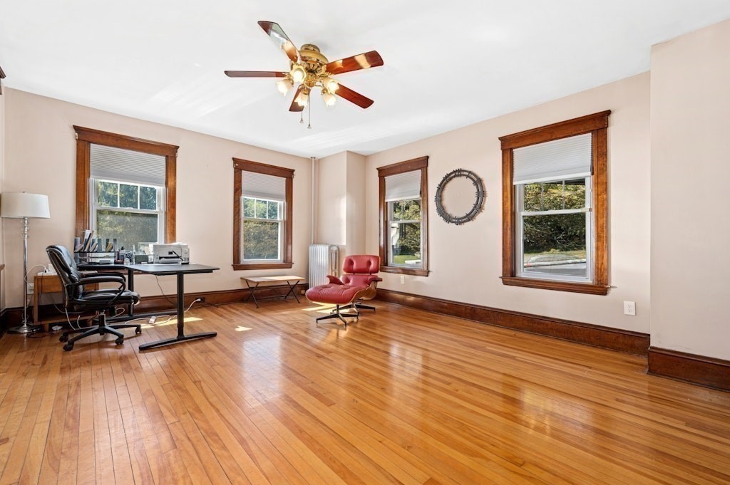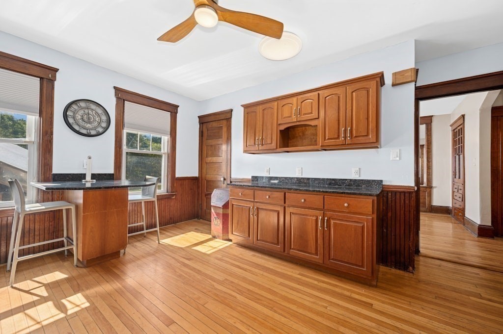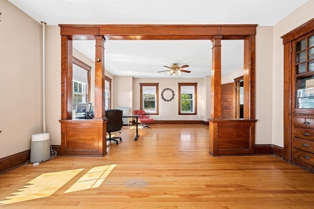 Welcome to this spacious and beautifully updated 4-bedroom, 3-bath Colonial, offering over 3,000 SF of versatile living space—perfect for investors or savvy buyers looking to house hack! Step into a thoughtfully modernized home featuring a gourmet kitchen with granite countertops and stainless appliances, updated bathrooms, gleaming hardwood floors, charming built-ins, fenced-in yard, a whole-house generator, & laundry hookups on 1st floor & basement. The 3rd level offers a private studio layout in-law suite w/mini-split system, kitchenette & full bath plus cozy gas log stove—ideal for the extended family. But that’s not all!! This property includes a renovated detached building w/ 874 SF with 2 bedrooms, LR, full bath, office, & laundry area--add a kitchenette & some electrical work and voila it's an ADU! Located in a zoning district that allows for an ADU, daycare, or community garden (buyers to perform their own due diligence). Seasonal views of Indian Lake! A must see!