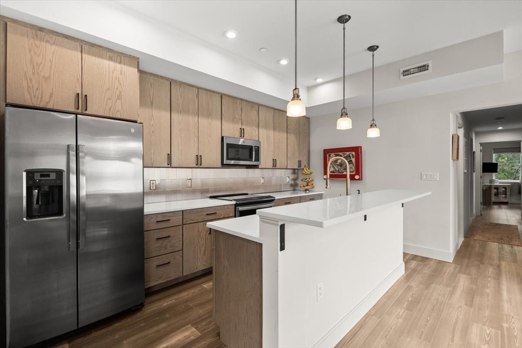 Modern Luxury at The Eliot in Newton. Completed in 2021, this stunning condo offers style, comfort, and unbeatable convenience in one of Newton’s most desirable locations. Set in a modern, well-maintained building with elevator access, the home features open floor-through living on one level, soaring ceilings, and like-new finishes. Two deeded garage parking spaces—rare in Newton—add exceptional value. Enjoy your outdoor space for morning coffee or perhaps a BBQ. The location is unmatched: just 10 minutes to Boston with immediate access to the Mass Pike and Route 128. The commuter rail is across the street, bike trails are nearby, and West Newton Village’s restaurants, shops, and cinema are right outside your door. Energy-efficient construction, contemporary design, and Newton’s top-rated schools make this a smart choice for buyers seeking modern living without compromise.429 Cherry Street blends luxury and accessibility in a truly exceptional home. Open House Sunday 1pm to 2:30pm!