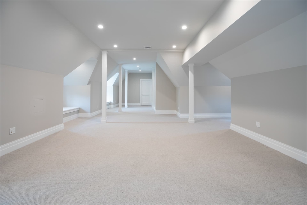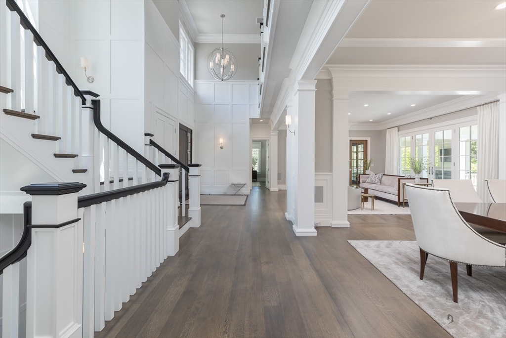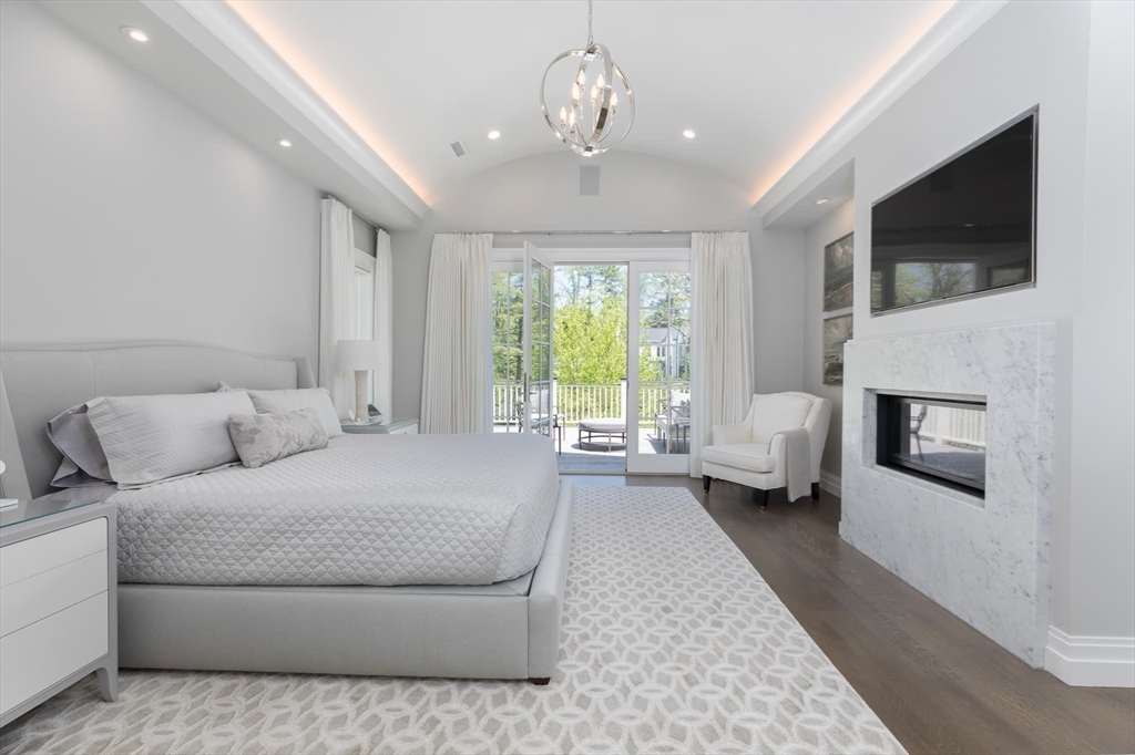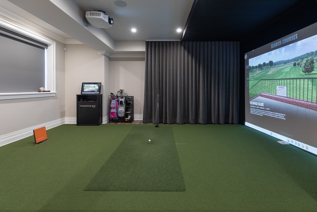 Significant turnkey custom residence in prime Weston Golf Club neighborhood with expansive yard. 6-bedroom shingle-and-stone manor with copper accents and refined finishes, privately set above Hidden Road. Tucked behind mature landscaping, a winding drive leads to a flat motor court with generous parking. Foyer opens to living room with fireplace and backyard access. Dining room served by butler’s pantry. Chef’s kitchen with dual islands, Miele appliances, Aga induction stove, and breakfast area that opens to cathedral-ceiling family room with gas fireplace. Wood-paneled office, first-floor suite, mudroom, and powder room with heated floors. Upstairs: primary suite with two walk-ins, fireplace, balcony, and marble bath; plus two en suites with walk-ins and a 2-bedroom suite, plus second-floor laundry. Walkout lower level with Trackman golf simulator, gym, spa, bar, wine room, and laundry. Walk-up third floor. 3-car garage plus golf cart bay. Solar array, smart home, pool permit.