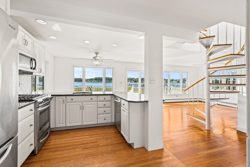 Welcome to waterfront living in Beverly’s desirable Ryal Side neighborhood. Sun-splashed contemporary set on .08 acres with direct frontage on the Danvers River —and the rare opportunity for a potential dock. The open kitchen flows seamlessly into the dining and living room, where a slider door leads out to the deck. The first floor features an ensuite primary bedroom, laundry and mudroom entry. On the second floor discover two additional bedrooms, shared bath and office nook. In addition, there is a slider that opens onto a balcony to view the comings and goings of the activity and boat traffic on the river. Fresh interior paint and carpet. Loft on the 3rd level and large attic. Plenty of off street parking and the potential for a dock. Stunning river views from both inside and out. Just minutes from downtown Beverly, the commuter rail, and Rt. 128. This home offers the best of convenience and coastal living. Incredible opportunity to own a slice of the North Shore waterfront.